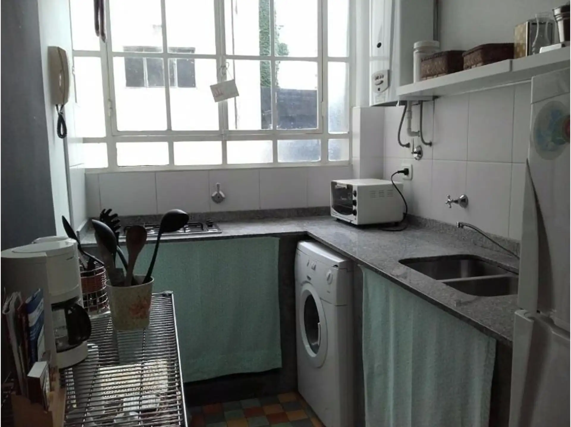Apartamento de 2 ambientes em San Telmo. Fica a 4 quadras do metrô/linha D, estação San Juan, e a 4 quadras do Metrobus da Av. 9 de Julio. Tem TV smart com Netflix, ar-condicionado e aquecimento, internet e telefone com chamadas locais gratuitas, além de área de lavanderia com lavadora e secadora. A entrada depende de pagamento de aproximadamente 3 meses: 1 mês de aluguel, 1 mês de depósito e 1 mês de comissão.