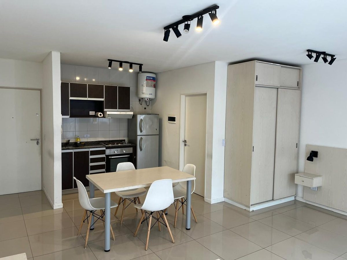 Kitnet com 1 banheiro em San Telmo, com varanda. A unidade fica no primeiro piso e tem cozinha integrada e banheiro completo. O ambiente principal permite organizar áreas de estar e refeições e um espaço definido para a cama.