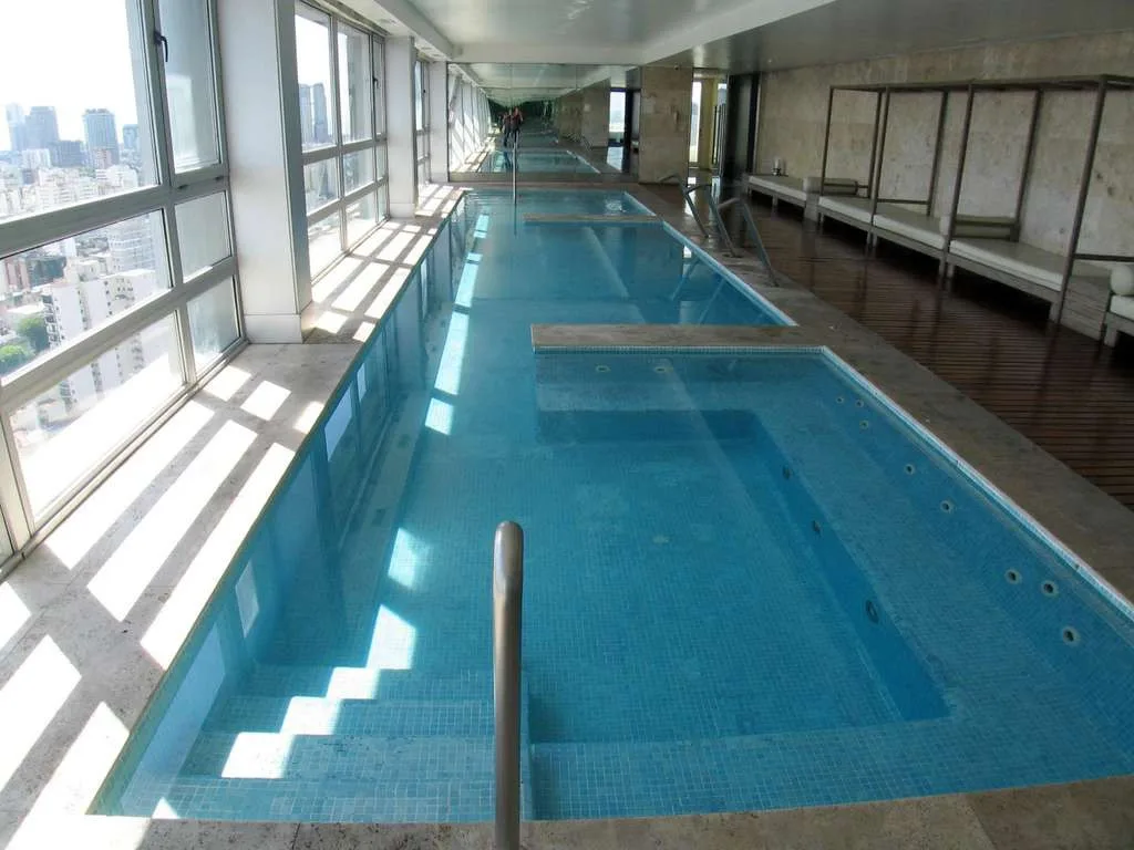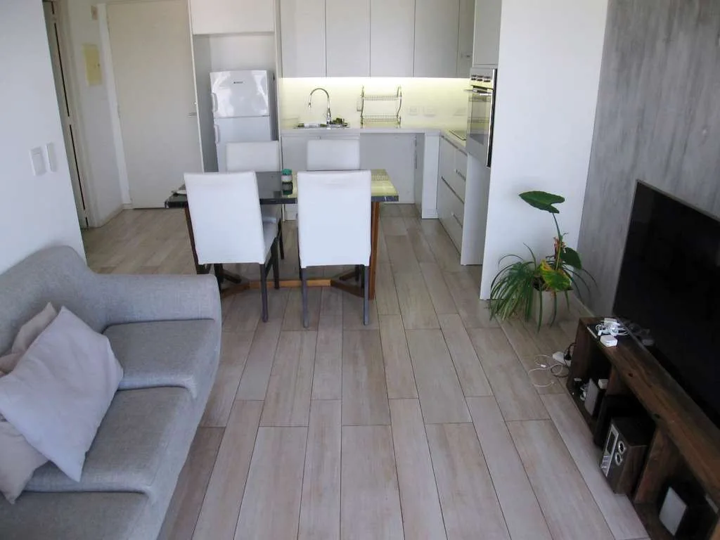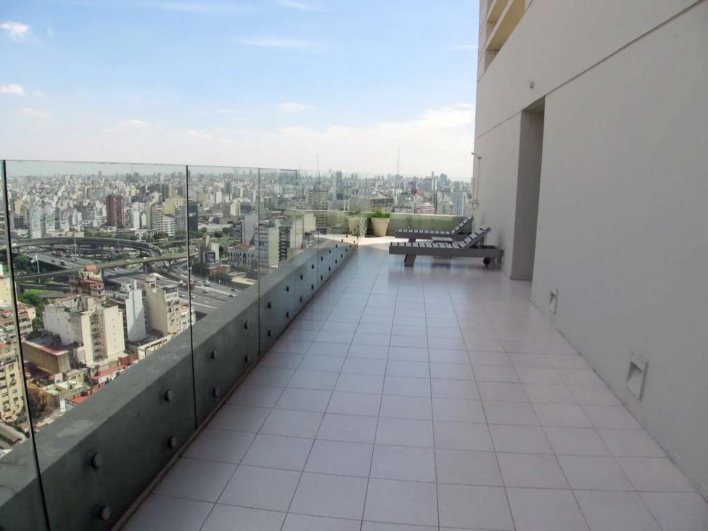 Apartamento mobiliado em San Telmo (Quartier San Telmo), com 1 quarto. Fica no 14º andar, de fundos (contrafrente), com vista aberta. Cozinha integrada, closet e 2 aparelhos de ar-condicionado frio-quente, além de água quente central. O condomínio inclui vigilância, piscina coberta e descoberta, sauna, academia, salão de festas (S.U.M.), lavanderia e sala de reuniões. Inclui vaga de garagem coberta em valet parking. Condomínio (expensas): 395.000. Aluguel temporário: U$S 800 ou $ 1.120.000.