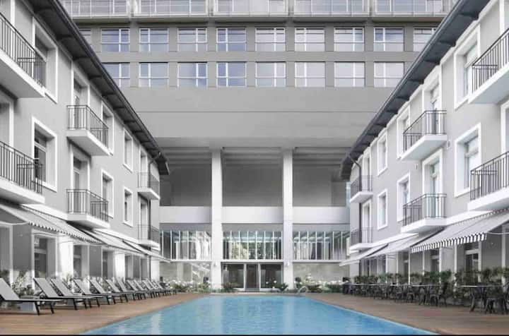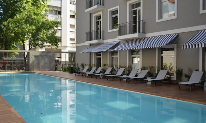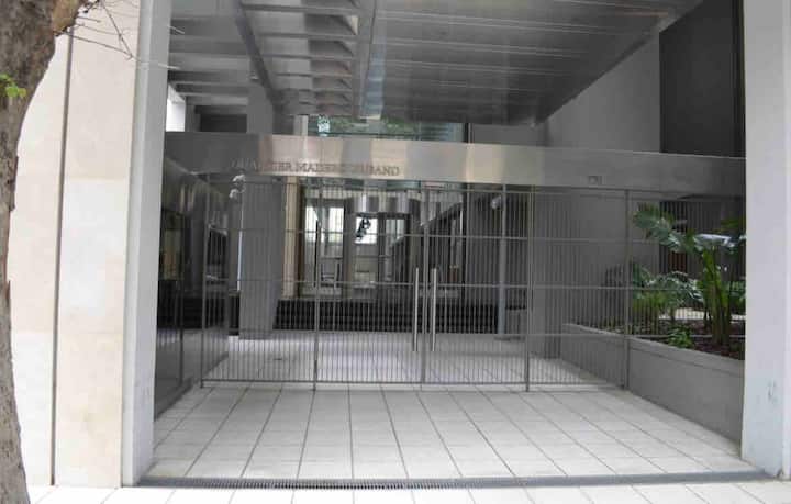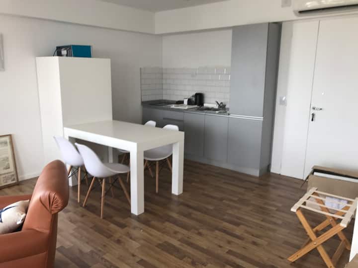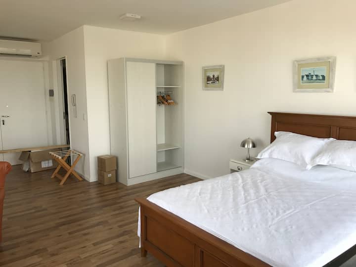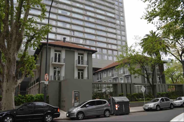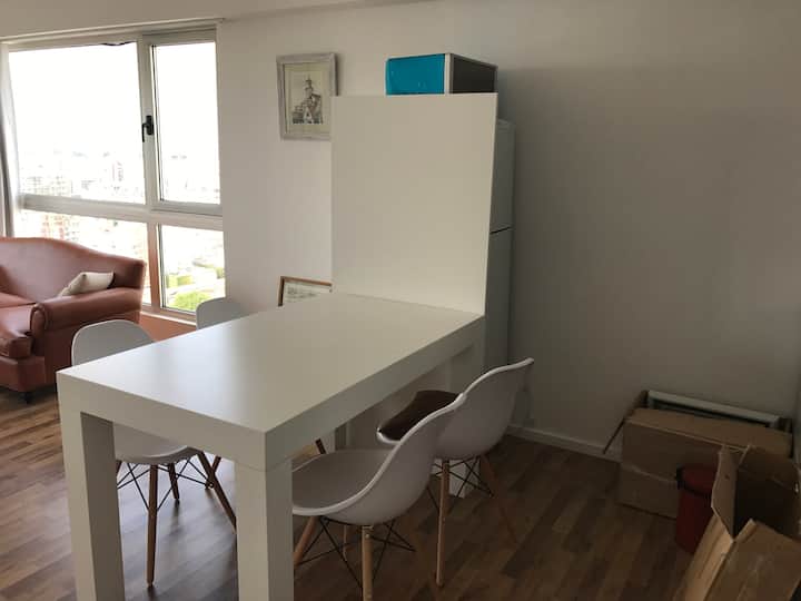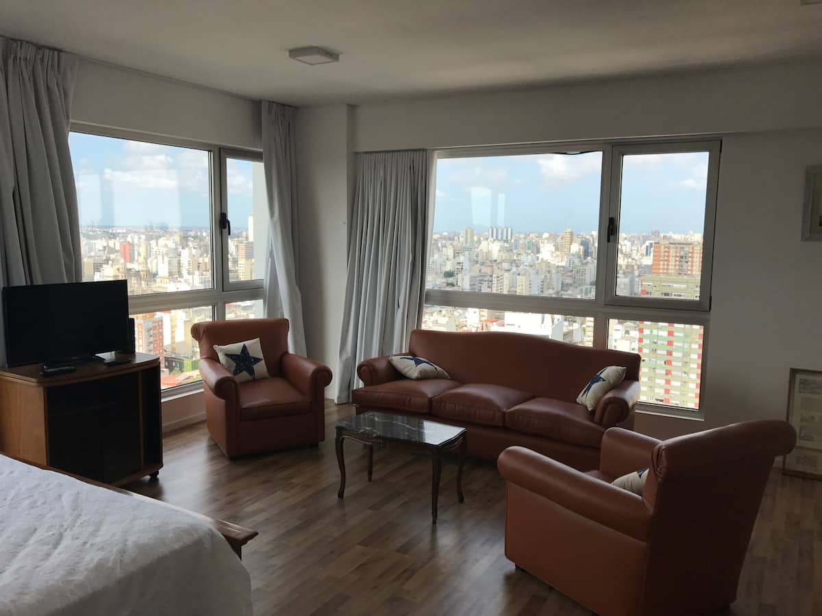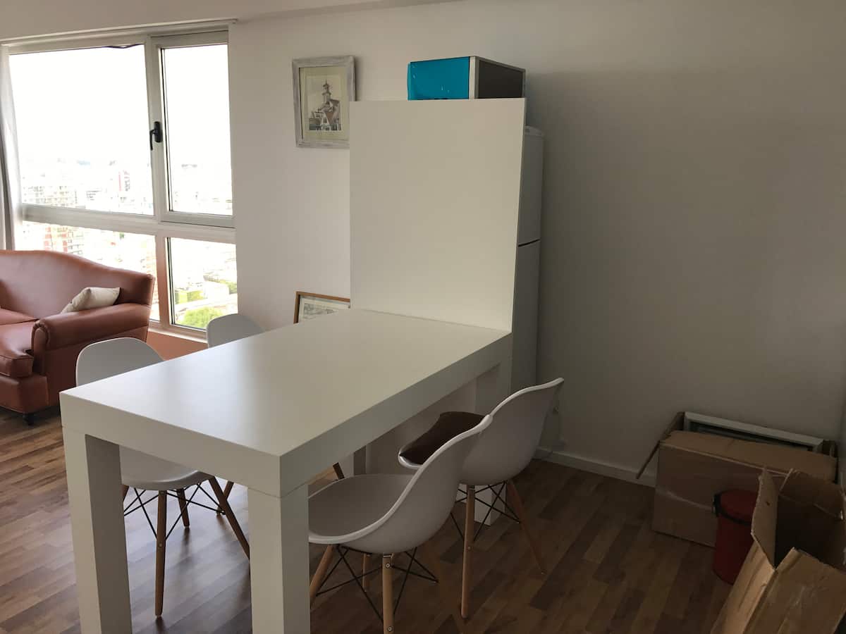 Apartamento em prédio alto no 22º andar, com vista ampla da cidade, do Rio de la Plata, de San Telmo e de Puerto Madero. Fica a cerca de 5 minutos do centro e próximo à área de restaurantes nos docks. O edifício tem vigilância 24 horas. Imóvel novo; estacionamento por conta dos hóspedes.