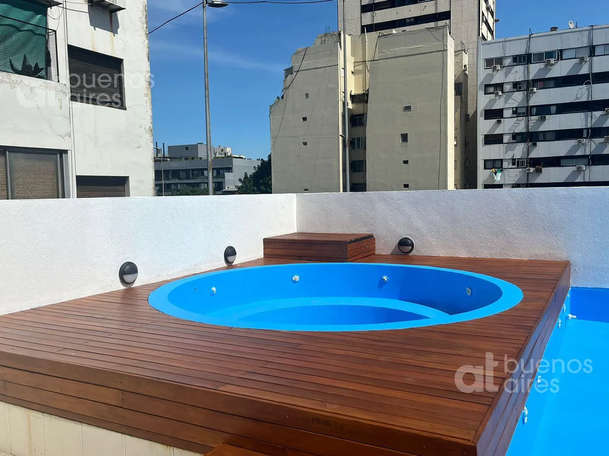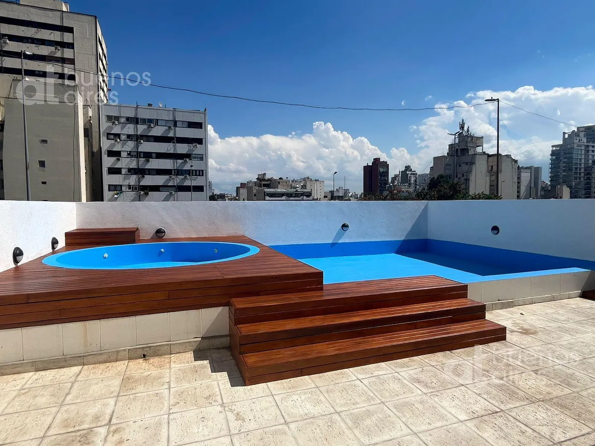 Kitnet de 1 ambiente em San Telmo, de frente para a rua, com varanda. A unidade fica disponível a partir de 2/4/2026 e vem mobiliada e equipada. Possui janelas com vidro duplo (DVH) e ar-condicionado frio/calor. O edifício tem piscina e solarium. O aluguel anunciado soma condomínio, ABL e água, além de luz e Wi‑Fi.