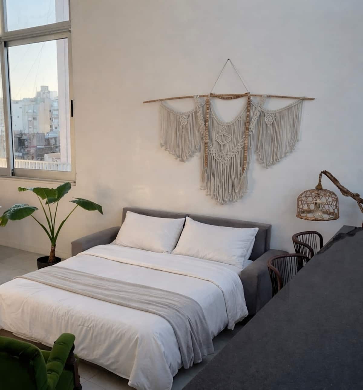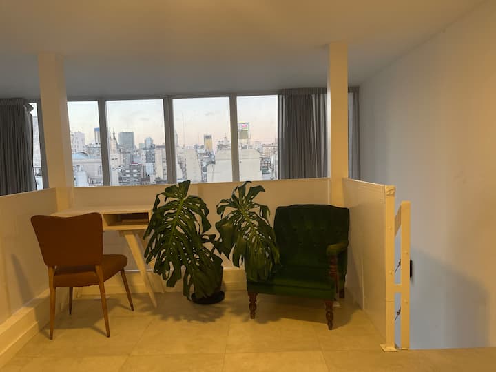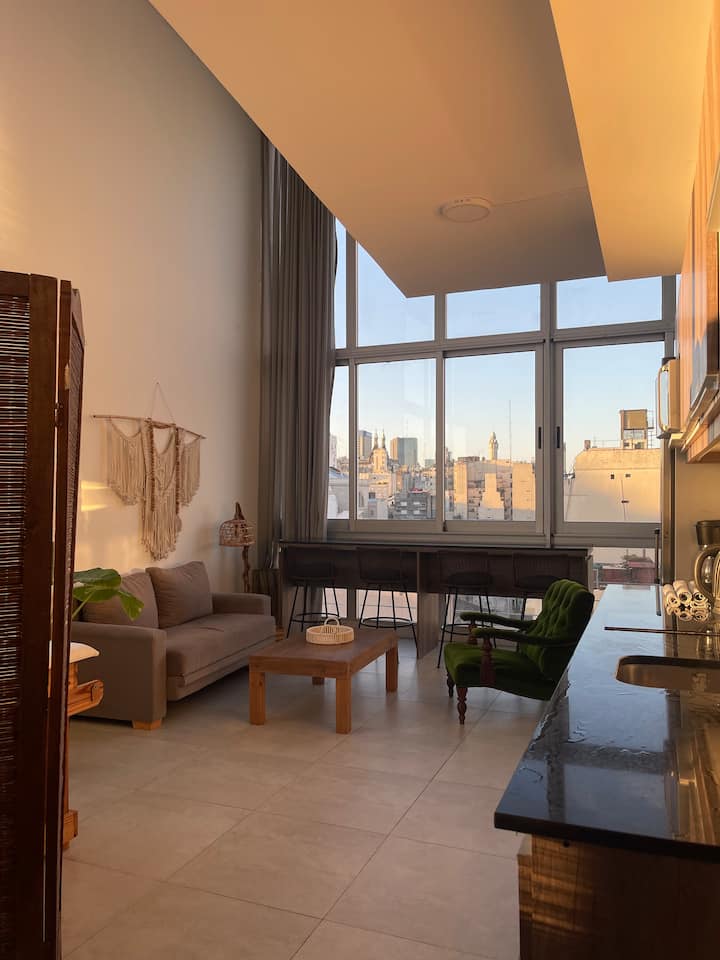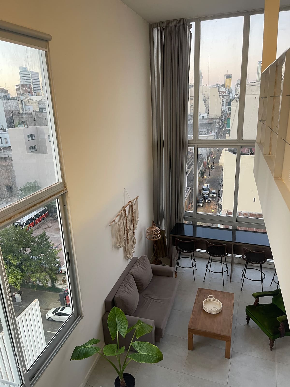 Apartamento duplex de 1 quarto em San Telmo, com área no térreo para deixar sapatos e pendurar casacos. No térreo há 1 banheiro completo e cozinha totalmente equipada com geladeira com freezer, micro-ondas, chaleira elétrica, torradeira, cafeteira e utensílios. Inclui sala de estar com sofá-cama para duas pessoas, mesa de apoio e área de bem-estar com mesa de massagem.