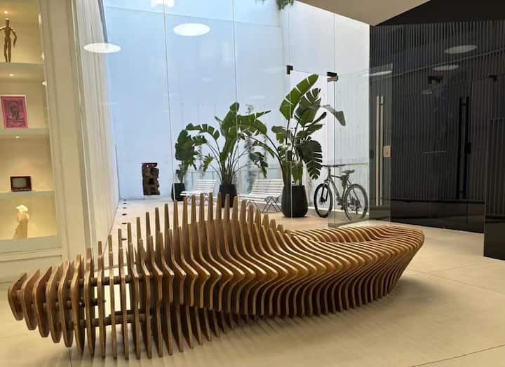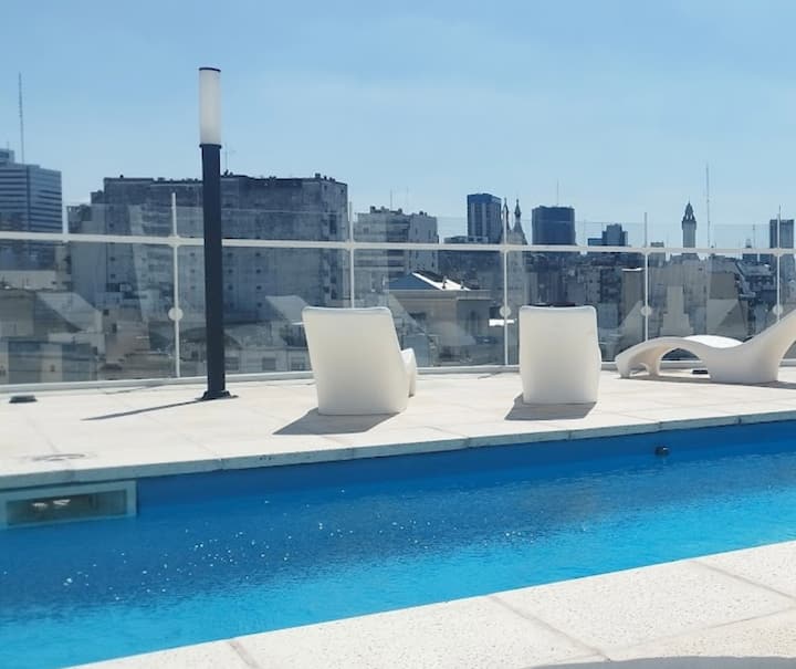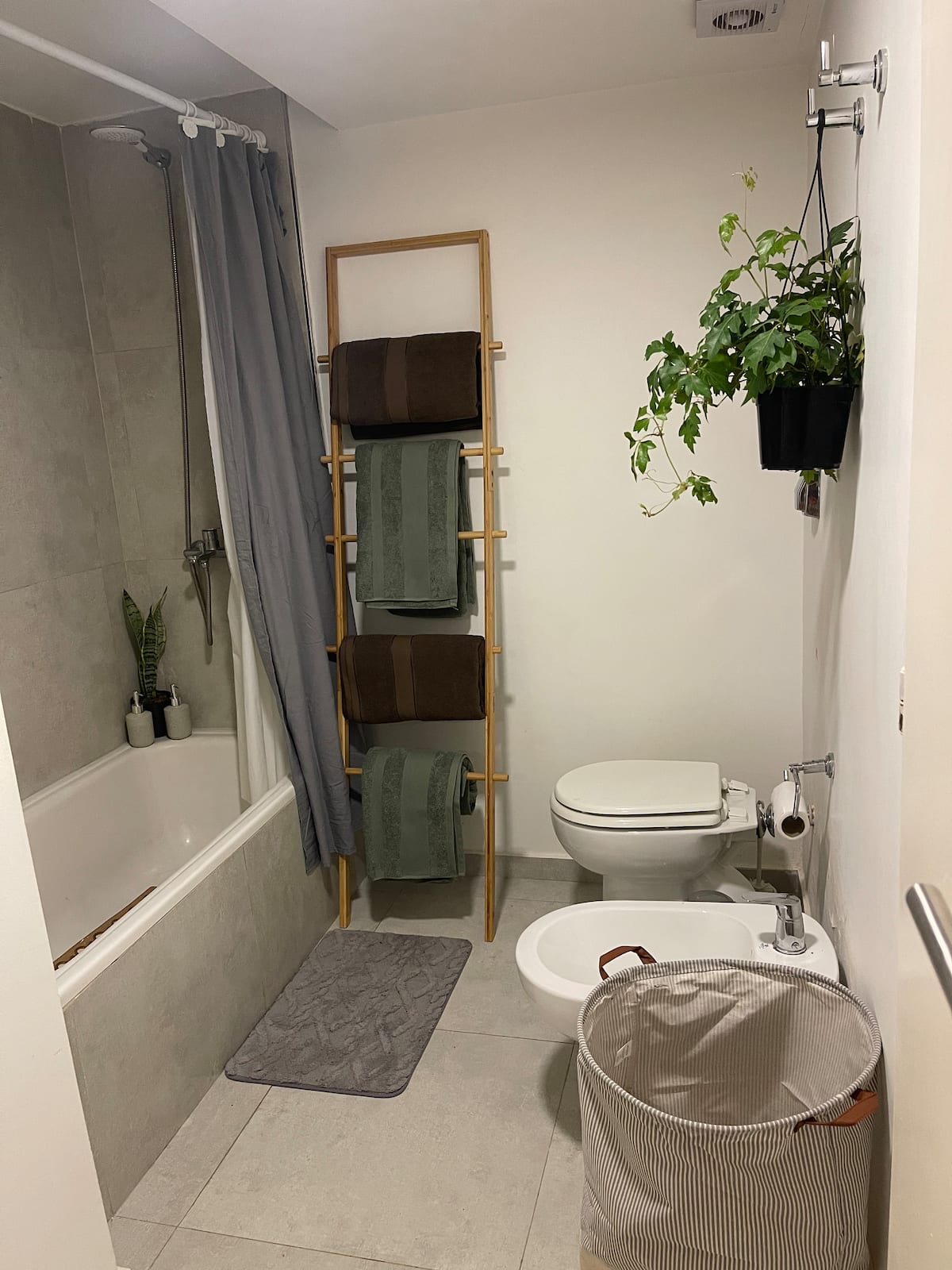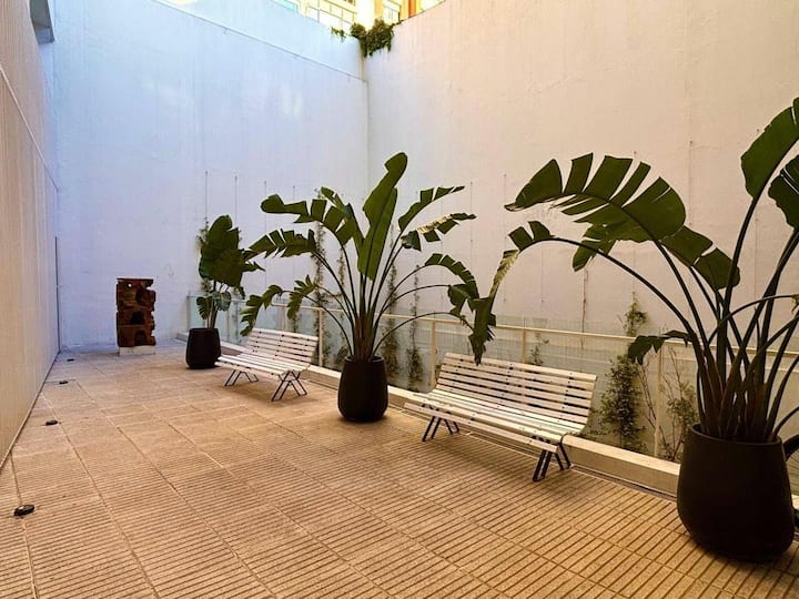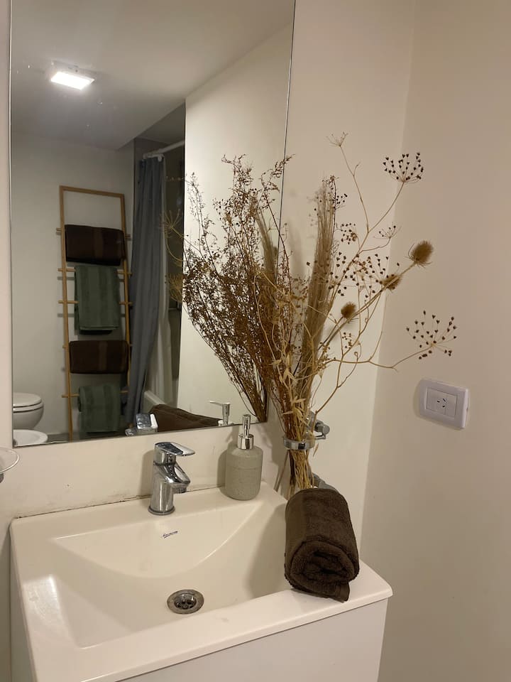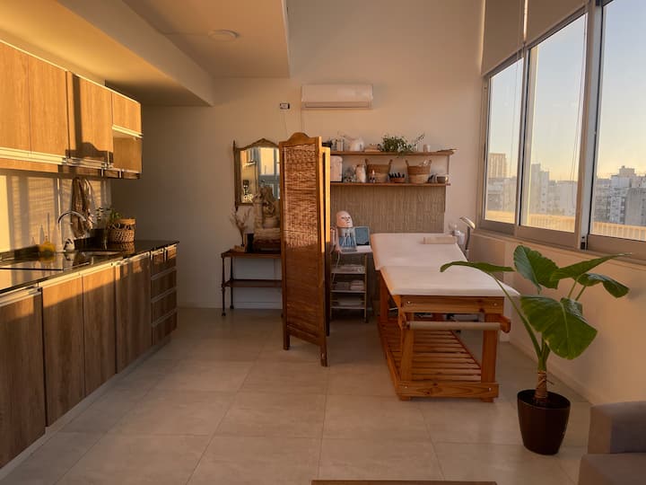 Apartamento duplex de 1 quarto em San Telmo, com área no térreo para deixar sapatos e pendurar casacos. No térreo há 1 banheiro completo e cozinha totalmente equipada com geladeira com freezer, micro-ondas, chaleira elétrica, torradeira, cafeteira e utensílios. Inclui sala de estar com sofá-cama para duas pessoas, mesa de apoio e área de bem-estar com mesa de massagem.