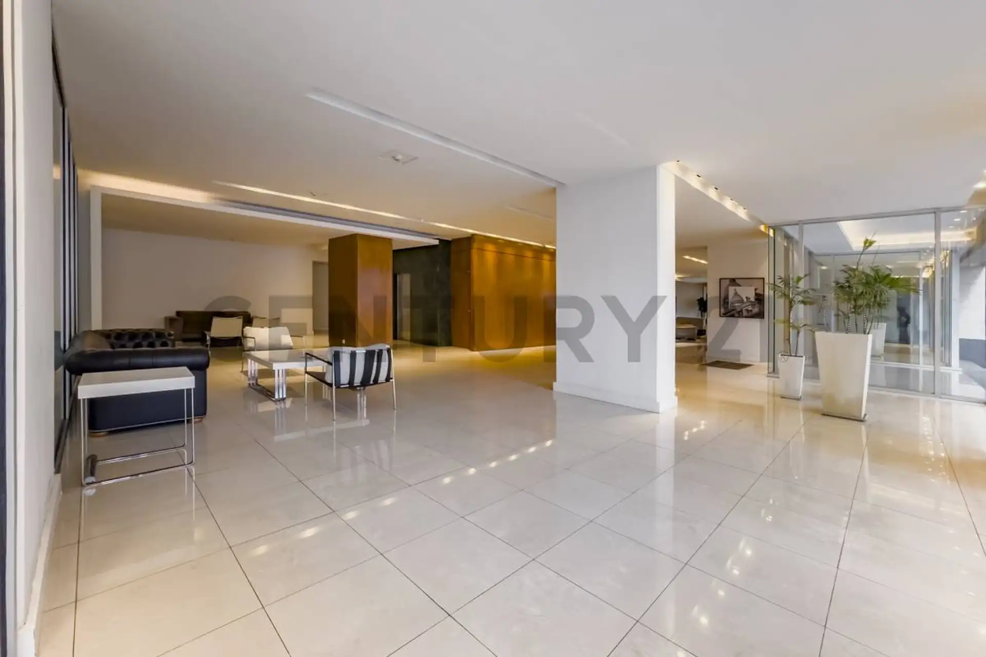 Kitnet dividível com varanda, no contrafrente do edifício, orientação oeste, em andar alto. Não é mobiliada e é elétrica. Possui ar-condicionado em cada ambiente, banheiro completo com banheira e área para dormitório com janelas amplas, além de lavadora e espaço para lava-louças. O prédio tem segurança 24 horas e amenities: piscina in-out, academia, sala de leitura, estúdio e sala de reuniões, sauna spa e SUM com terraço para até 200 pessoas. O condomínio é de $220.000; há possibilidade de aluga