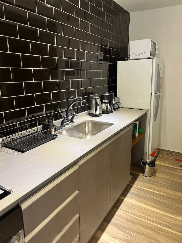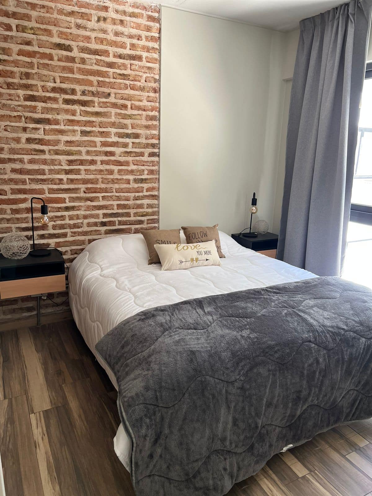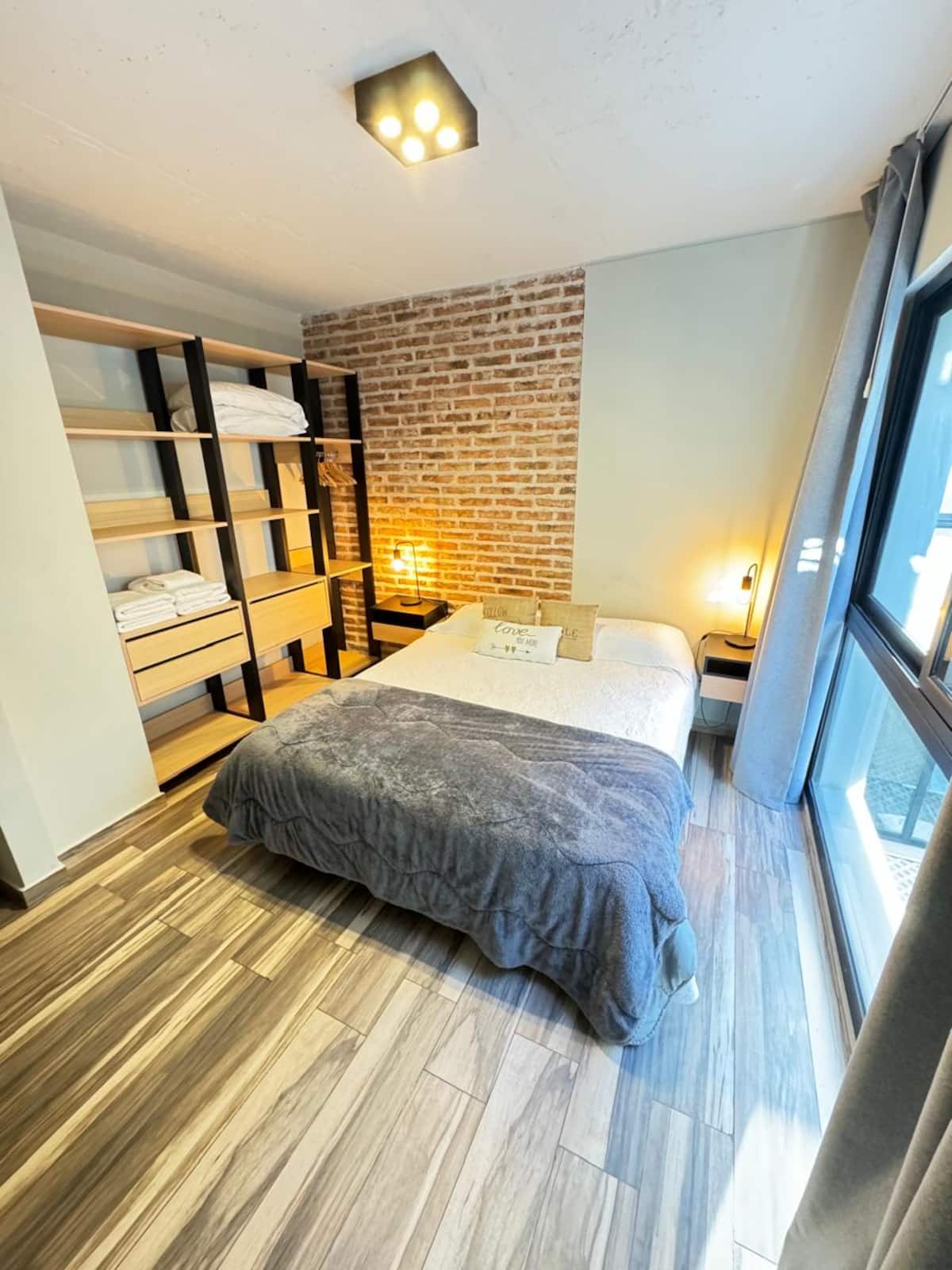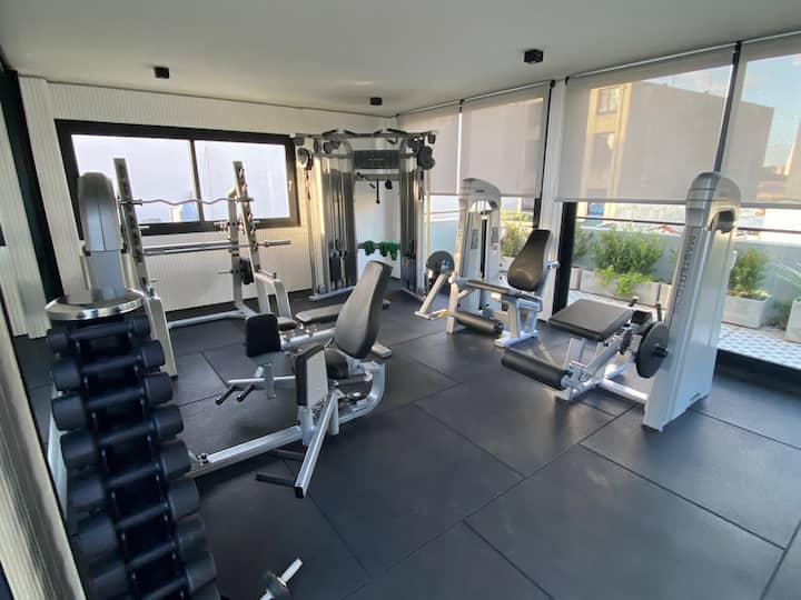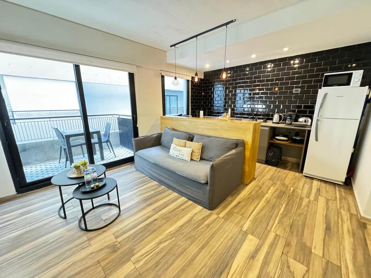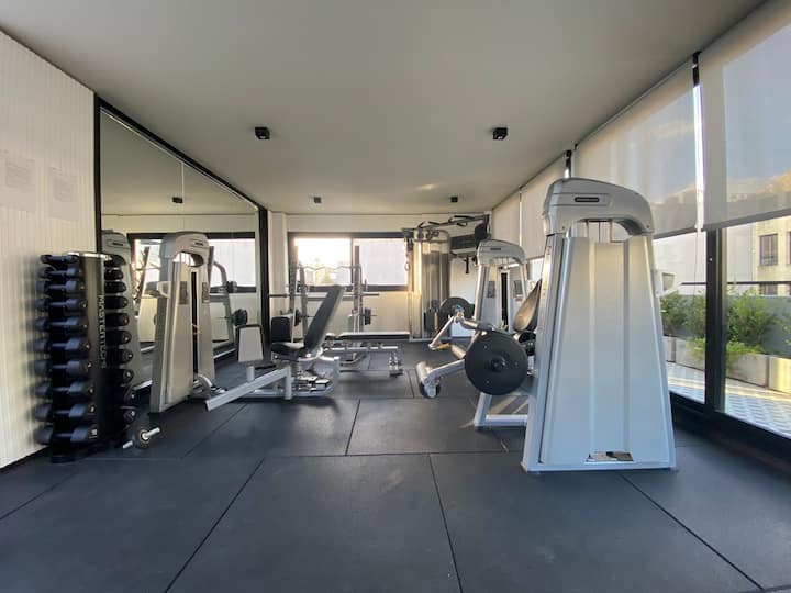 Apartamento novo de 1 quarto em San Telmo, com 50 m², incluindo quarto com cama de casal, banheiro completo, lavabo, cozinha integrada, sala com sofá-cama e varanda. O imóvel é mobiliado e está equipado com 2 Smart TVs, ar-condicionado, cozinha com micro-ondas, torradeira, forno, fogão e geladeira, além de WiFi. O prédio conta com piscina, academia, terraço com solário, área de lavanderia e concierge 24 horas.