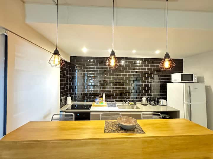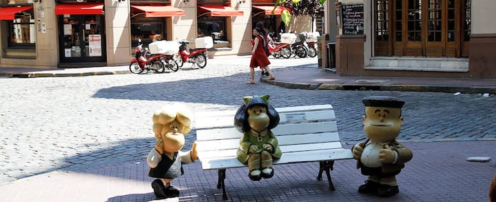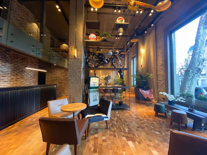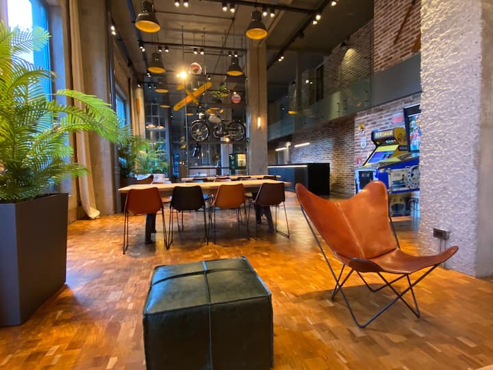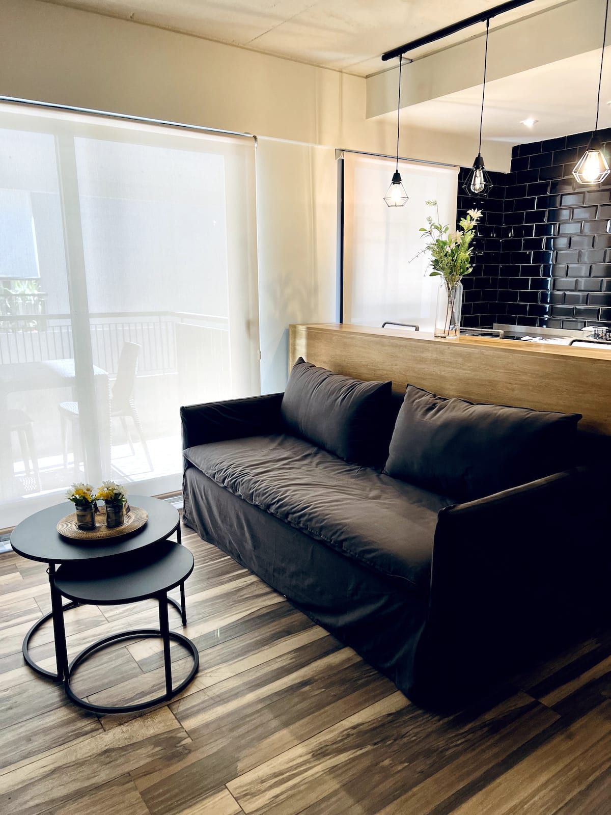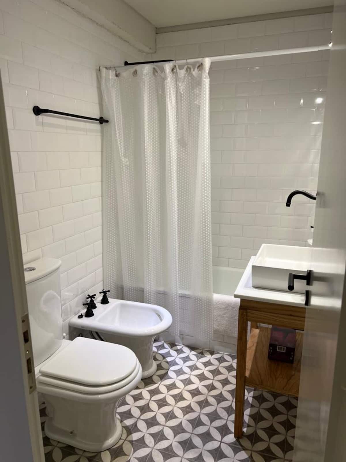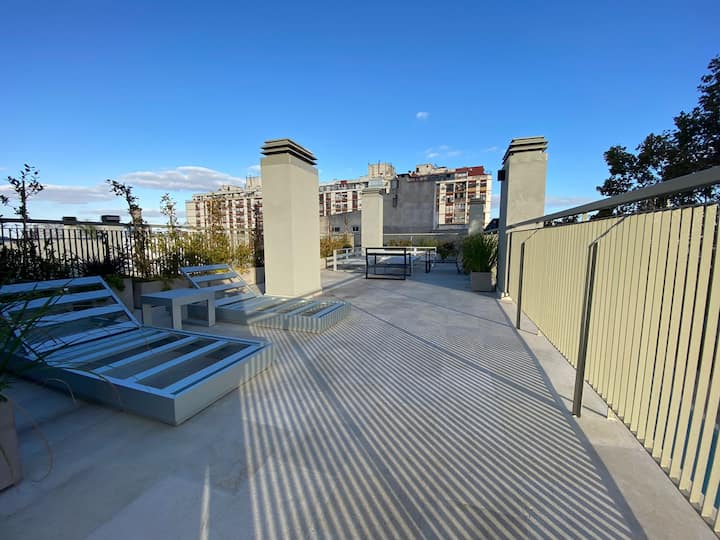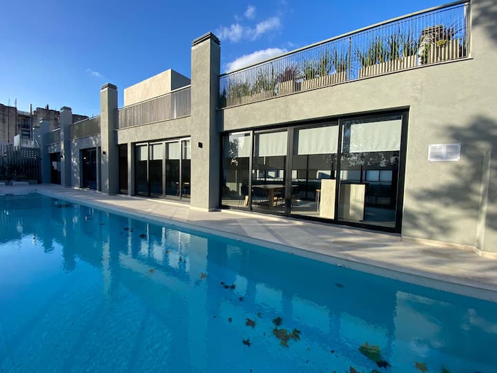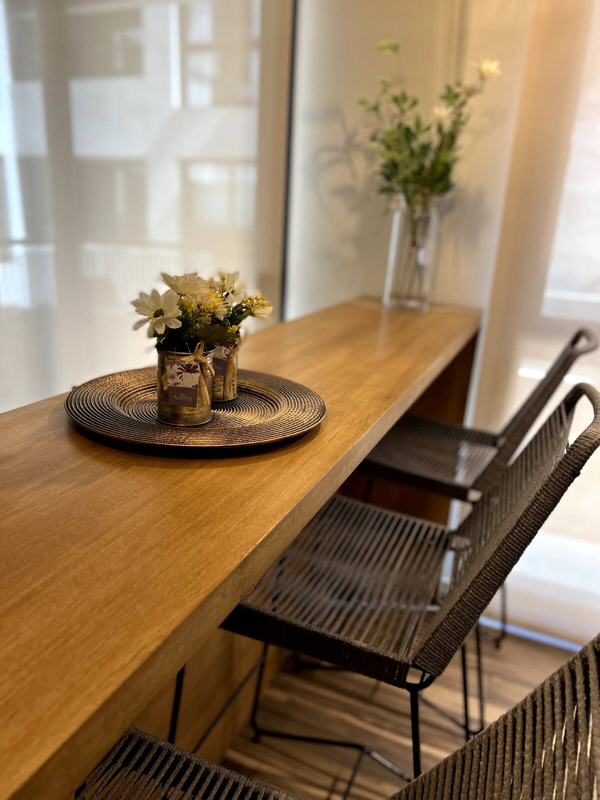 Apartamento novo de 1 quarto em San Telmo, com 50 m², incluindo quarto com cama de casal, banheiro completo, lavabo, cozinha integrada, sala com sofá-cama e varanda. O imóvel é mobiliado e está equipado com 2 Smart TVs, ar-condicionado, cozinha com micro-ondas, torradeira, forno, fogão e geladeira, além de WiFi. O prédio conta com piscina, academia, terraço com solário, área de lavanderia e concierge 24 horas.