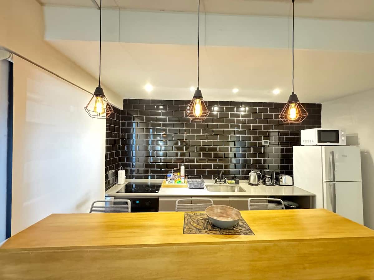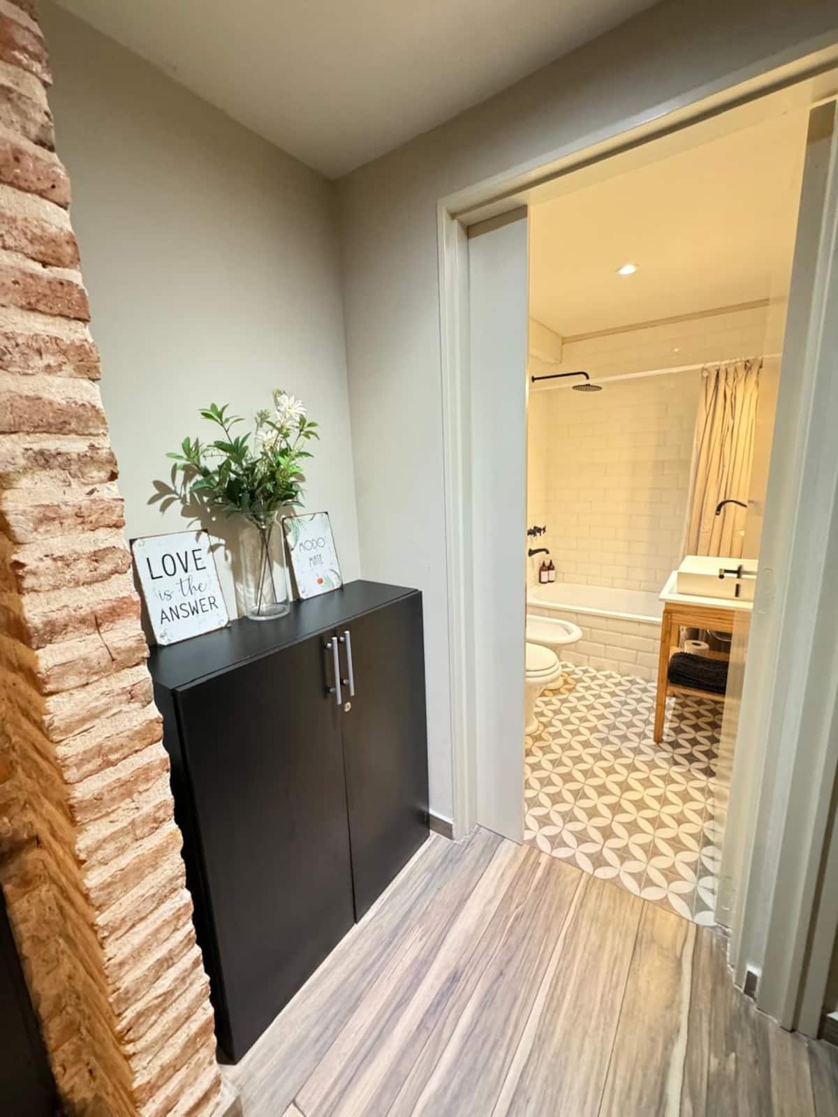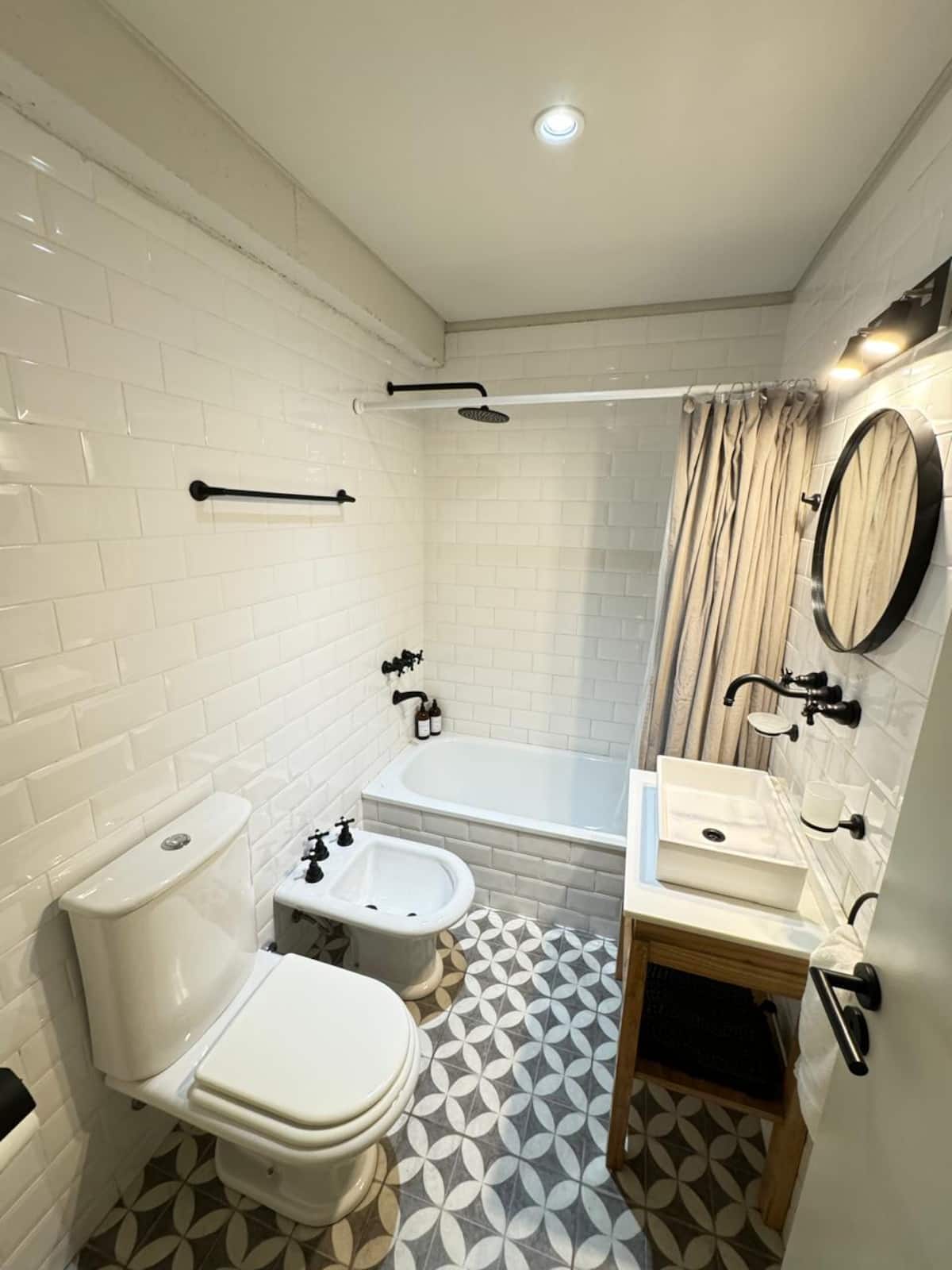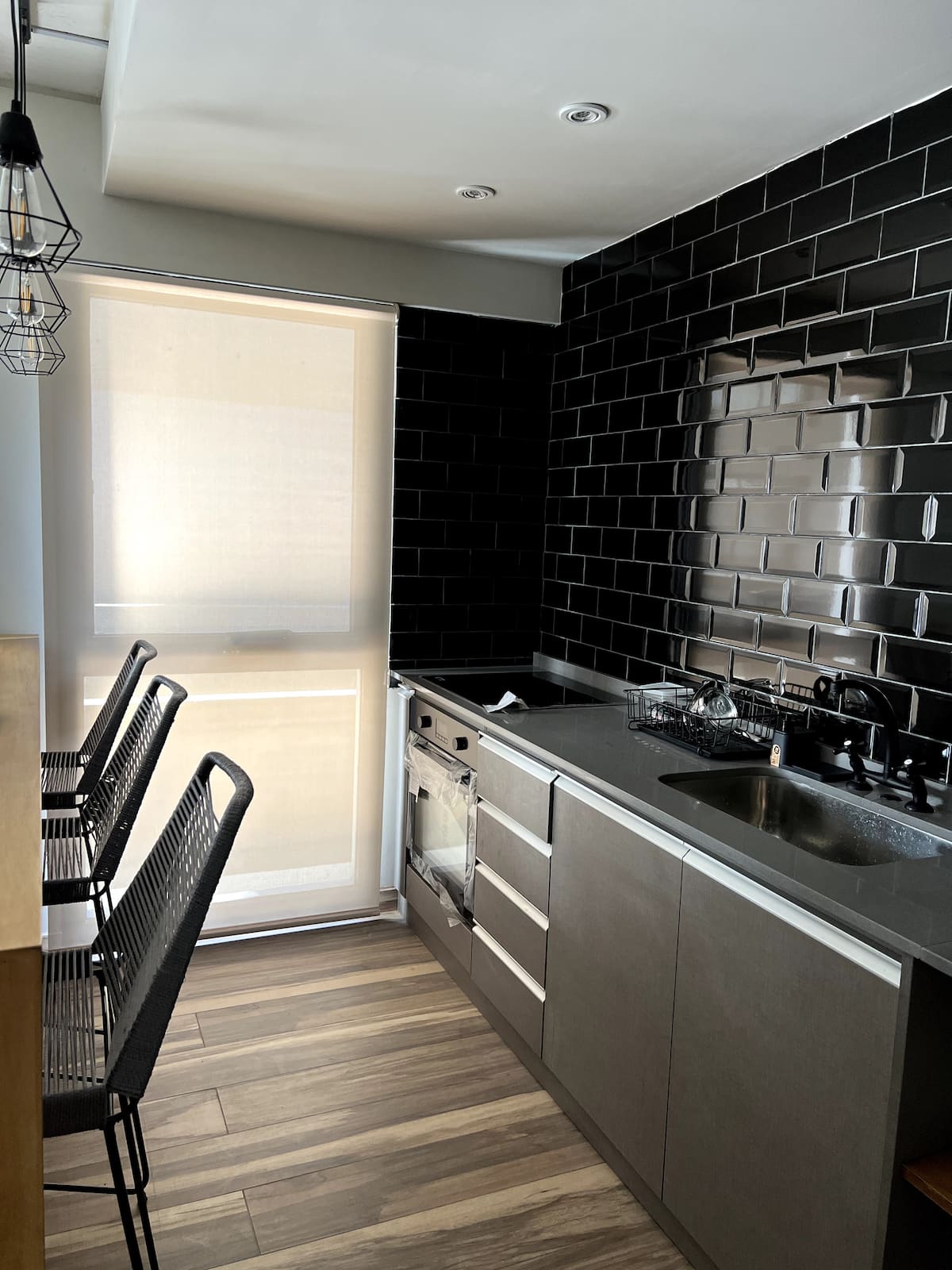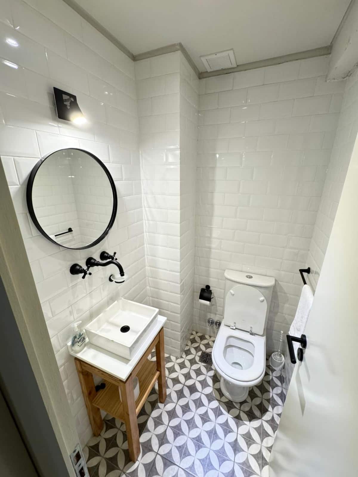 Apartamento novo de 1 quarto em San Telmo, com 50 m², incluindo quarto com cama de casal, banheiro completo, lavabo, cozinha integrada, sala com sofá-cama e varanda. O imóvel é mobiliado e está equipado com 2 Smart TVs, ar-condicionado, cozinha com micro-ondas, torradeira, forno, fogão e geladeira, além de WiFi. O prédio conta com piscina, academia, terraço com solário, área de lavanderia e concierge 24 horas.