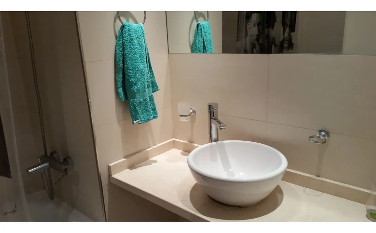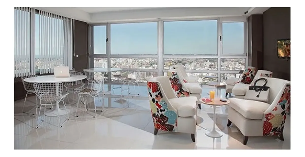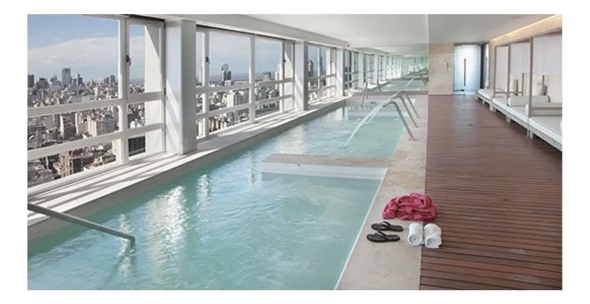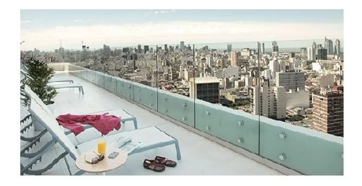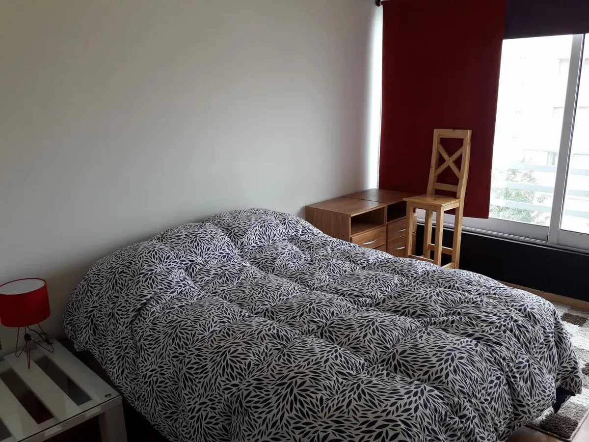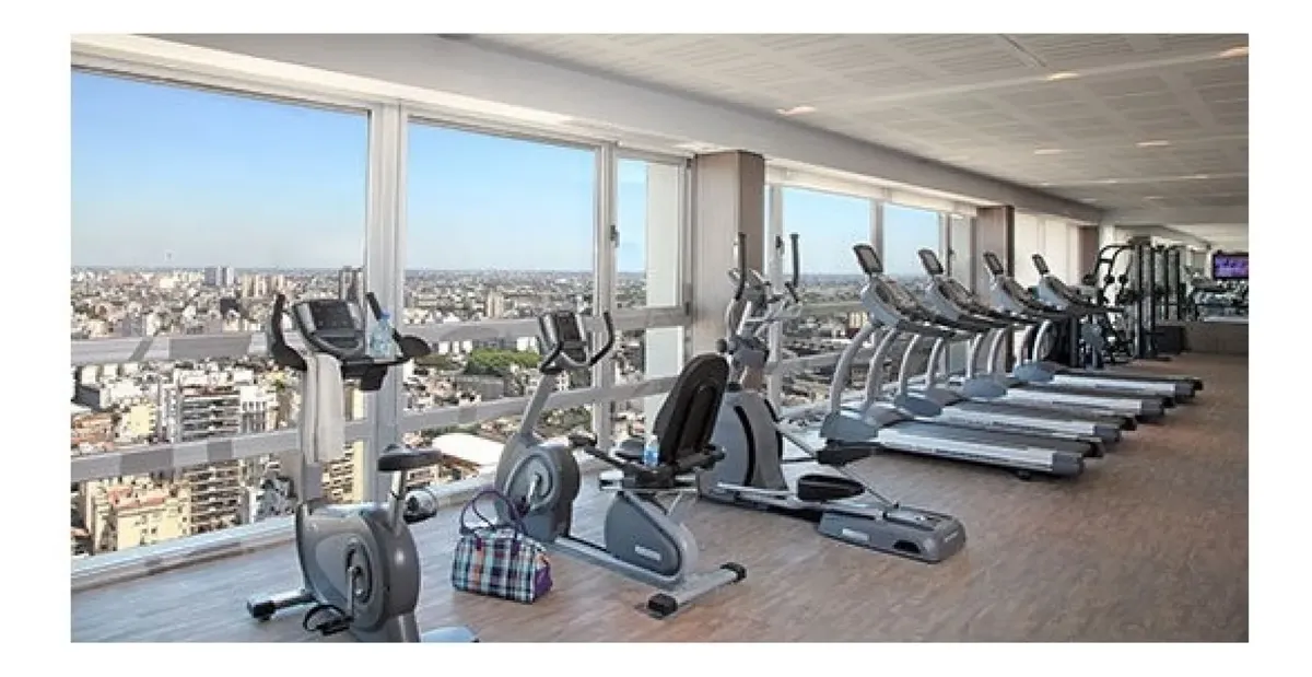 Apartamento mobiliado em San Telmo com 1 quarto e 2 ambientes. Tem varanda contínua, TV a cabo, Wi-Fi, dois ar-condicionados, geladeira, forno elétrico, fogão elétrico e micro-ondas. O prédio oferece 3 elevadores, grupo gerador, gerador de emergência, salão de usos múltiplos, academia, piscina climatizada e piscina descoberta de 25 metros, sauna, sala de massagens, área de churrasco com salão para até 80 pessoas, laundry, salão de reuniões, solário com ducha, jardins, vigilância e internet nas á