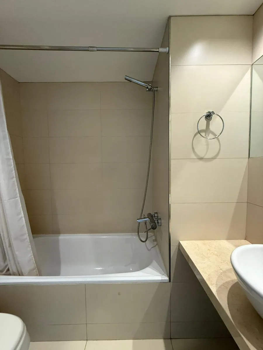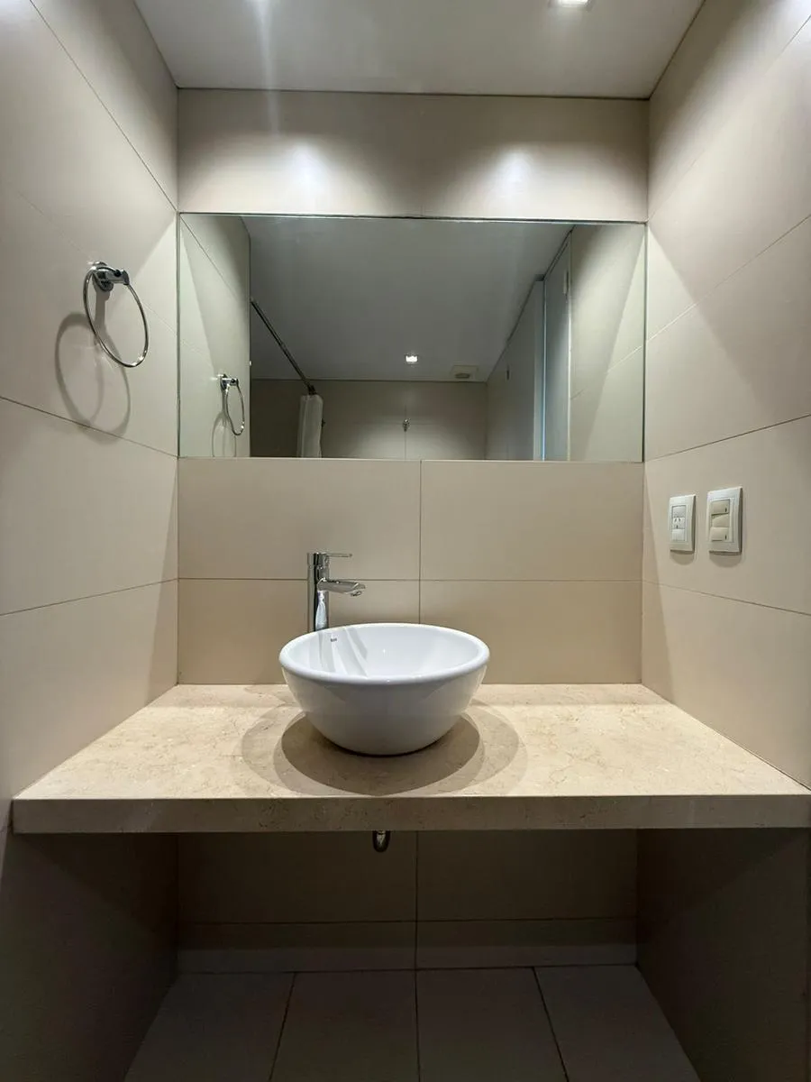 Apartamento de dois ambientes em San Telmo, com 1 dormitório, vestidor, 1 banheiro e cozinha integrada. Sala de estar e jantar com varanda, janelas com cortinas e ar-condicionado frio/calor em todos os ambientes. Prédio com segurança 24 horas, piscina, salão de festas (SUM), lavanderia, academia, área de churrasco, sauna, hidromassagem e solarium. Vista para Juan de Garay; vaga de garagem em valet parking. Aluguel mínimo de 6 meses; condomínio estimado e sujeito a variações.