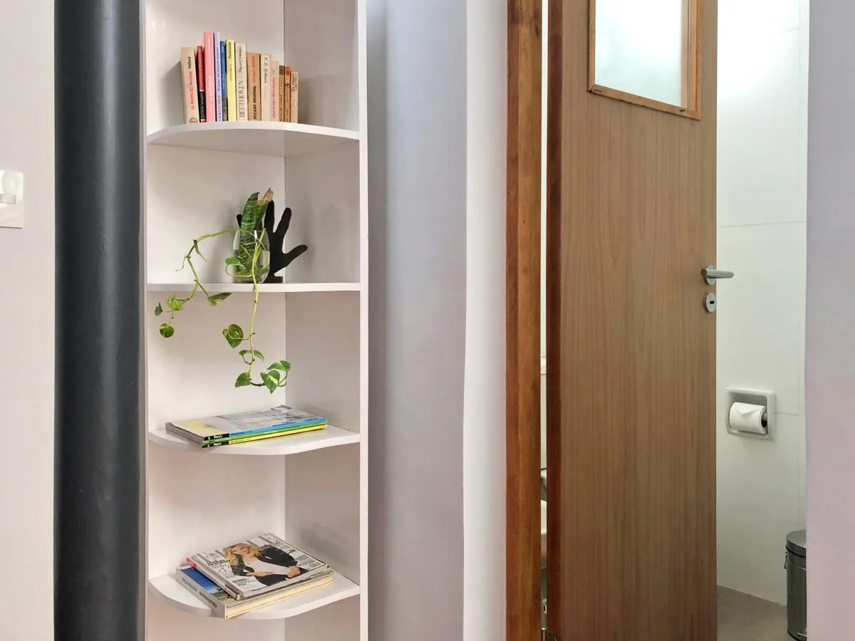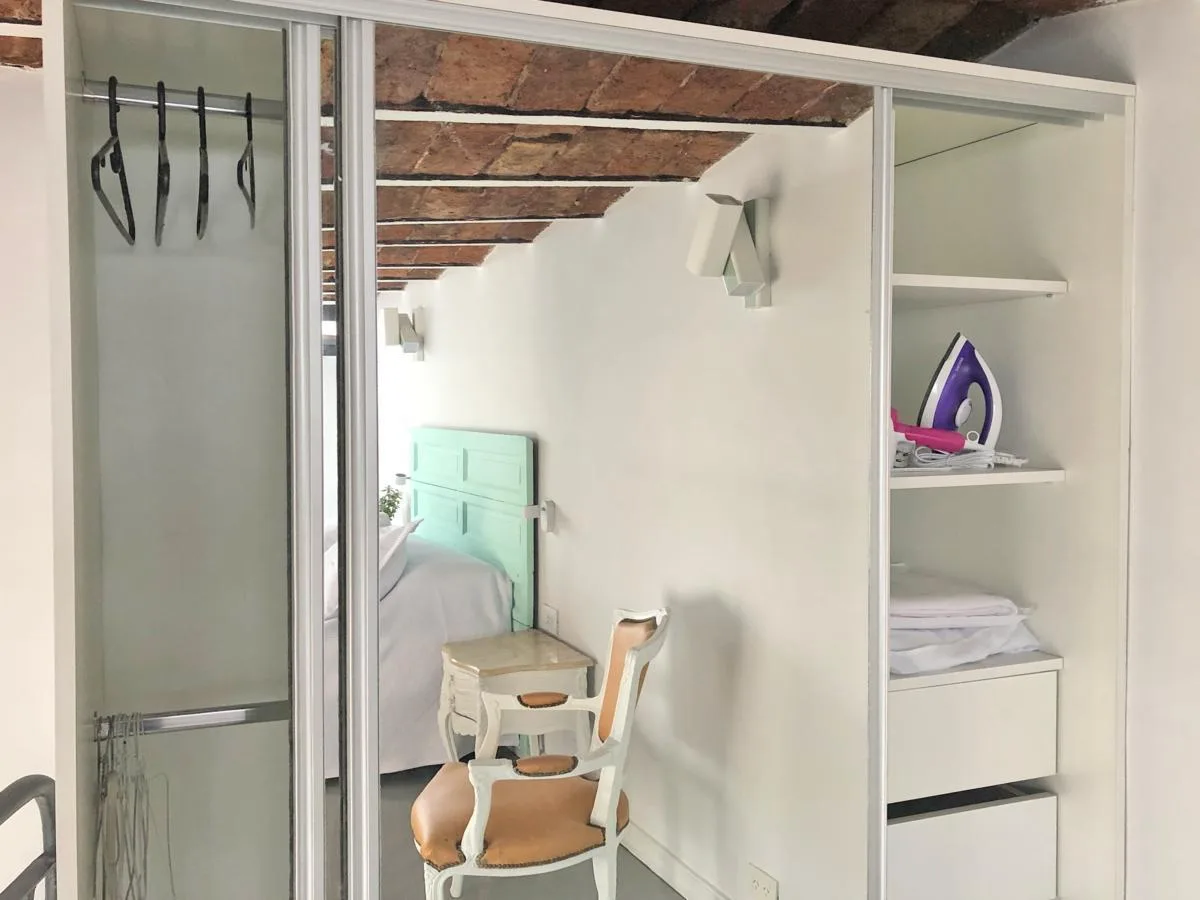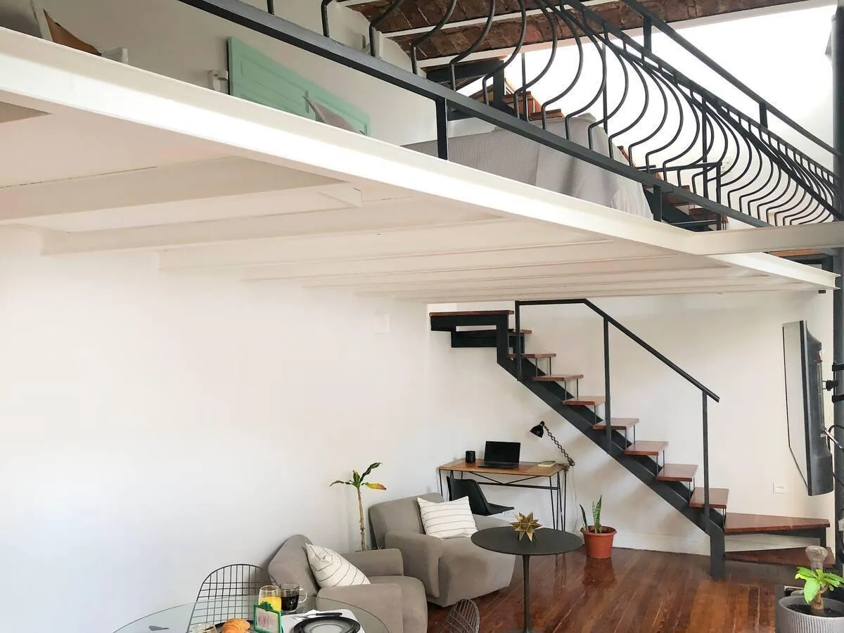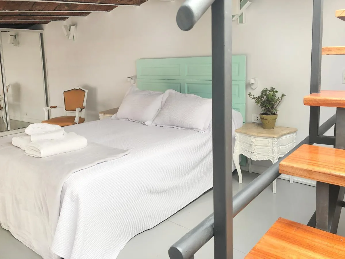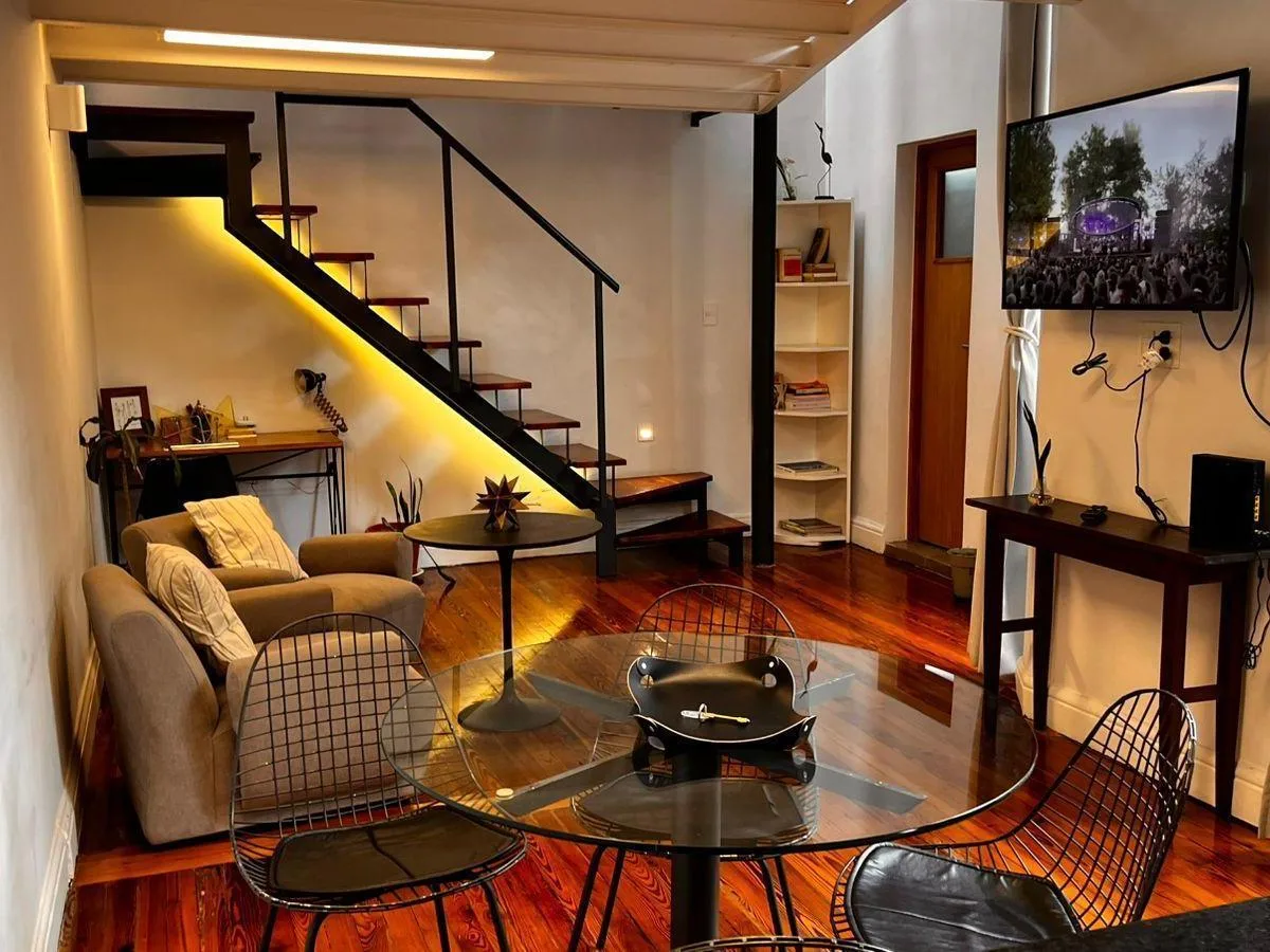 Apartamento mobiliado de 2 ambientes com 42 m² cobertos no 1º andar (por escada), com orientação nordeste e fundos. Unidade reformada, com 1 banheiro e dormitório em mezanino com armário, além de área de lavanderia independente. Possui ar-condicionado individual e aquecimento por ar, e dispõe de água corrente, gás natural e internet; a cozinha é integrada. Inclui terraço privativo de 22 m², com vista para a cúpula do mercado. O aluguel é por 2 anos, com fiador proprietário ou seguro fiança; cond