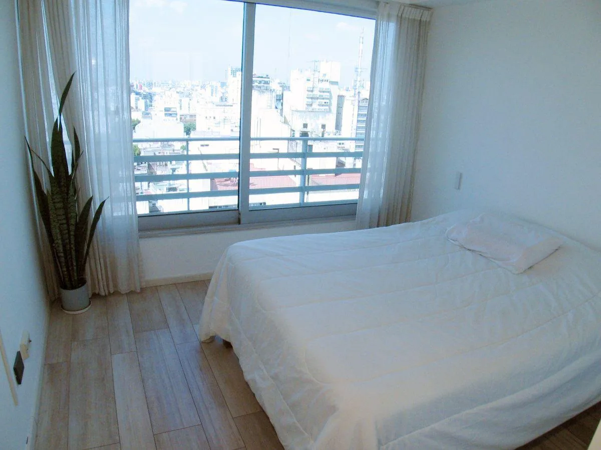 Apartamento mobiliado de 2 ambientes em San Telmo, com 1 quarto, no 14º andar de fundos. Tem varanda, vista aberta e cozinha integrada. Inclui 2 ar-condicionados frio-quente, água quente central, closet e sala de estar/jantar (6,00 x 3,00 m) e dormitório (3,10 x 3,00 m). O condomínio inclui vigilância e oferece piscina coberta e descoberta, sauna, academia, salão comunitário, lavanderia e sala de reuniões, com expensas de $ 395.000. Aluguel: U$S 800 ou $ 1.120.000.