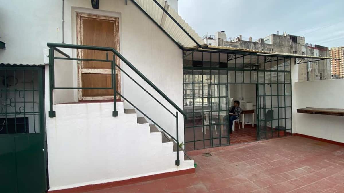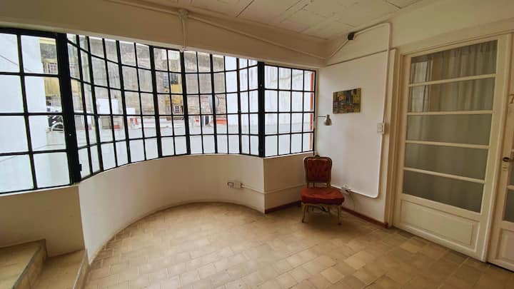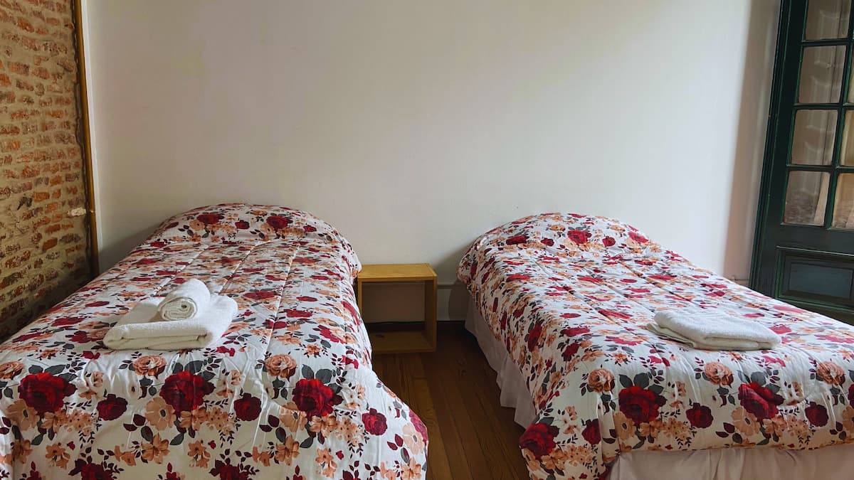 Quarto duplo em casa compartilhada em San Telmo. A casa foi restaurada e tem acesso a WiFi na residência. A unidade é parte de uma casa inteira para até 18 pessoas, com 8 quartos privativos e 4 banheiros. Há serviço de limpeza durante a estadia e cozinha com forno a gás e churrasqueira, além de terraço e pátio.
