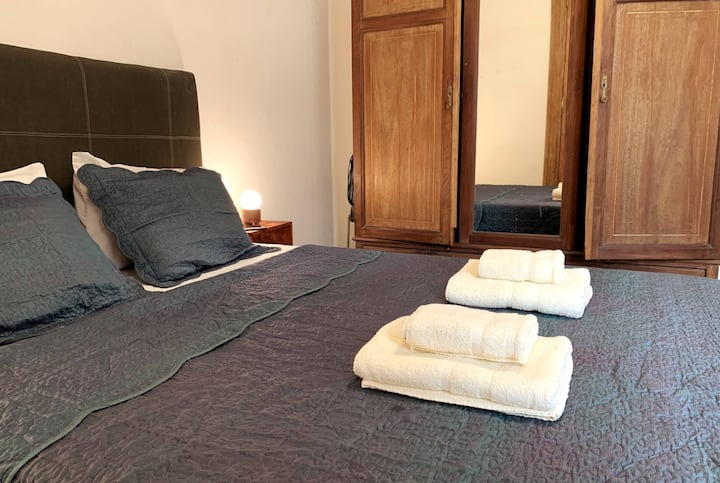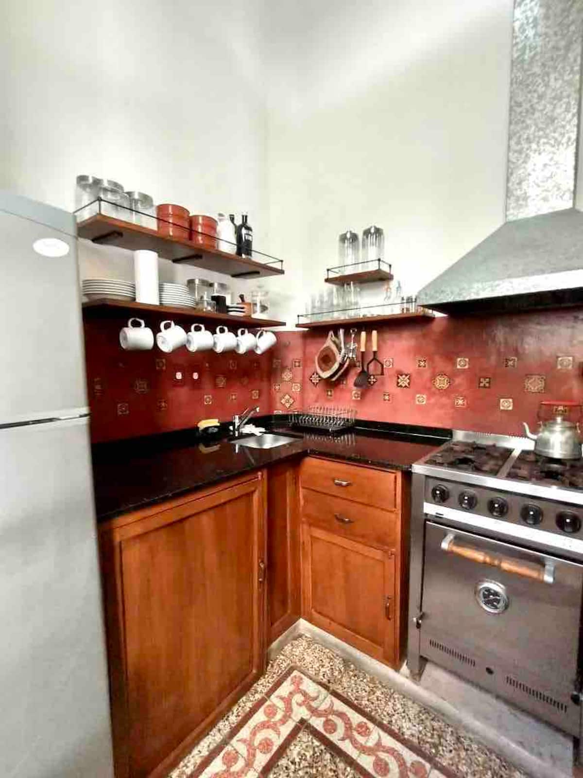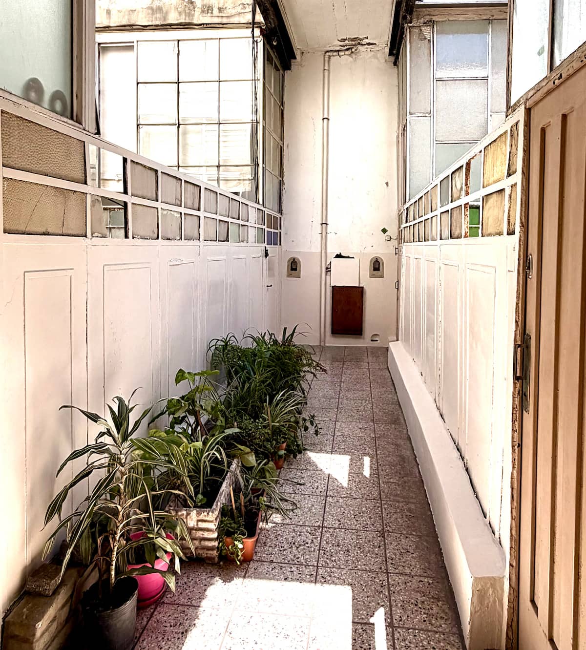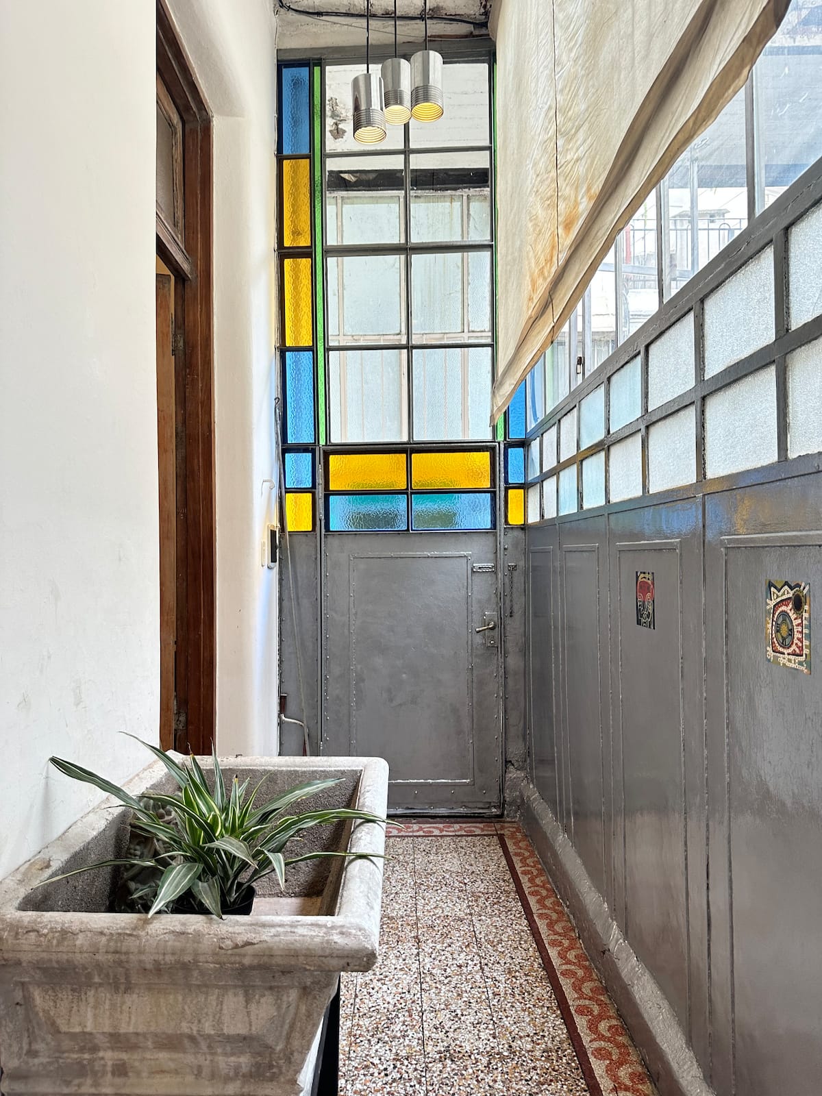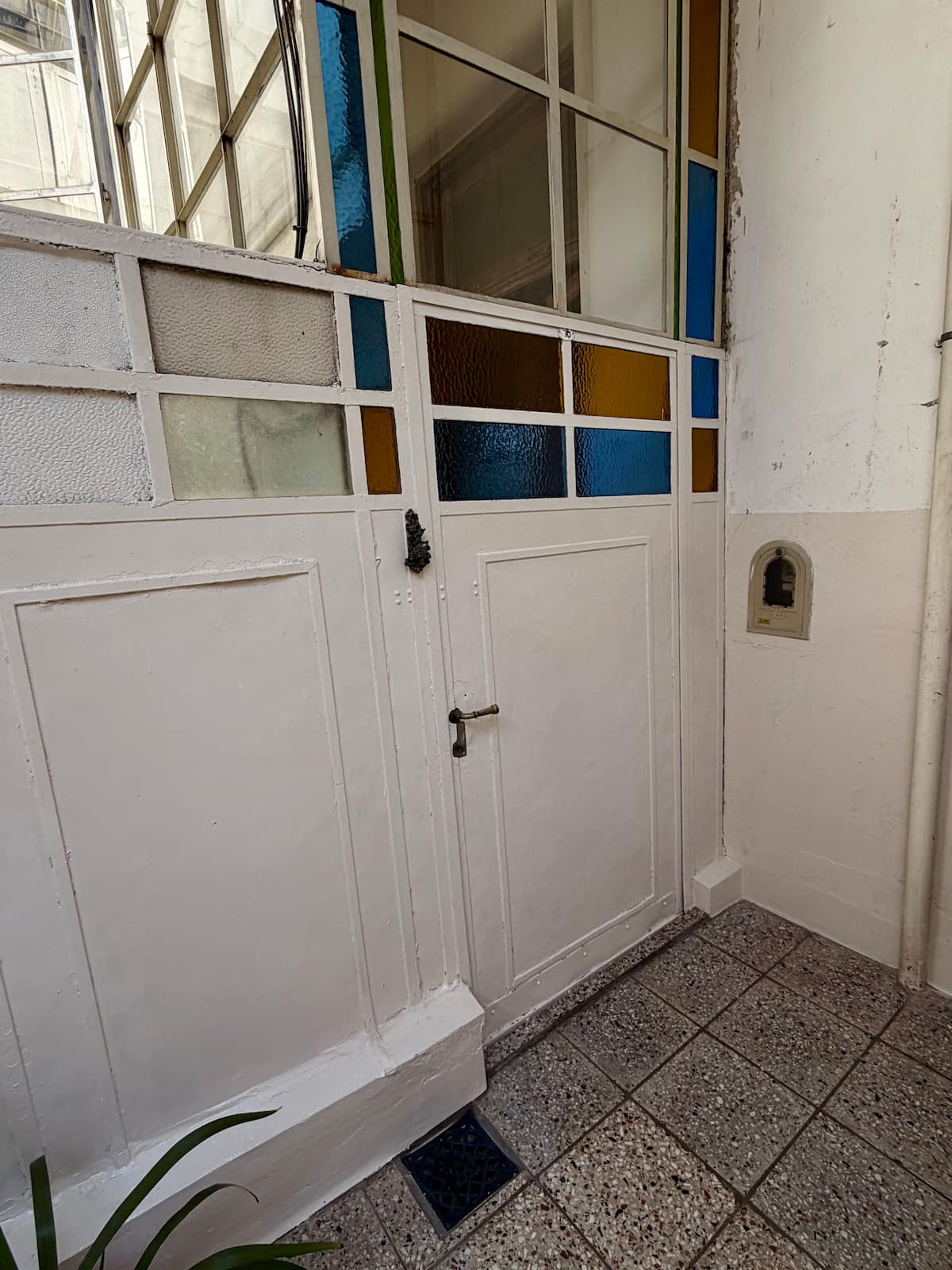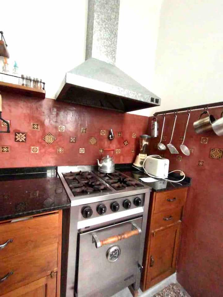 Apartamento de 1 quarto com 53 m² no 1º andar, em prédio residencial do fim do século XIX com elevador, em San Telmo. Unidade em PH com acesso a um pátio interno e portas de correr em madeira com estilo francês ligando quarto, sala, banheiro e cozinha ao pátio. Cozinha com forno elétrico pequeno e 2 fogões elétricos; aquecimento elétrico. A partir do início de setembro há obras no edifício com substituição de tubulações de gás; a unidade funciona totalmente com energia elétrica. Inclui cozinha e