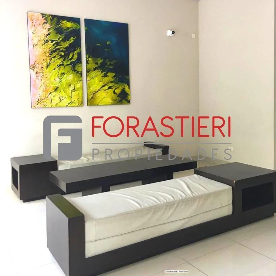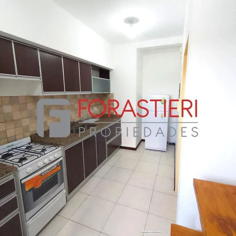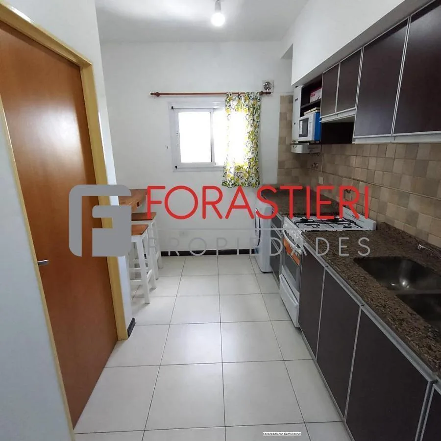 Apartamento de dois ambientes para locação temporária em Tigre, disponível a partir de junho de 2026. O living tem saída para varanda contínua e vista para a estação central de Tigre, com TV e ar-condicionado. Cozinha separada com janela para o exterior, lavanderia com máquina de lavar e área de café da manhã. Banheiro completo com banheira e box. Quarto com cama matrimonial King Size, mesas de luz e aquecimento por tiro balanceado.