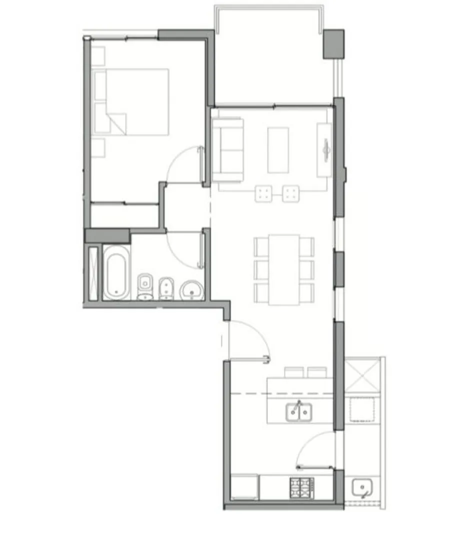 Apartamento de 2 ambientes na Torre Cardón, em Tigre, com 50 m² cobertos e 63 m² totais. Fica em Montes de Oca e tem varanda com vista aberta. Inclui living com cozinha integrada, 1 dormitório com armário embutido e 1 banheiro. O edifício conta com piscina com solário, área de churrasco ao ar livre, e laundry.