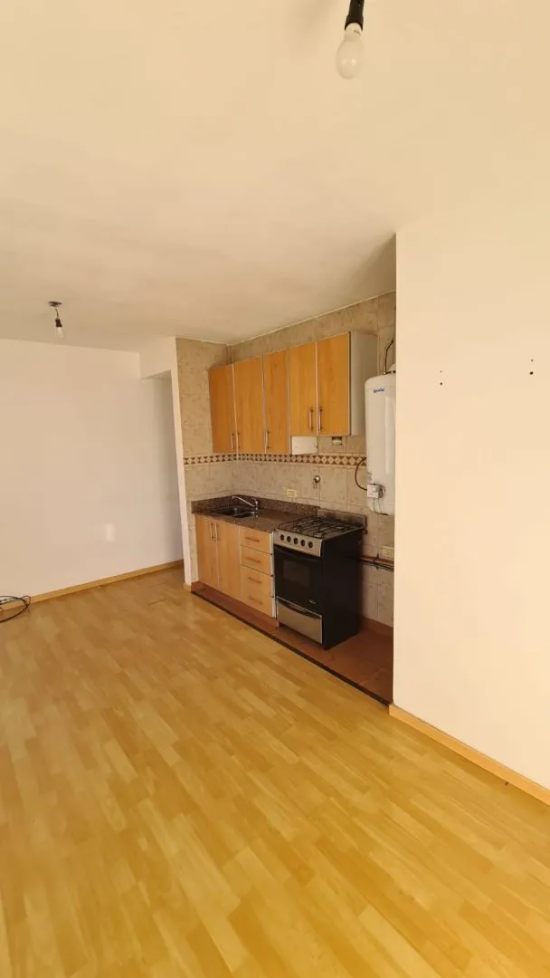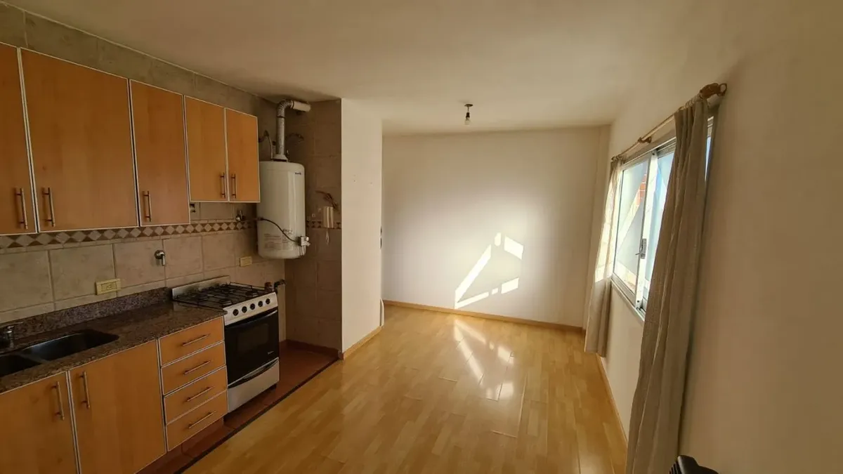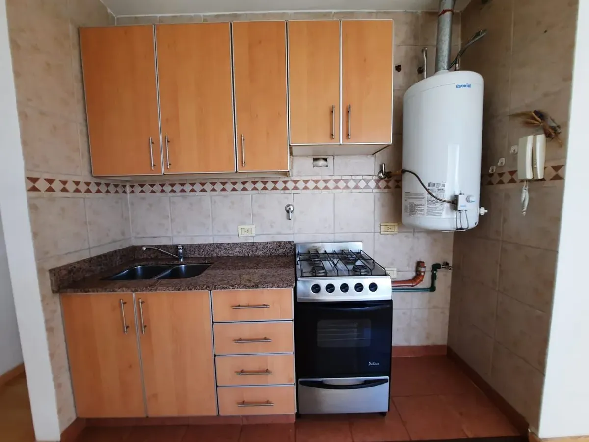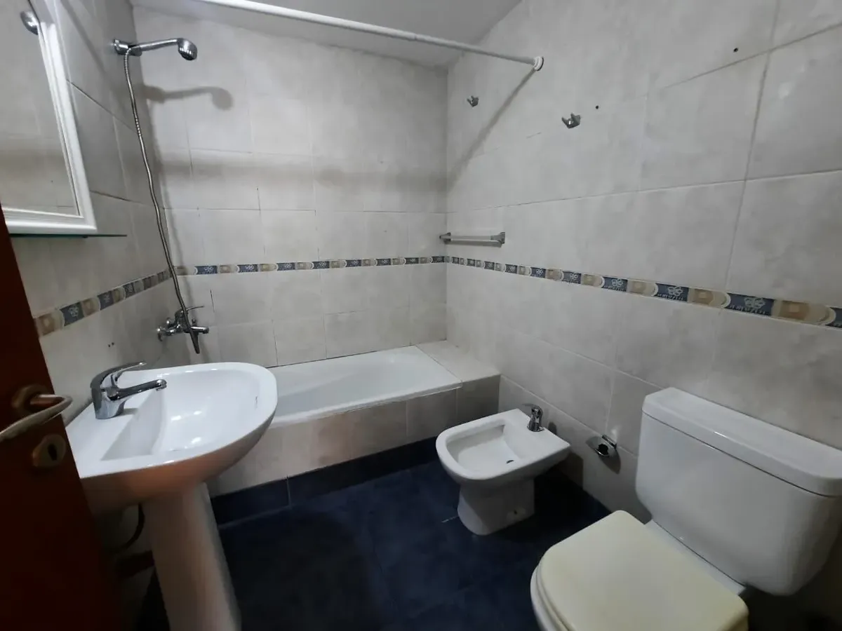 Apartamento de 2 ambientes em Santos Lugares, Tres de Febrero, com sala de estar e sala de jantar, cozinha completa com alacena e armário inferior, fogão, bancada com pia dupla, torneiras monocomando e aquecedor de água (termotanque) de 80 litros. Banheiro completo com banheira e quarto com armário embutido com interiores e tiro balanceado, sem varanda. O edifício tem salão de festas (SUM) com churrasqueira e lavanderia (sala de laundry). Aluguel sem animais e sem crianças, com limite de 2 pesso