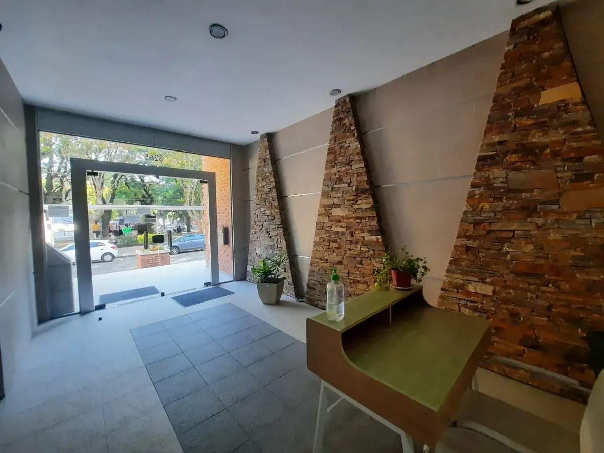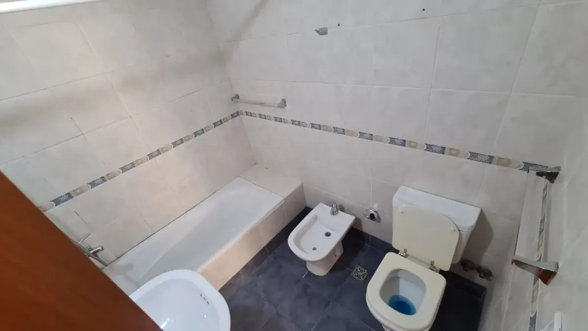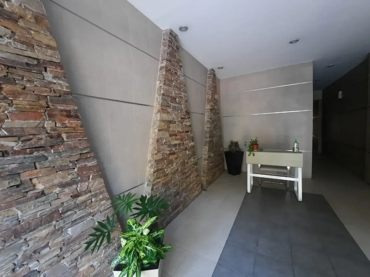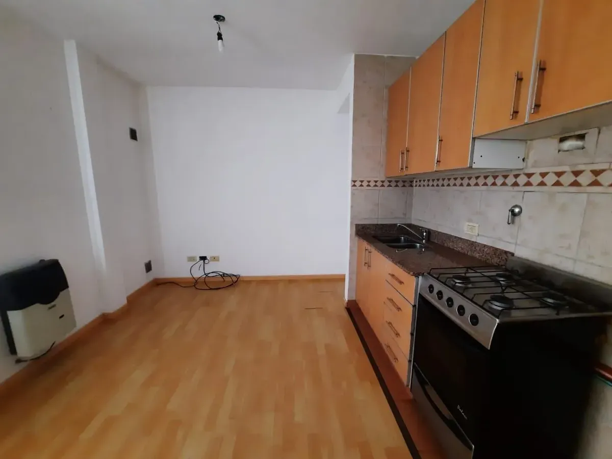 Apartamento de 2 ambientes em Santos Lugares, Tres de Febrero, com sala de estar e sala de jantar, cozinha completa com alacena e armário inferior, fogão, bancada com pia dupla, torneiras monocomando e aquecedor de água (termotanque) de 80 litros. Banheiro completo com banheira e quarto com armário embutido com interiores e tiro balanceado, sem varanda. O edifício tem salão de festas (SUM) com churrasqueira e lavanderia (sala de laundry). Aluguel sem animais e sem crianças, com limite de 2 pesso