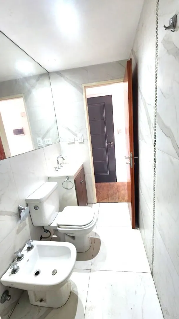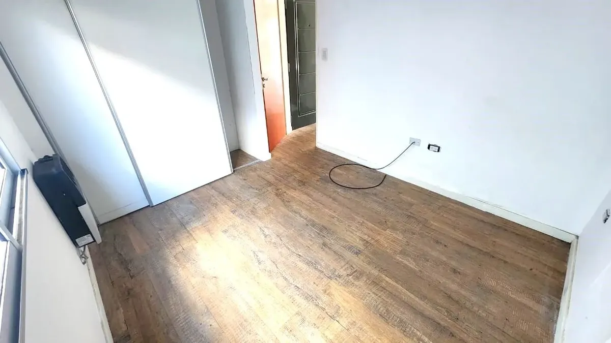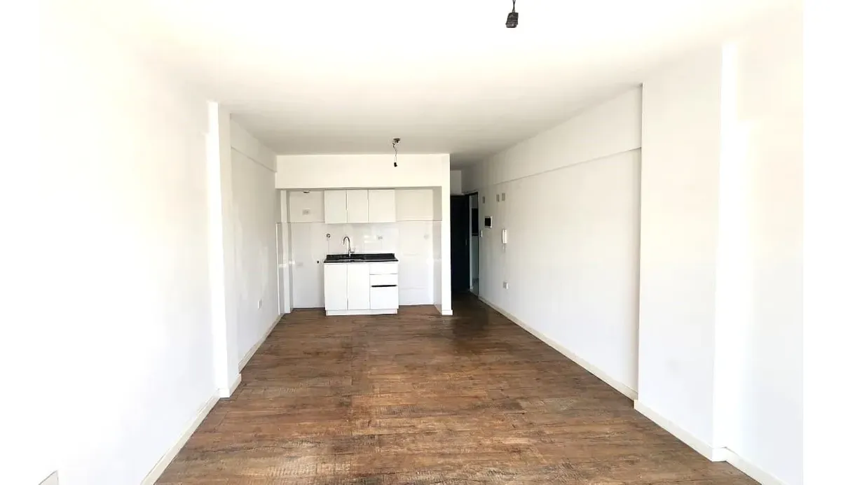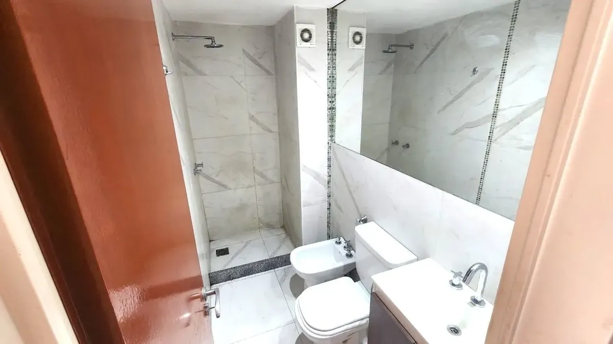 Apartamento de 2 ambientes de frente para os fundos (contrafrente) com vista aberta, 1 quarto e banheiro completo. O estar e a sala de jantar integram a cozinha com armário sob a bancada e dão acesso a uma varanda. Possui piso de porcelanato tipo madeira, instalação para ar-condicionado em todos os ambientes, torneiras FV e louças Ferrum, esquadrias de alumínio anodizado cinza e azulejos no banheiro 60 x 60 tipo Carrara. Fica a 2 quadras da Estación Villa Bosch (Ferrocarril Urquiza) e há possibi