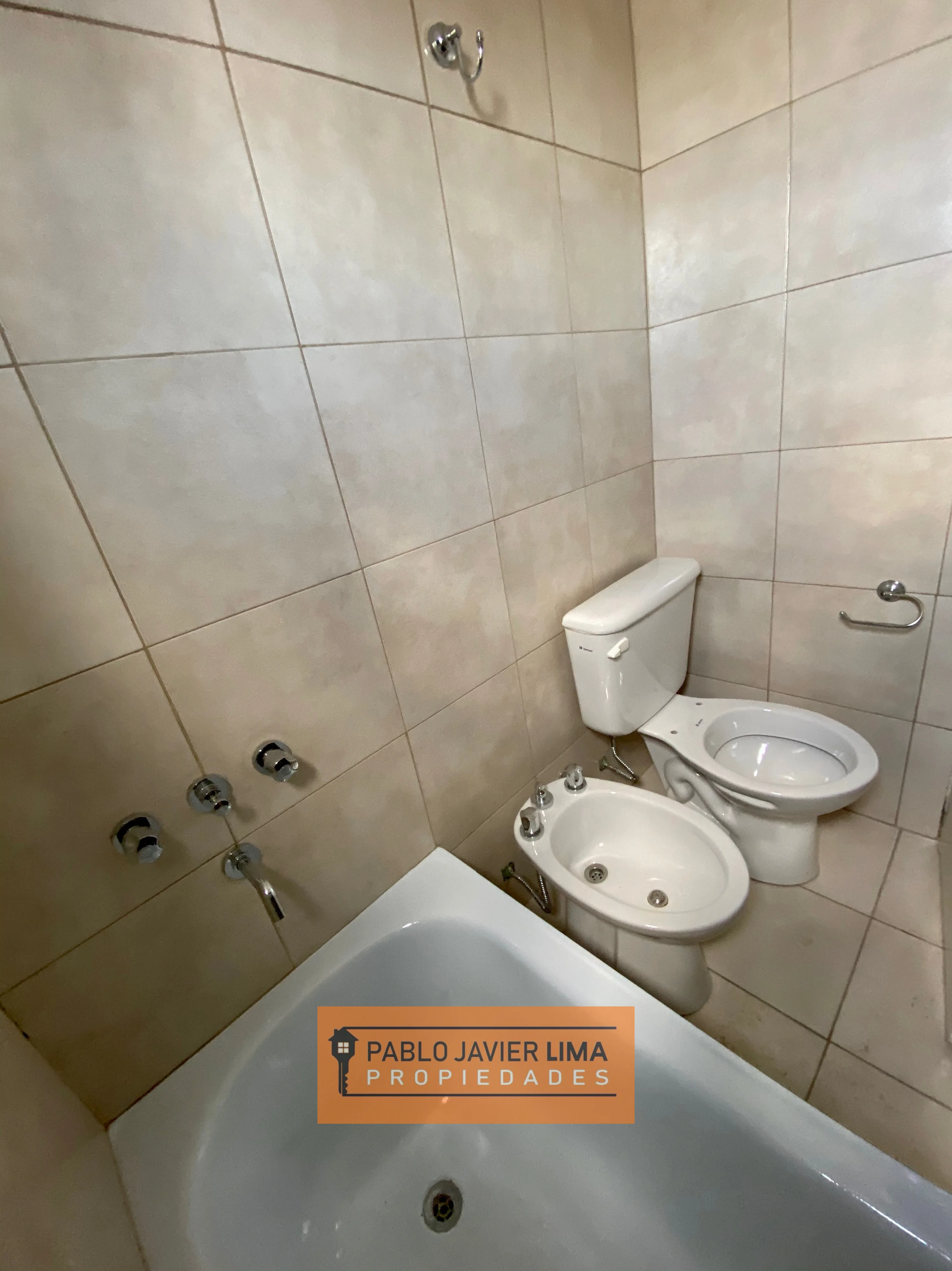 Apartamento de 2 ambientes em Caseros, Tres de Febrero, no 4º andar de fundos (contrafrente), com elevador. O imóvel tem entrada para living com sala de jantar, piso de cerâmica, cozinha independente com armário de base, fogão a gás, aquecedor de água (termo) elétrico e ponto para lavadora, além de hall de distribuição e dormitório com armário embutido sem interiores. Há banheiro completo com banheira e varanda com piso de cerâmica. Contrato de 24 meses, com garantia por propriedade ou seguro-fi