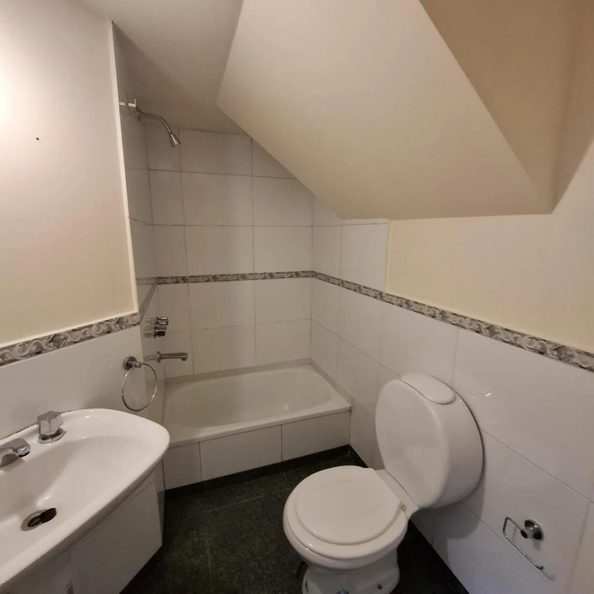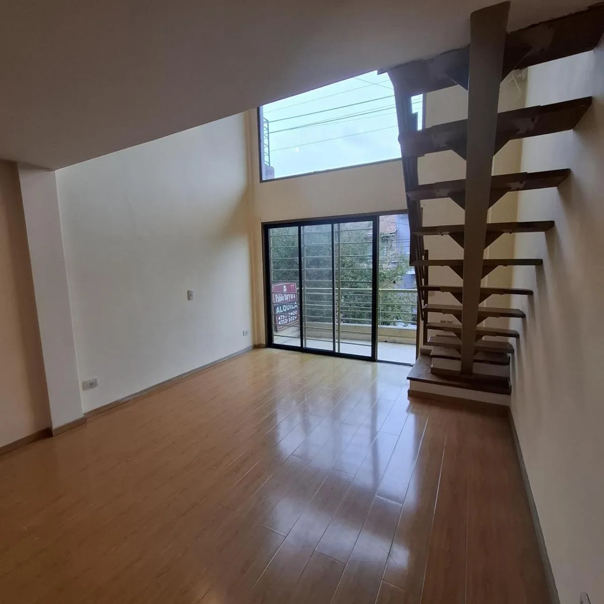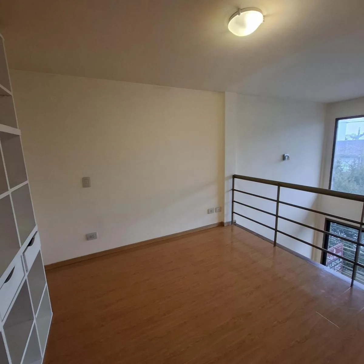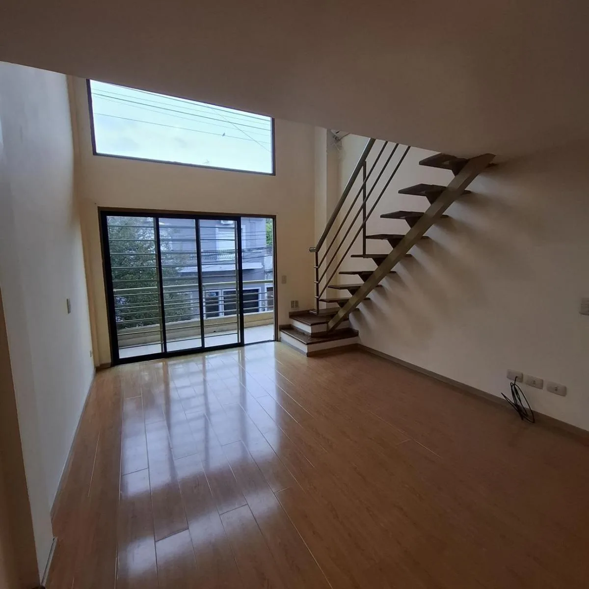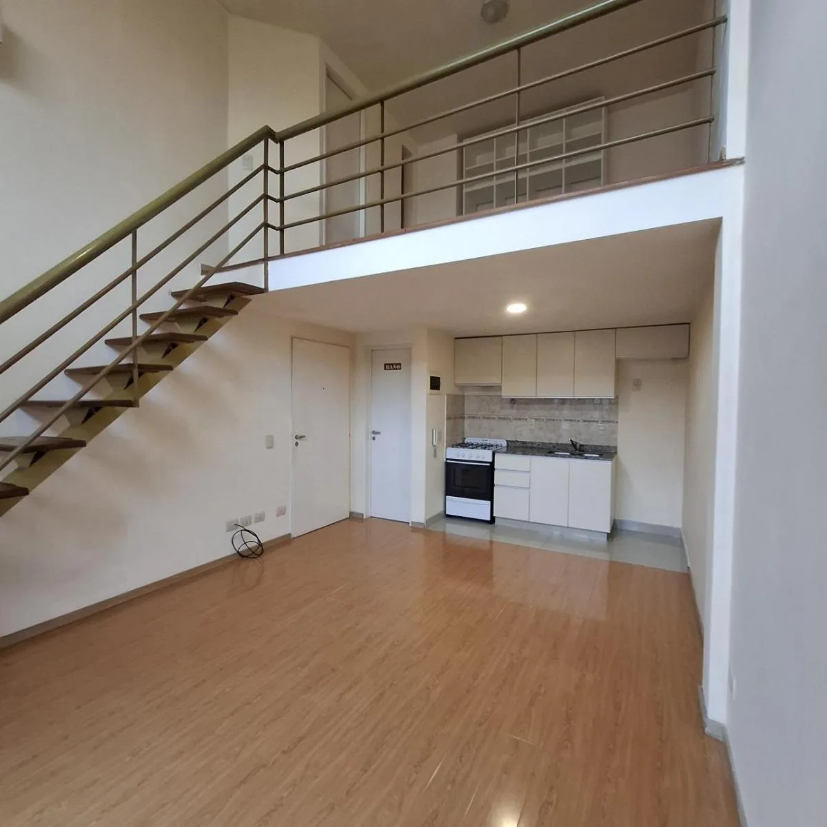 Apartamento de 2 ambientes em aluguel, em duas plantas, com varanda de frente para a rua. Possui sala de estar e jantar com cozinha integrada, banheiro de recepção e quarto com armário embutido. Inclui banheiro completo, área coberta na varanda para máquina de lavar e ar-condicionado, com condomínio baixo. Fica a 2 quadras da Iglesia de Lourdes, próximo à zona comercial e a poucas quadras da estação de Lourdes (Linha Urquiza).