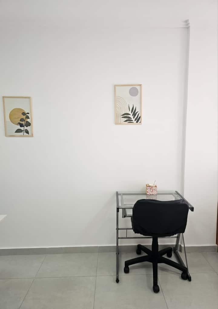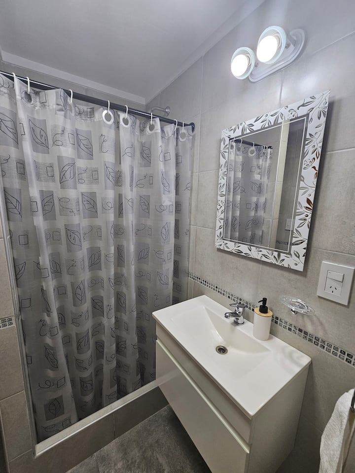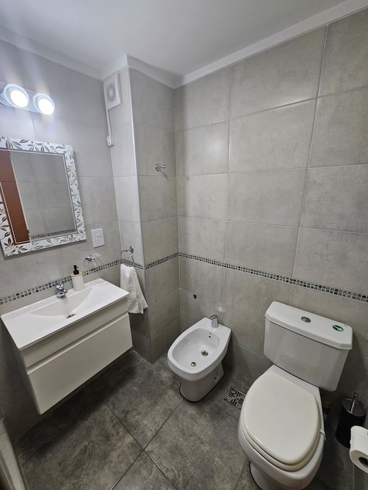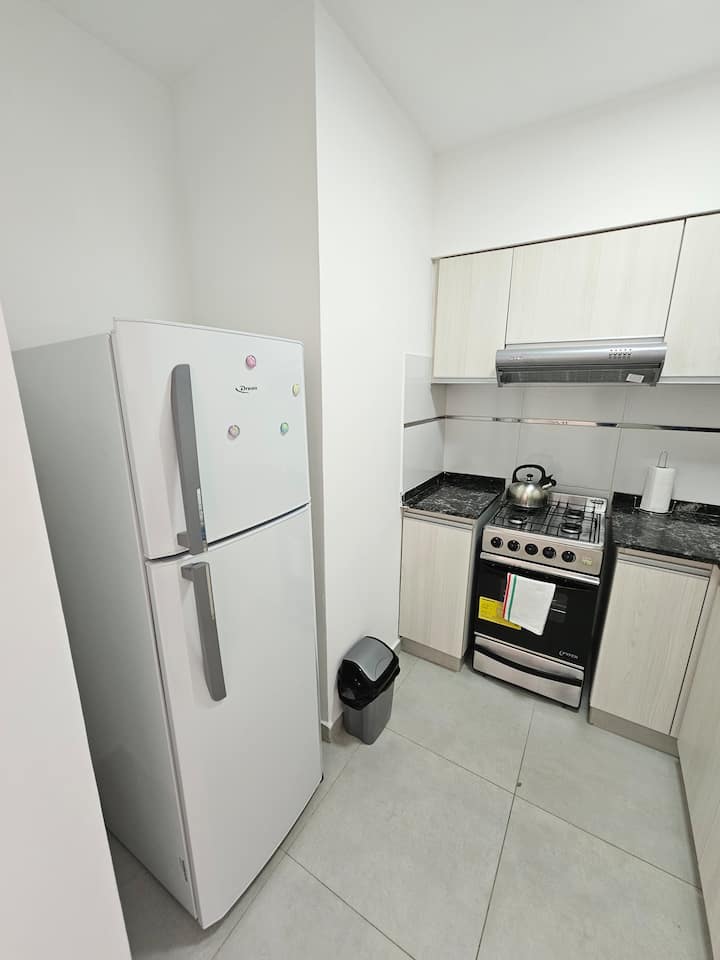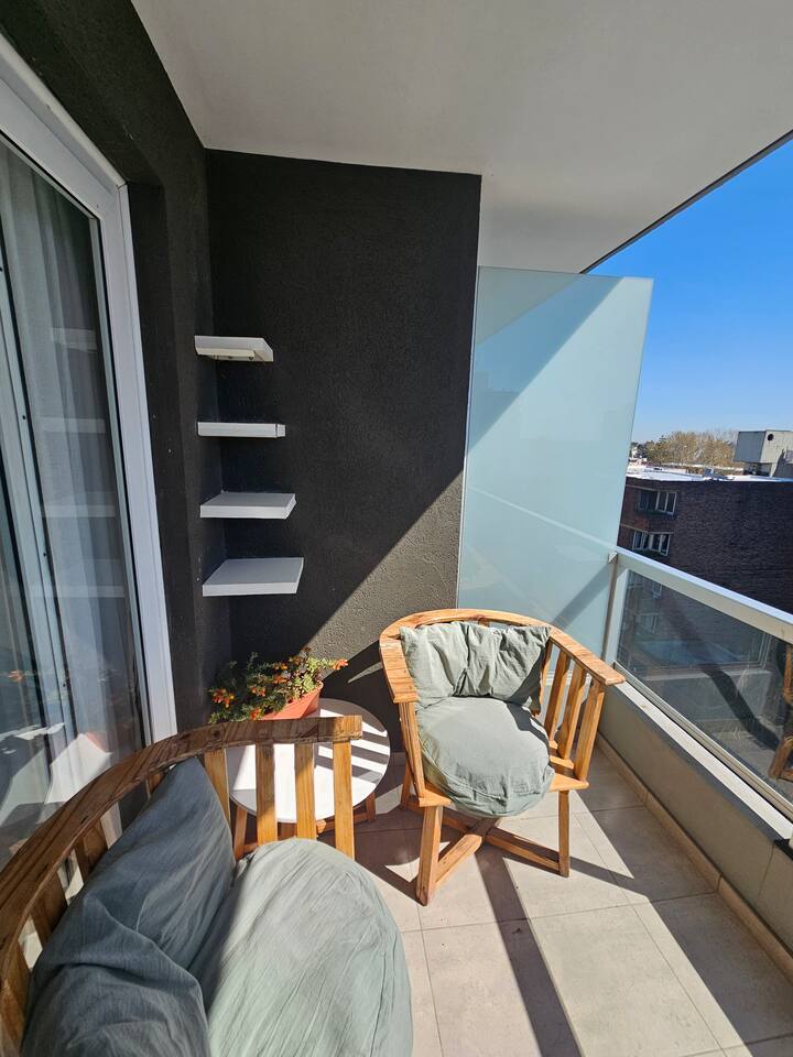 Apartamento de 2 ambientes com 1 quarto em Caseros, em prédio de 8 andares com elevador. O imóvel dispõe de cama de casal, sofá-cama no living, cozinha equipada com utensílios básicos, geladeira com freezer, fogão a gás, 1 banheiro completo, Wi-Fi, TV smart, ar-condicionado e varanda. Fica a 150 metros da Av. San Martín e a 400 metros da estação Caseros da linha San Martín, com várias linhas de ônibus (53, 237, 328, 123, 343, 105 e outras).