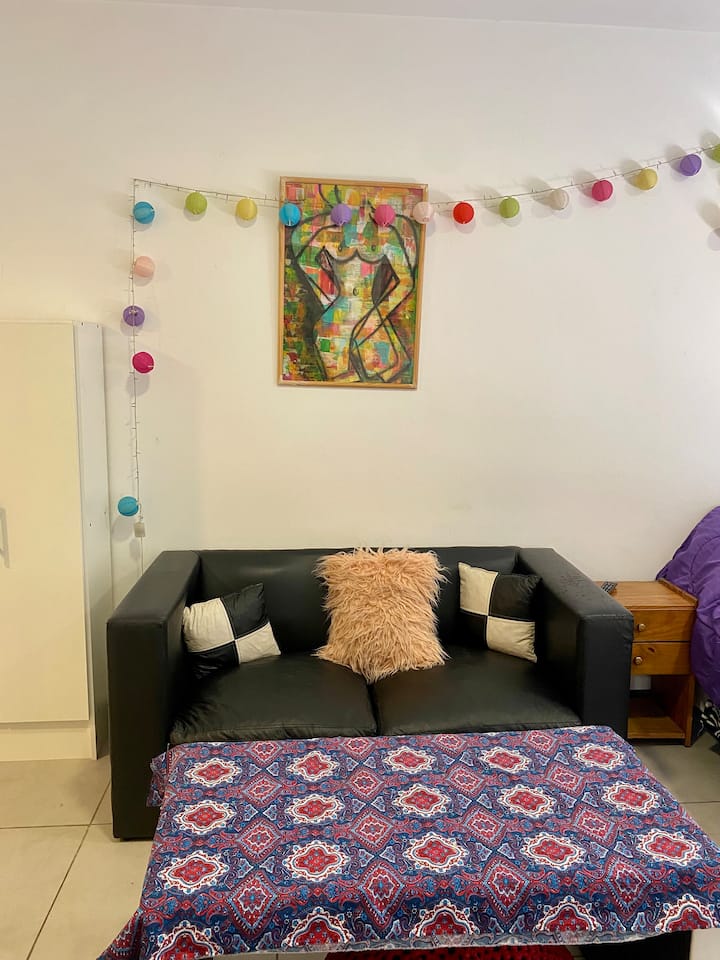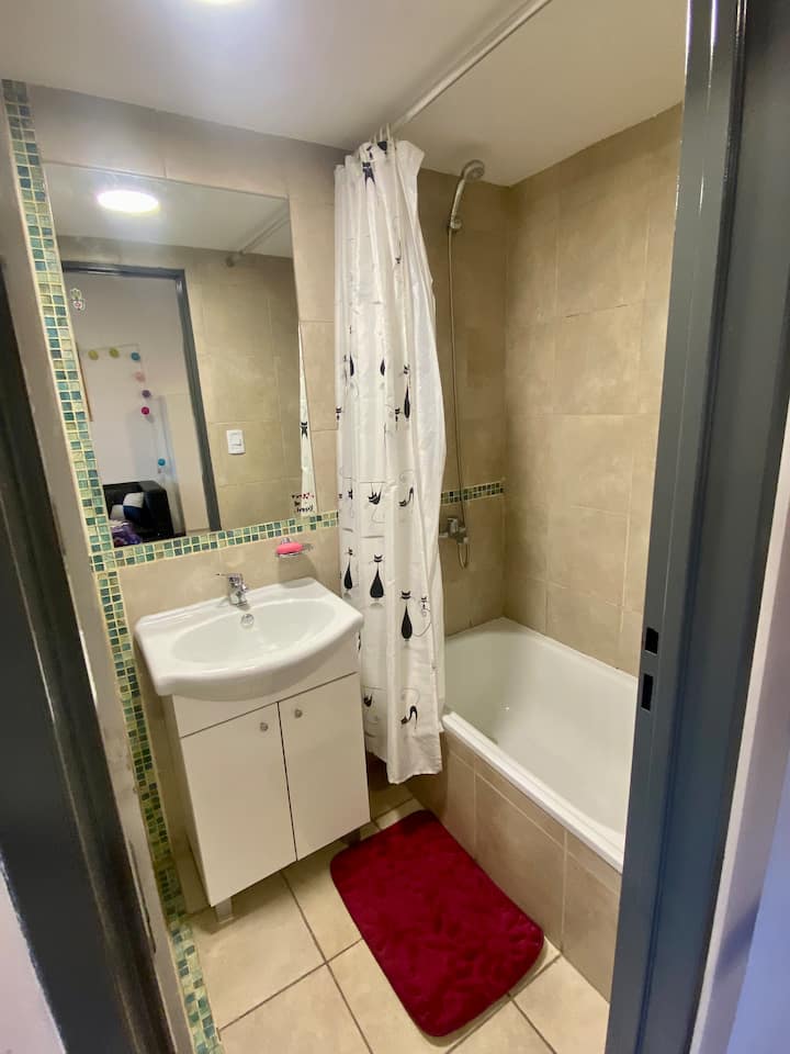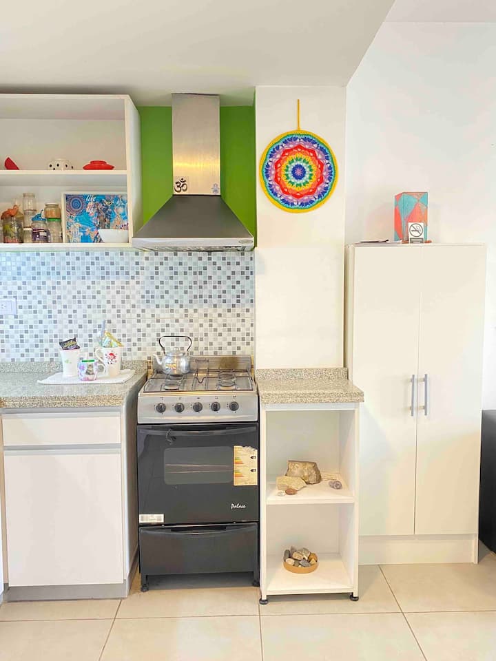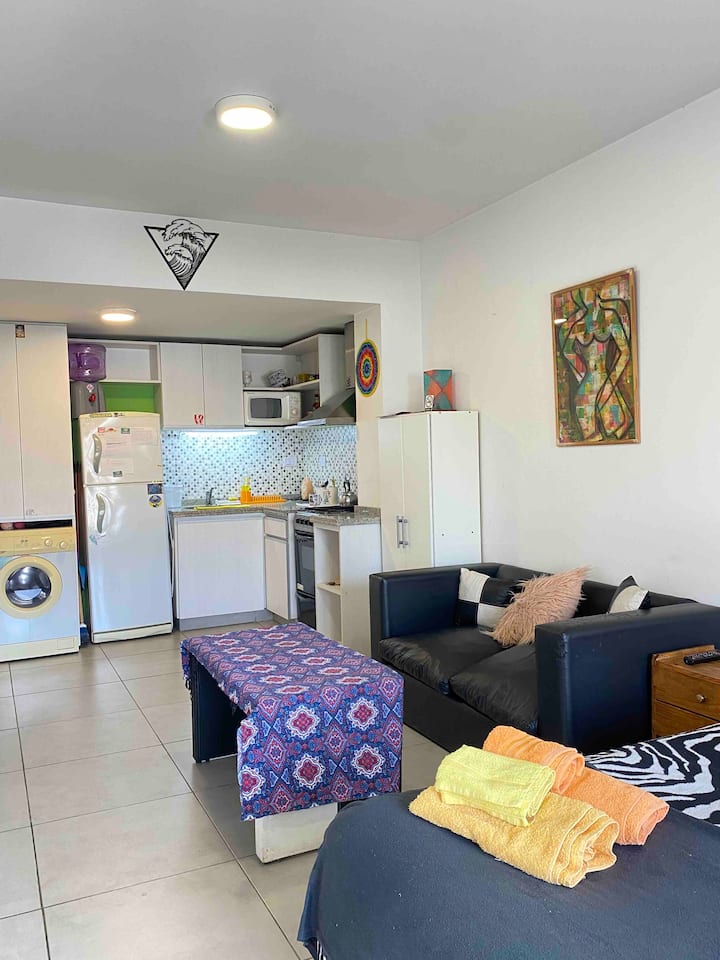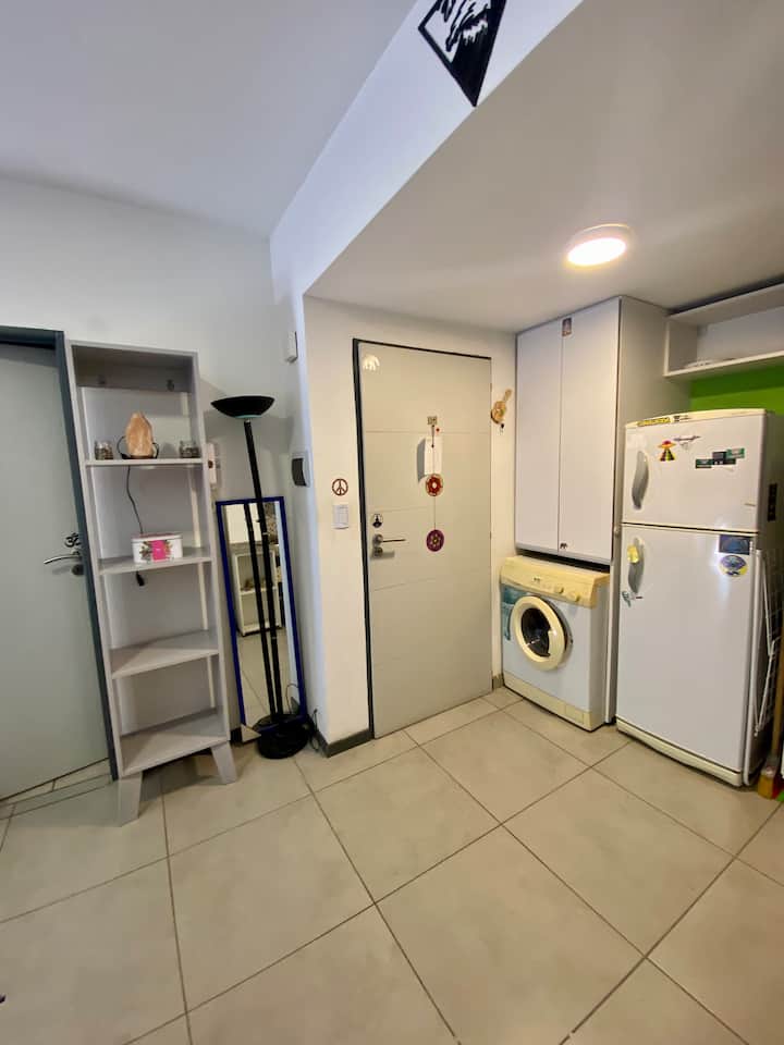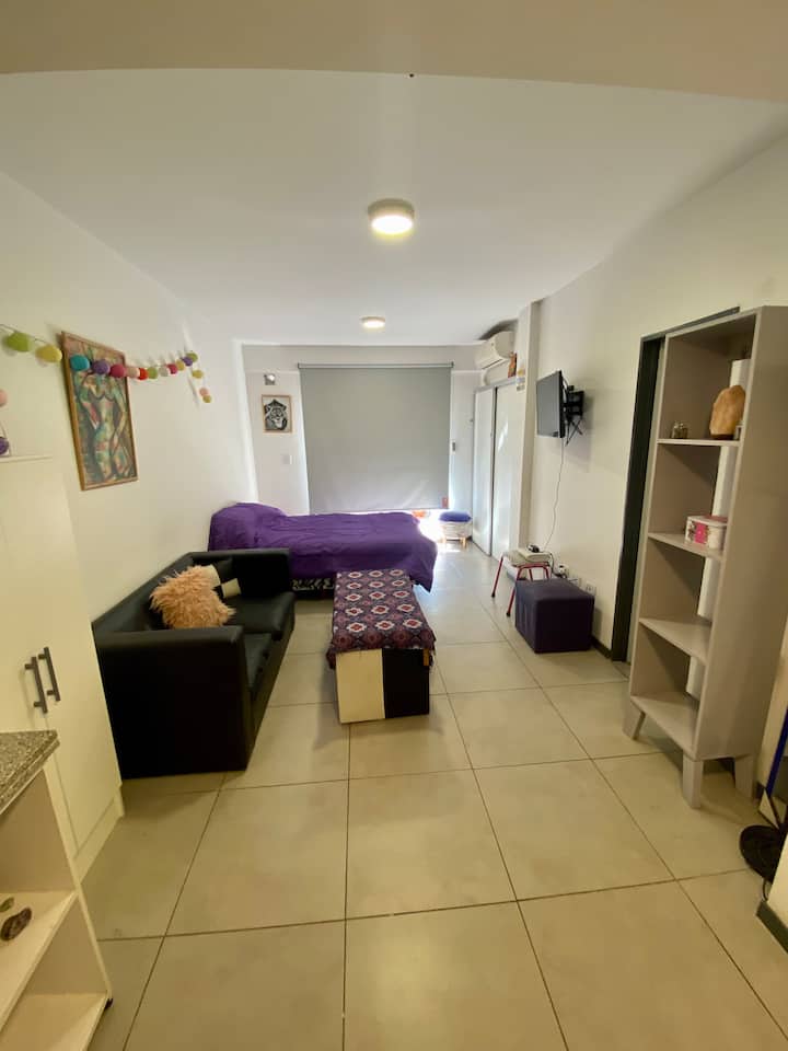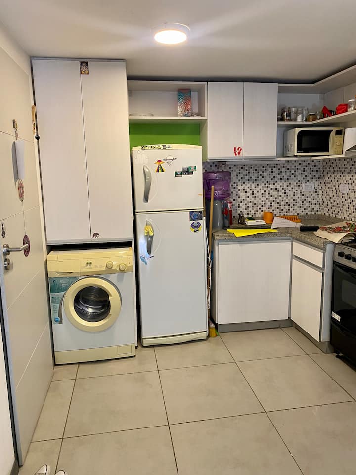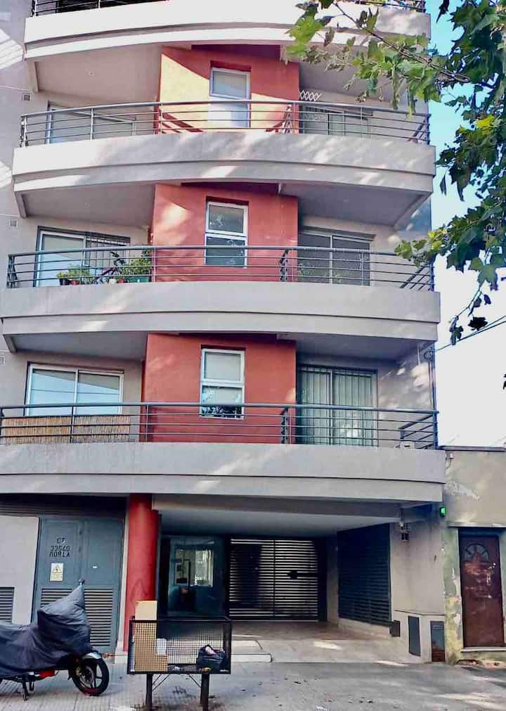 Apartamento com 1 quarto, varanda e mobiliário. Fica no 3º andar, com elevador. Possui máquina de lavar, fogão, geladeira com freezer, micro-ondas, smart TV e ar-condicionado com aquecimento. Está a 4 quadras da estação Urquiza e a 4 quadras da estação San Martín, com integração ao metrô (linhas B e D), além de 5 quadras de General Paz. Em área residencial, no entorno do Shopping de Sáenz Peña, com estacionamento gratuito na rua.