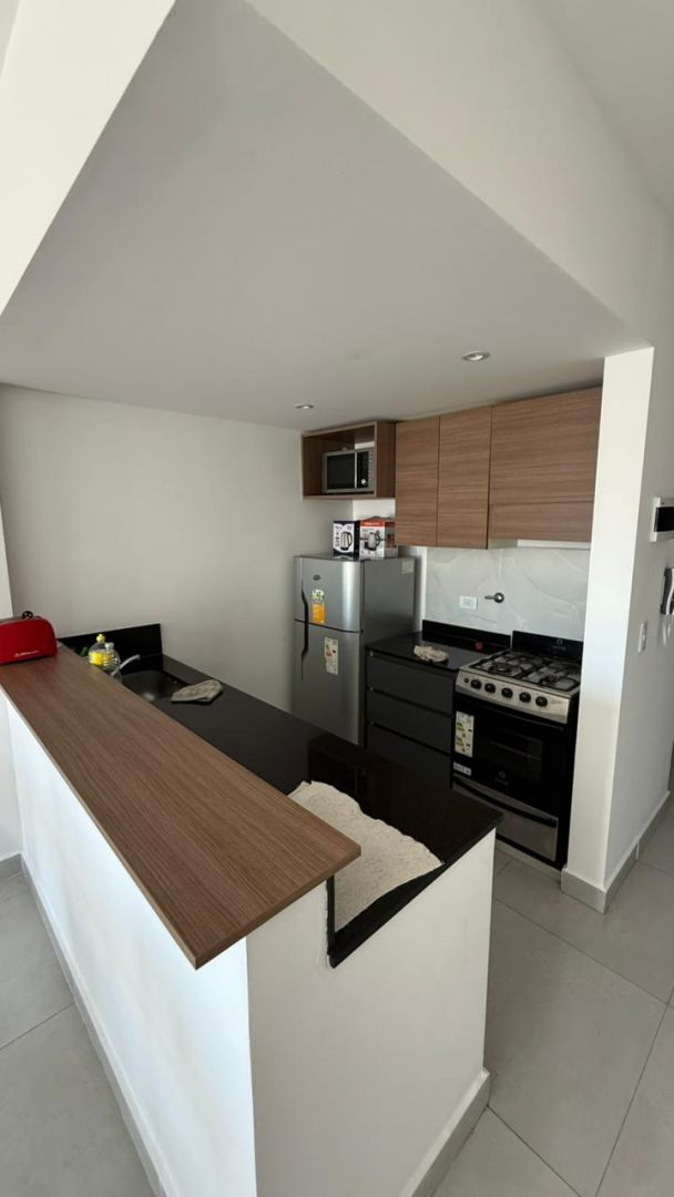 Apartamento de 2 ambientes em Tres de Febrero, com sala de estar e jantar, cozinha integrada, banheiro completo e lavabo. O dormitório tem armário embutido. Há vaga de garagem separada.