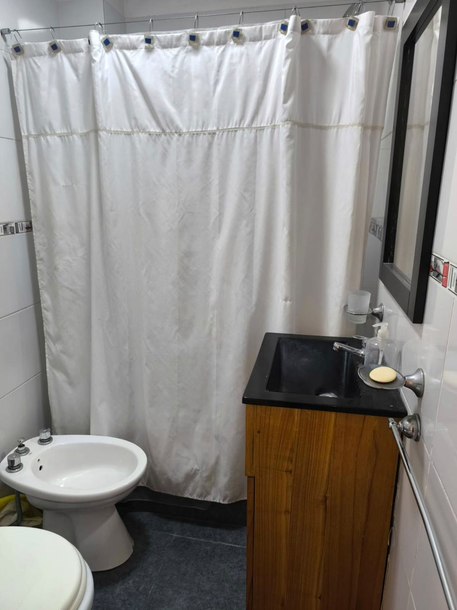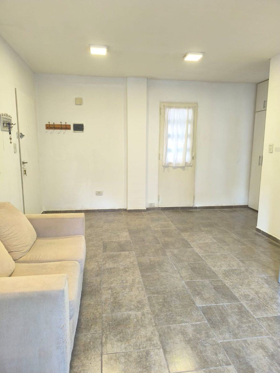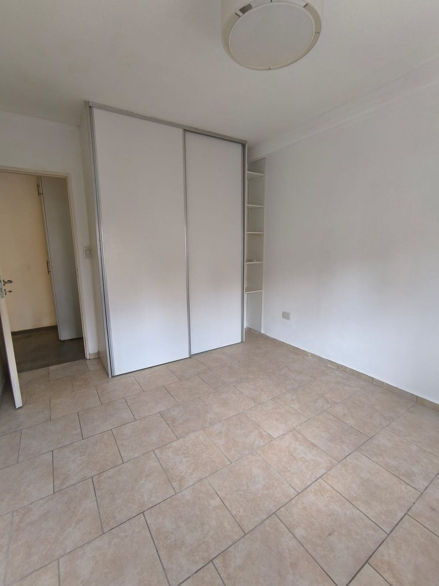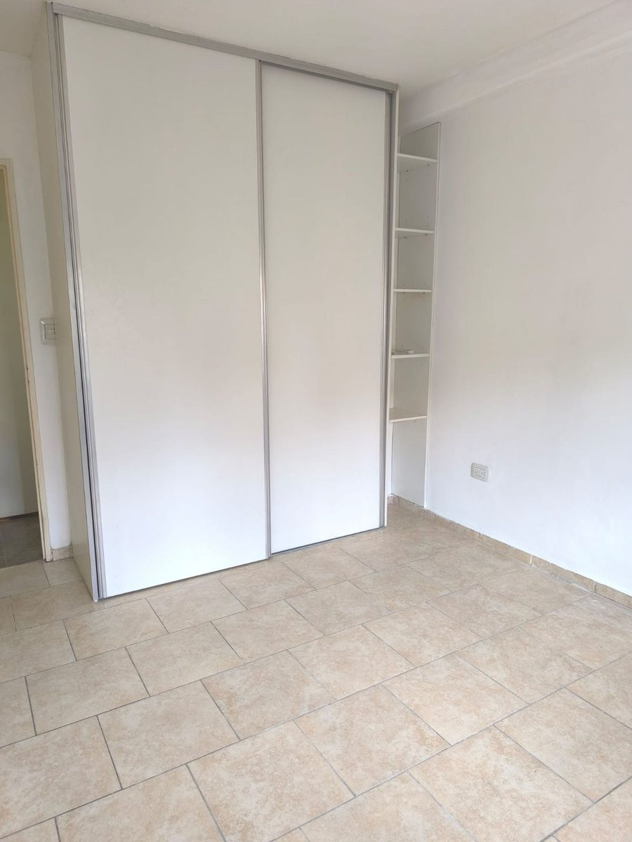 Apartamento de dois ambientes com 1 quarto, em planta baixa, de frente para a rua, no bairro Santos Lugares, em Tres de Febrero. O imóvel tem cozinha a gás e aquecedor de água elétrico, banheiro completo com chuveiro e pisos de cerâmica. Possui 2 aparelhos de ar-condicionado frio-quente, espaço de armazenamento no living e no dormitório e pátio privativo no miolo de quadra do prédio. No 4º andar, há 2 lava-secadoras e uma área de uso comum com terraço. Condomínio de $48.000; aluguel sujeito a an