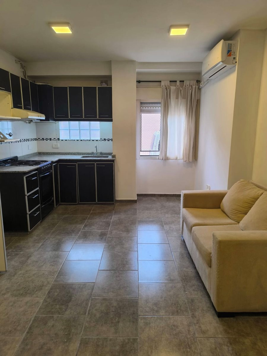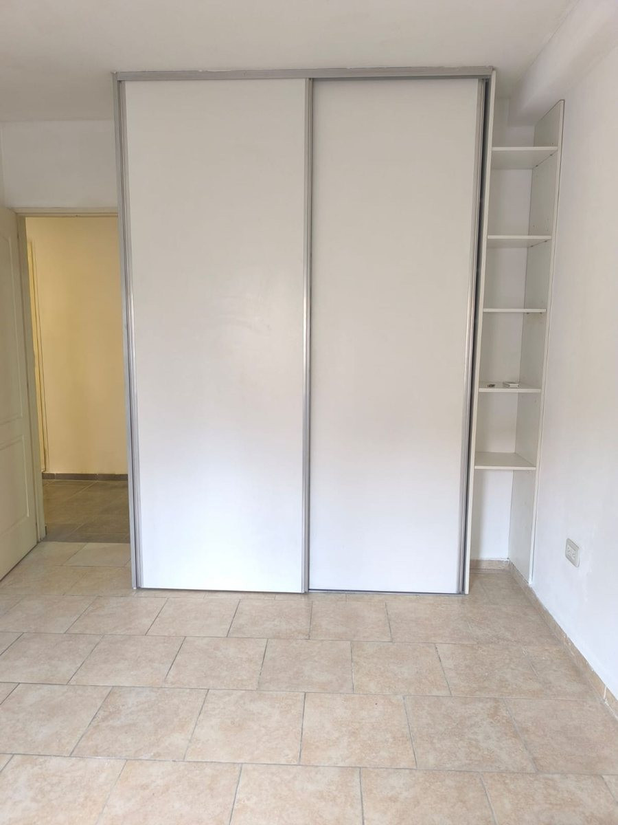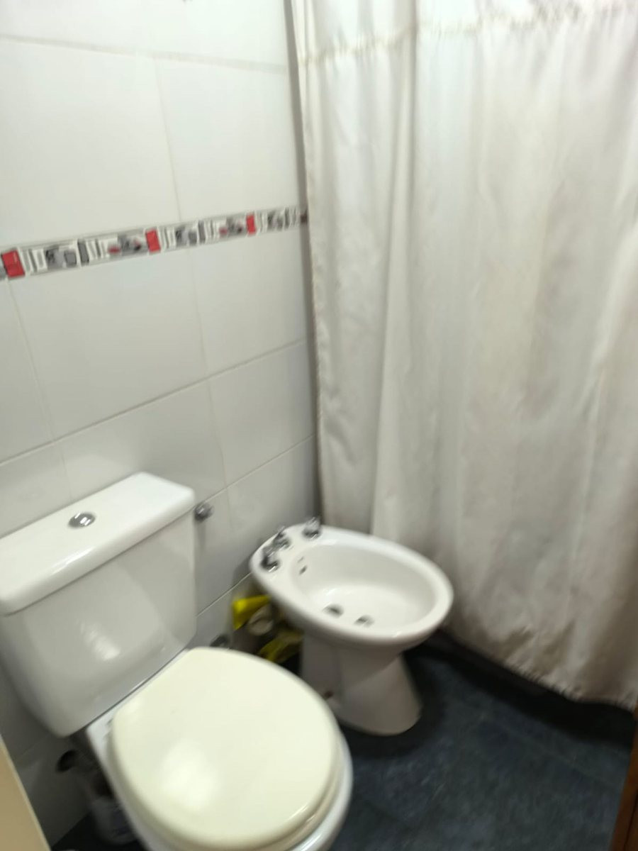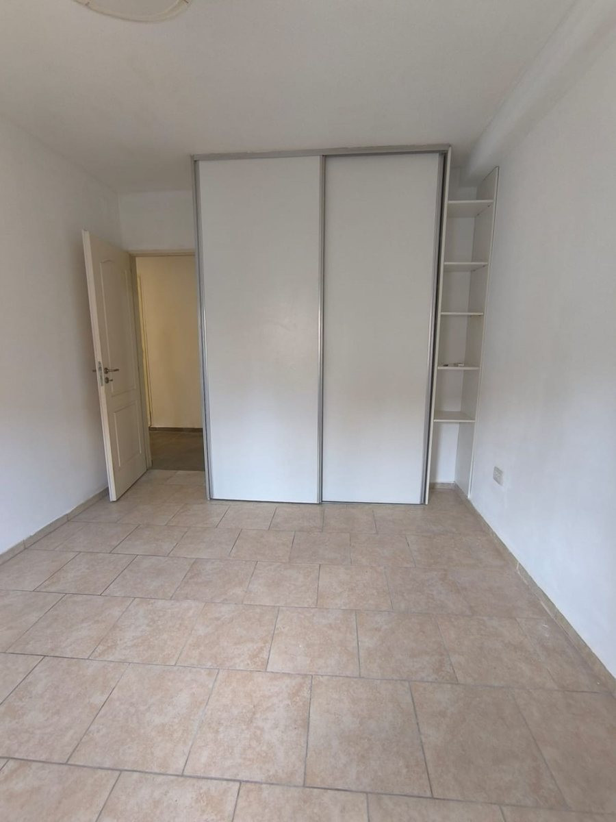 Apartamento de dois ambientes com 1 quarto, em planta baixa, de frente para a rua, no bairro Santos Lugares, em Tres de Febrero. O imóvel tem cozinha a gás e aquecedor de água elétrico, banheiro completo com chuveiro e pisos de cerâmica. Possui 2 aparelhos de ar-condicionado frio-quente, espaço de armazenamento no living e no dormitório e pátio privativo no miolo de quadra do prédio. No 4º andar, há 2 lava-secadoras e uma área de uso comum com terraço. Condomínio de $48.000; aluguel sujeito a an