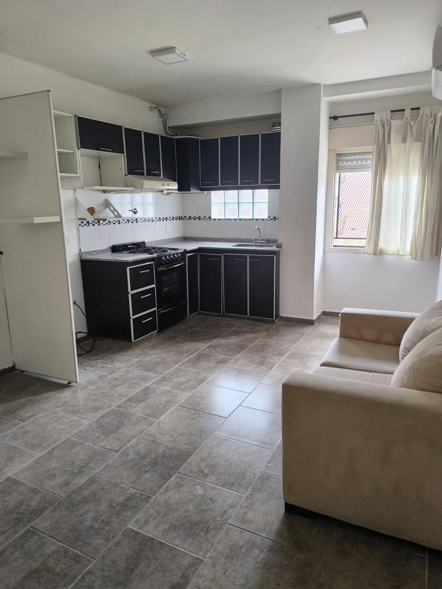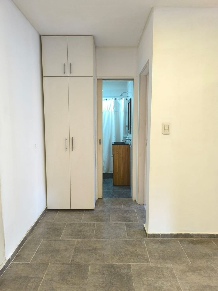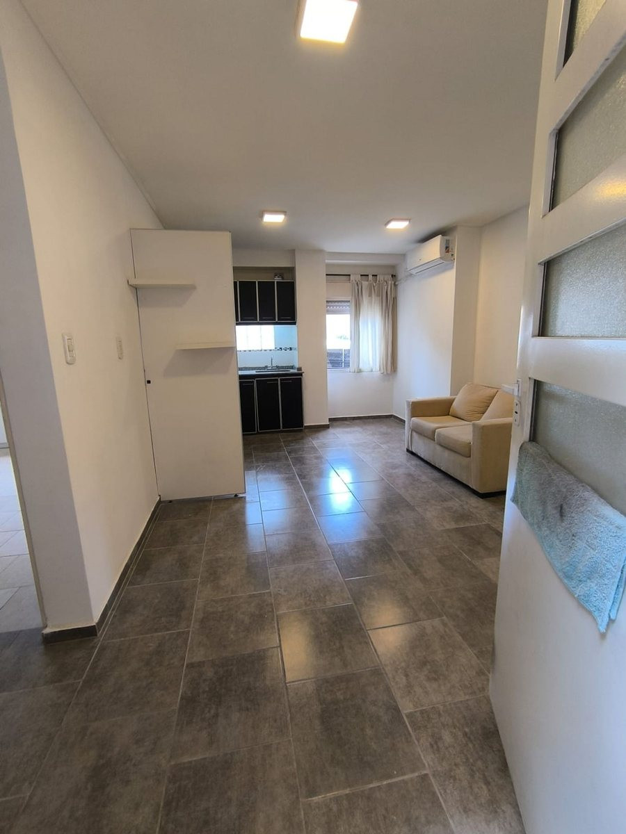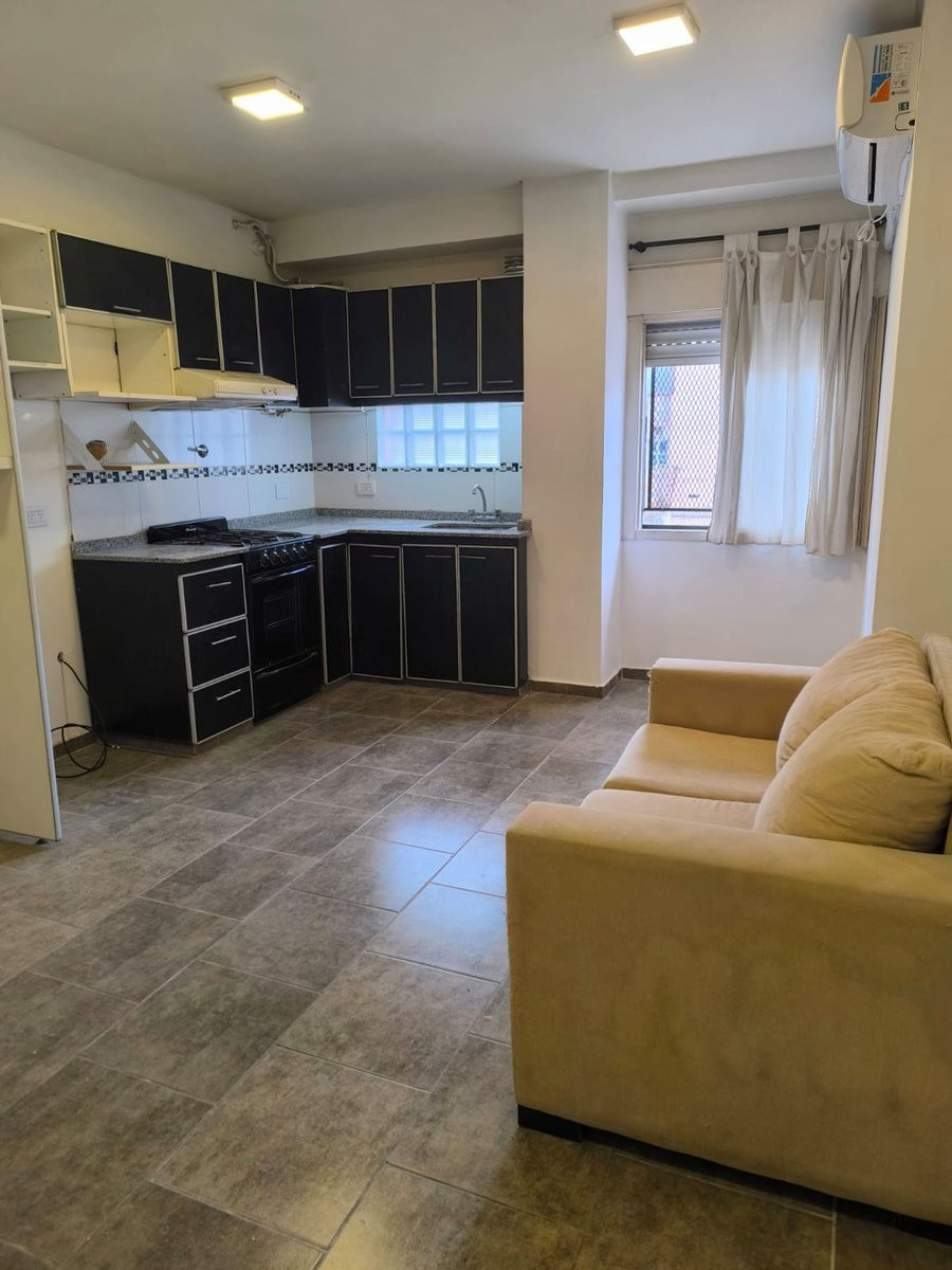 Apartamento de dois ambientes com 1 quarto, em planta baixa, de frente para a rua, no bairro Santos Lugares, em Tres de Febrero. O imóvel tem cozinha a gás e aquecedor de água elétrico, banheiro completo com chuveiro e pisos de cerâmica. Possui 2 aparelhos de ar-condicionado frio-quente, espaço de armazenamento no living e no dormitório e pátio privativo no miolo de quadra do prédio. No 4º andar, há 2 lava-secadoras e uma área de uso comum com terraço. Condomínio de $48.000; aluguel sujeito a an