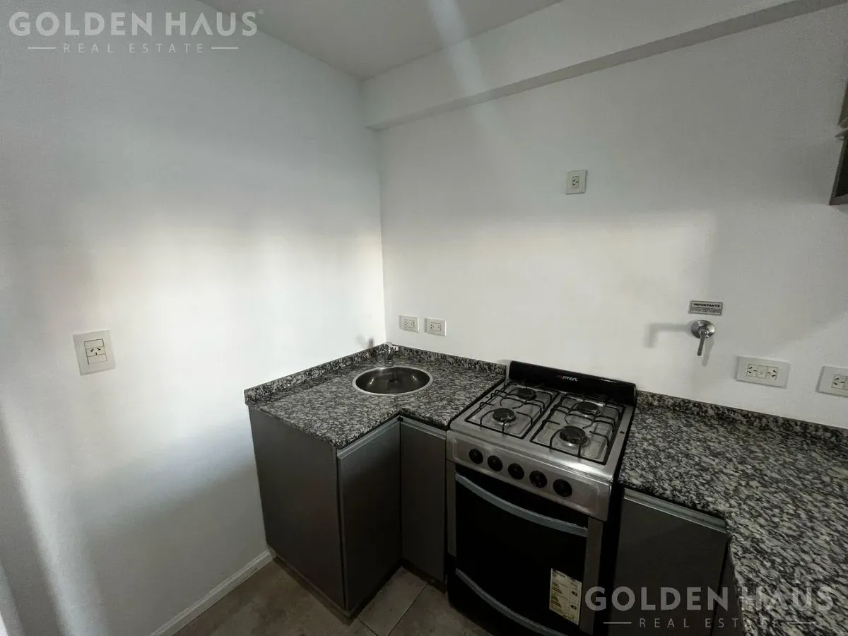 Kitnet para aluguel em Vélez Sarsfield, com 29,68 m² cobertos, no 2º andar, unidade C, de frente para a rua e com orientação oeste. Possui 1 banheiro e cozinha com armários altos e baixos. O prédio tem 9 andares, elevador e acesso a salão de usos múltiplos (SUM). Fica a 1 quadra da Av Rivadavia.