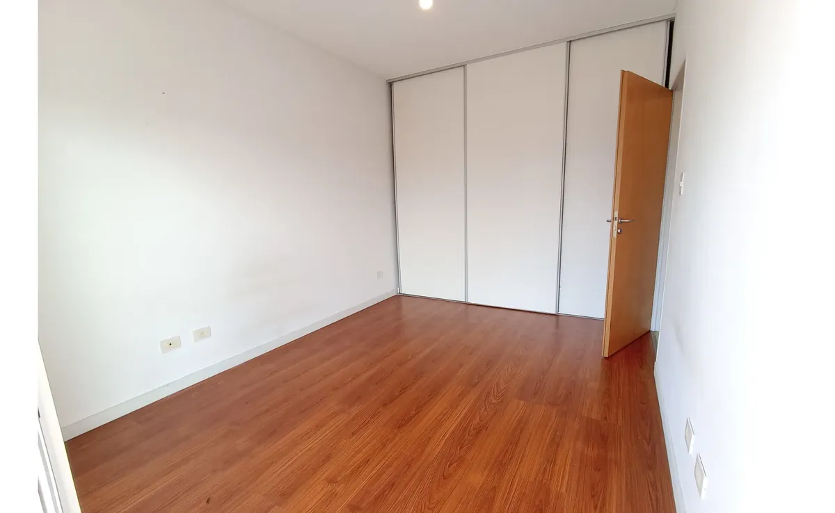 Apartamento de 2 ambientes em meio andar para aluguel, com 50 m² totais (42,5 m² cobertos e 8 m² descobertos), no 4º piso, com frente para a rua e orientação leste. Tem varanda corrida ampla de 8,00 m x 1,00 m, living integrado com sala de jantar de 4,20 m x 4,00 m, cozinha de 2,80 m x 2,00 m e 1 quarto de 2,80 m x 4,20 m com armário embutido e acesso à varanda. Piso em porcelanato e revestimento cerâmico na cozinha, janelas e portas com vidro duplo e fechamento silencioso; banheiro completo com