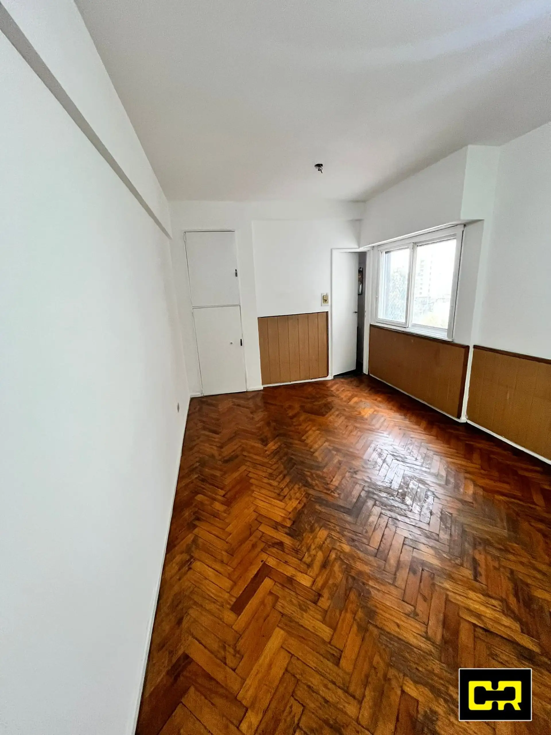 Kitnet com 1 quarto em Floresta, unidade interna. Possui área principal de 3,09 x 5,07 com piso de parquet e boa iluminação natural. Inclui cozinha independente com fogão a gás, bancada de aço inox, armários inferiores novos, armário aéreo e janela. Banheiro completo com banheira e azulejos. O imóvel é entregue recém-pintado.