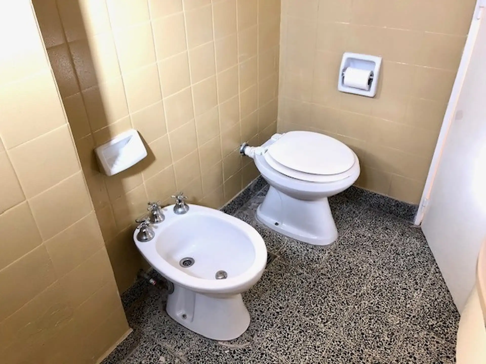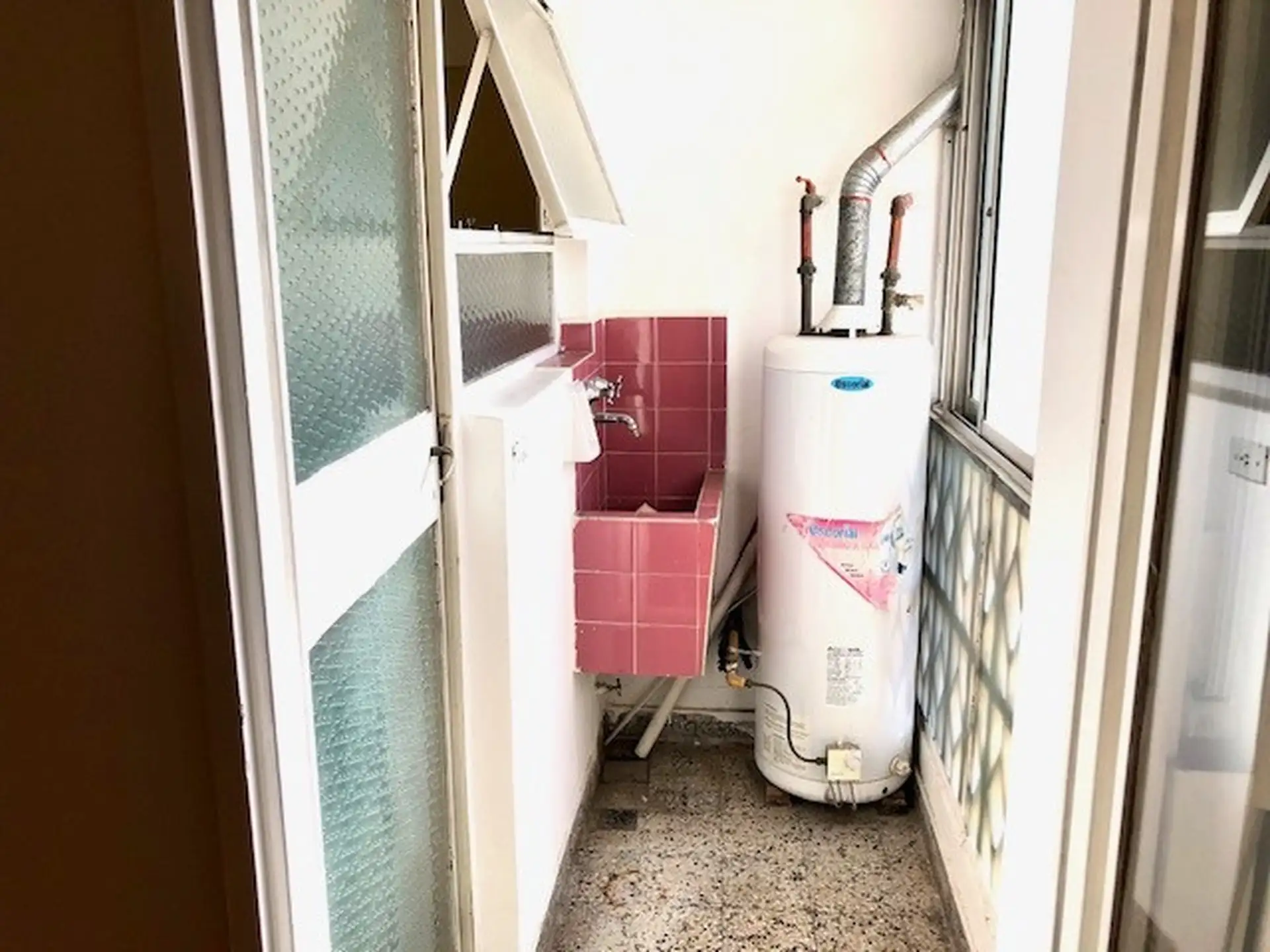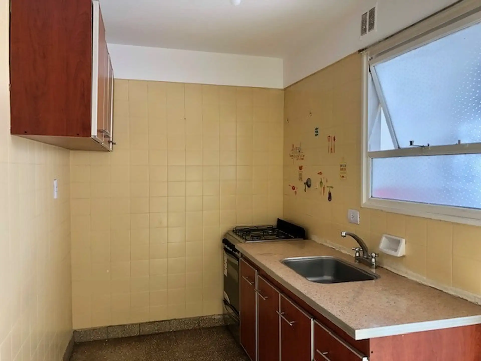 Apartamento de 2 ambientes com cozinha e área de serviço independente, quarto com armário e piso de parquet. Banheiro completo. Contrato de 2 anos, com reajuste pelo IPC a cada 3 meses. Exige 1 mês de adiantamento e 1 mês de depósito em garantia.