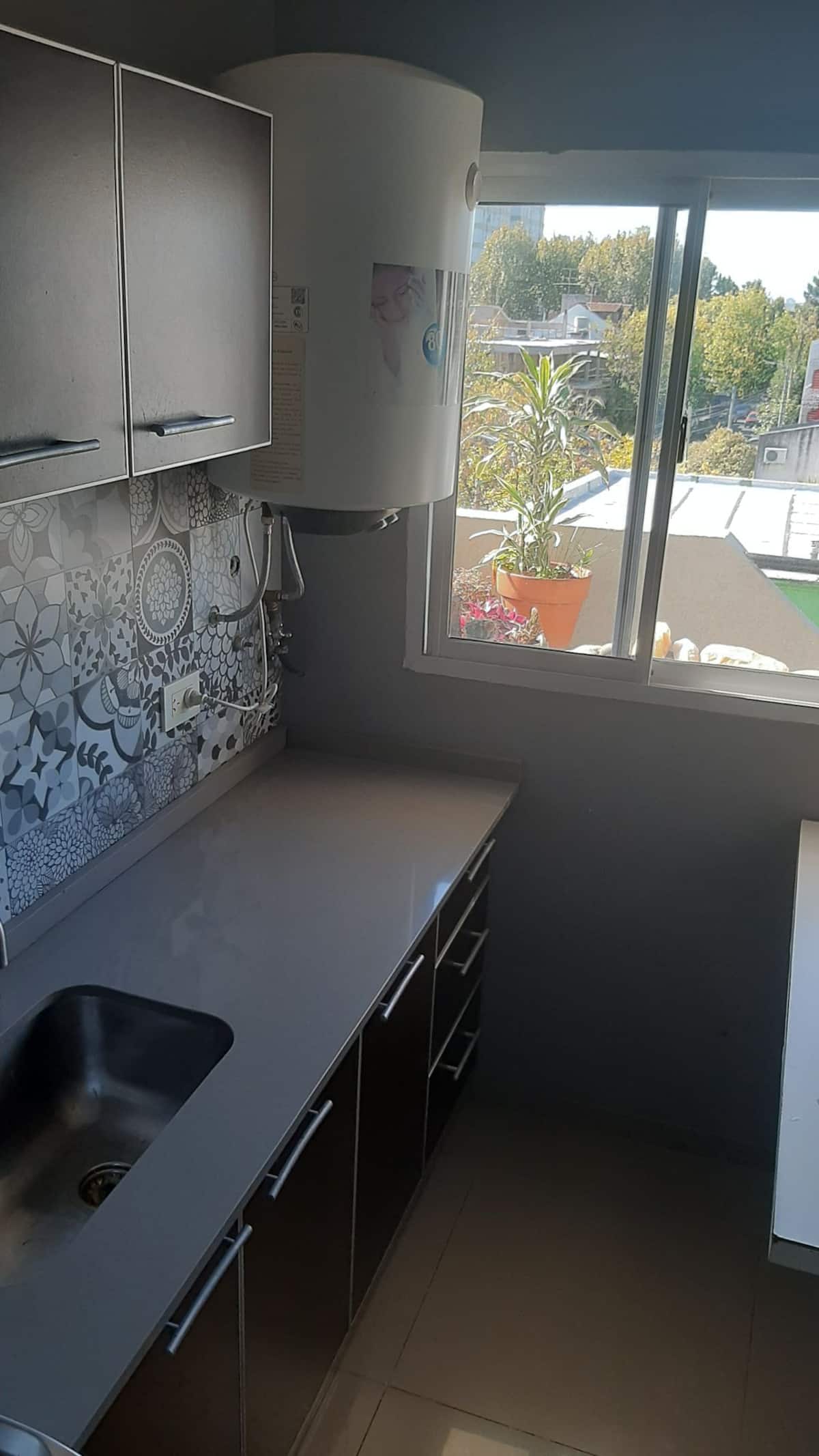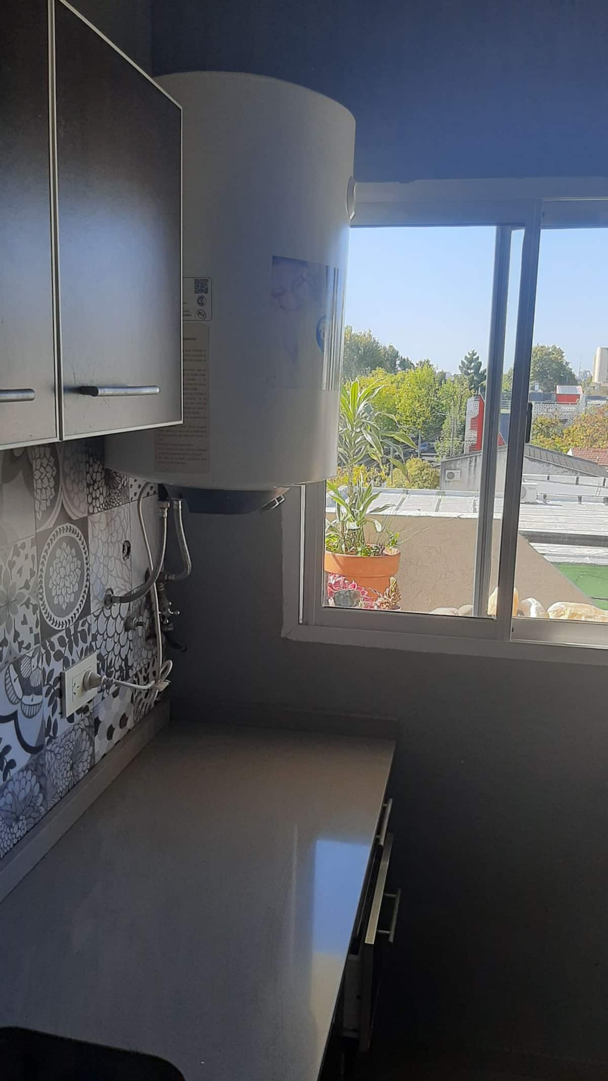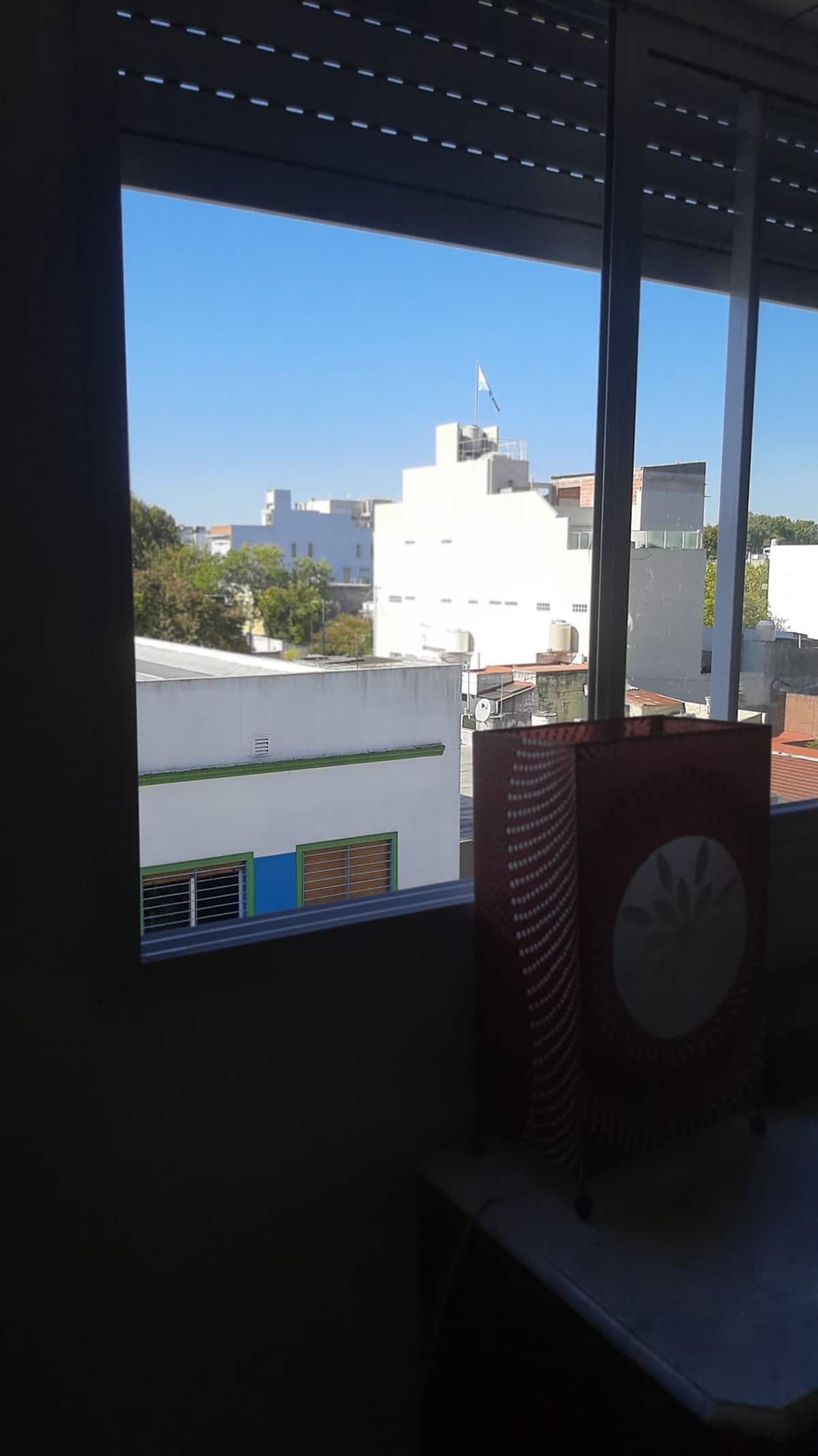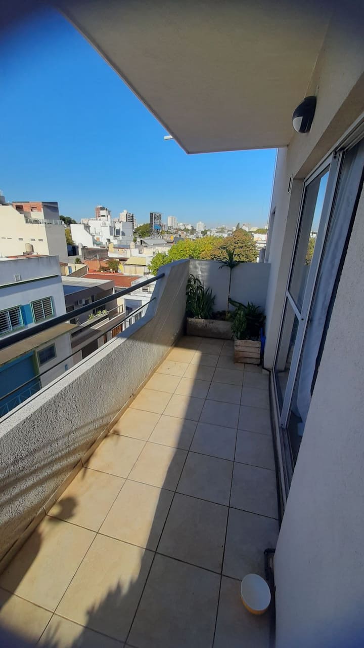Apartamento novo com 1 quarto e boa vista. Fica na região de Vélez Sarsfield, em Buenos Aires, a cerca de 1 bloco do Metrobus. O entorno é residencial, com supermercados e outros estabelecimentos a até 2 blocos.