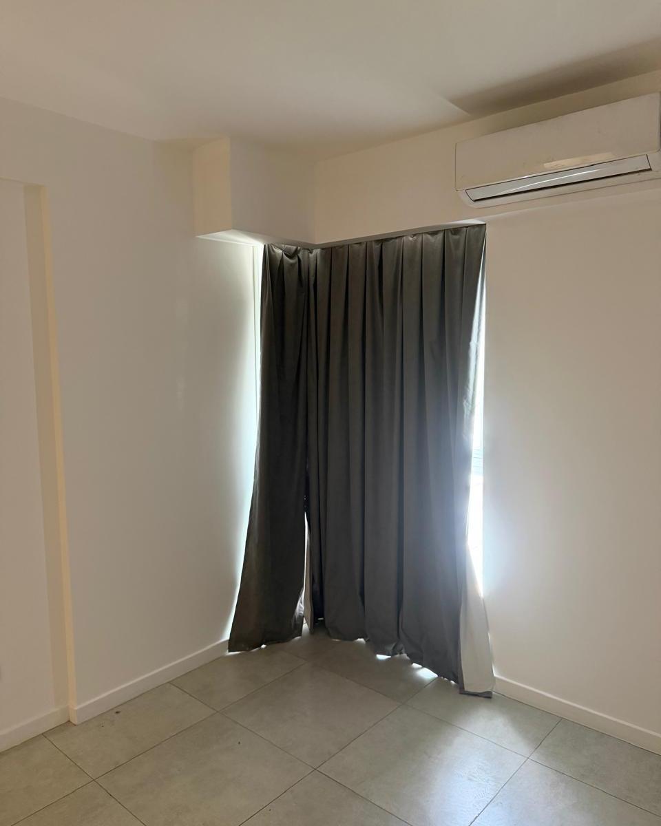 Apartamento de 2 ambientes em bom estado, com 1 quarto. Possui 2 aparelhos de ar-condicionado e armários completos, além de cortinas. O complexo conta com piscina, área de churrasco e áreas verdes, bem como academia.