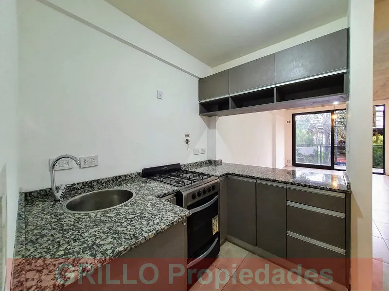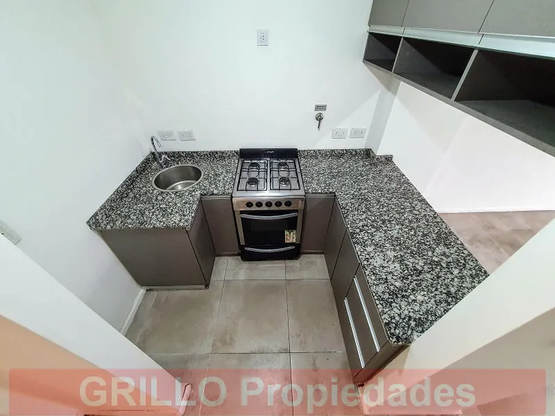 Kitnet de 1 ambiente com 34 m² totais, 30 m² cobertos e varanda de 4 m², no primeiro andar, de frente para a rua Ramón Falcón. Cozinha com integração parcial, fogão a gás, armários inferiores e aéreo; banheiro completo com banheira. Instalação preparada para ar-condicionado; edifício com portaria/porteiro visor; SUM com área de churrasco. O condomínio inclui AySA (água) e MetroGas (gás) para água quente, pois são centrais. Prédio com 10 andares e quatro unidades por andar; acesso por escada e/ou