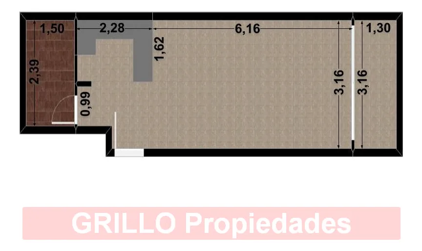 Kitnet de 34 m² na frente com varanda em Vélez Sarsfield