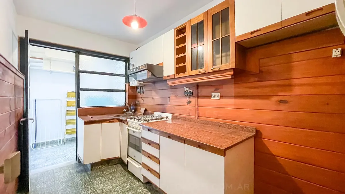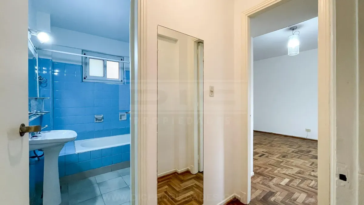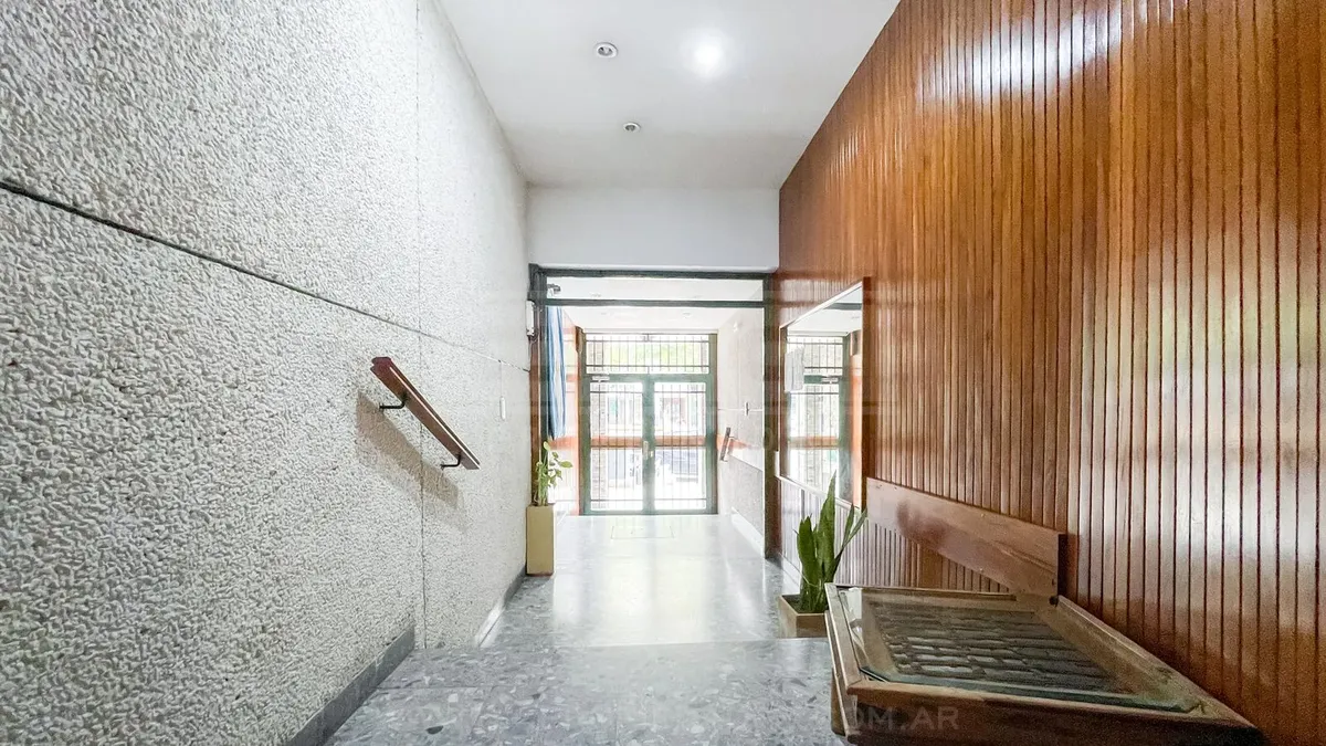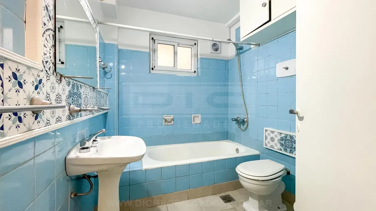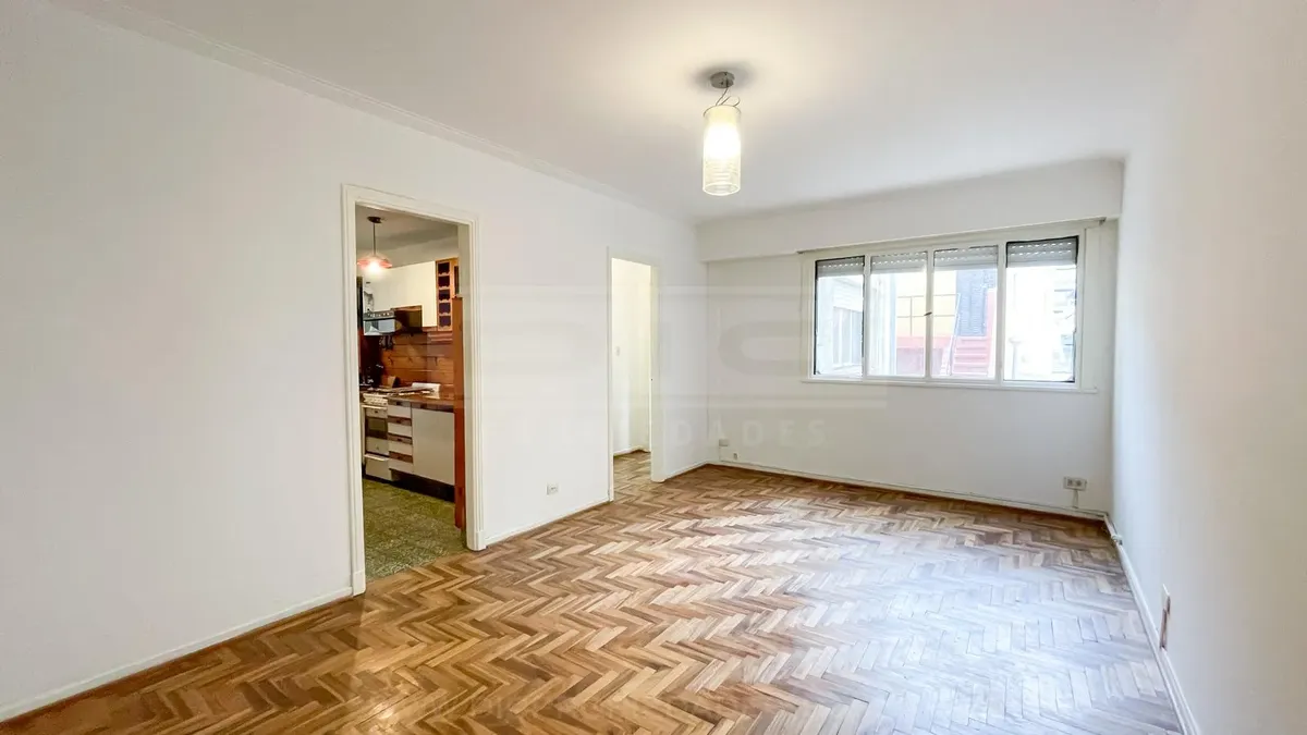 Apartamento de dois ambientes com 53 m² no 2º andar (por escada), em Vicente López. Sala de estar e jantar com piso de parquet e janela voltada ao norte. Cozinha independente com armários, coifa/exaustor de fumaça, área de serviço separada e lavanderia independente. Quarto com 4,50 x 4,00 m, dois armários e piso de parquet, além de banheiro grande com banheira. Não aceita animais de estimação.