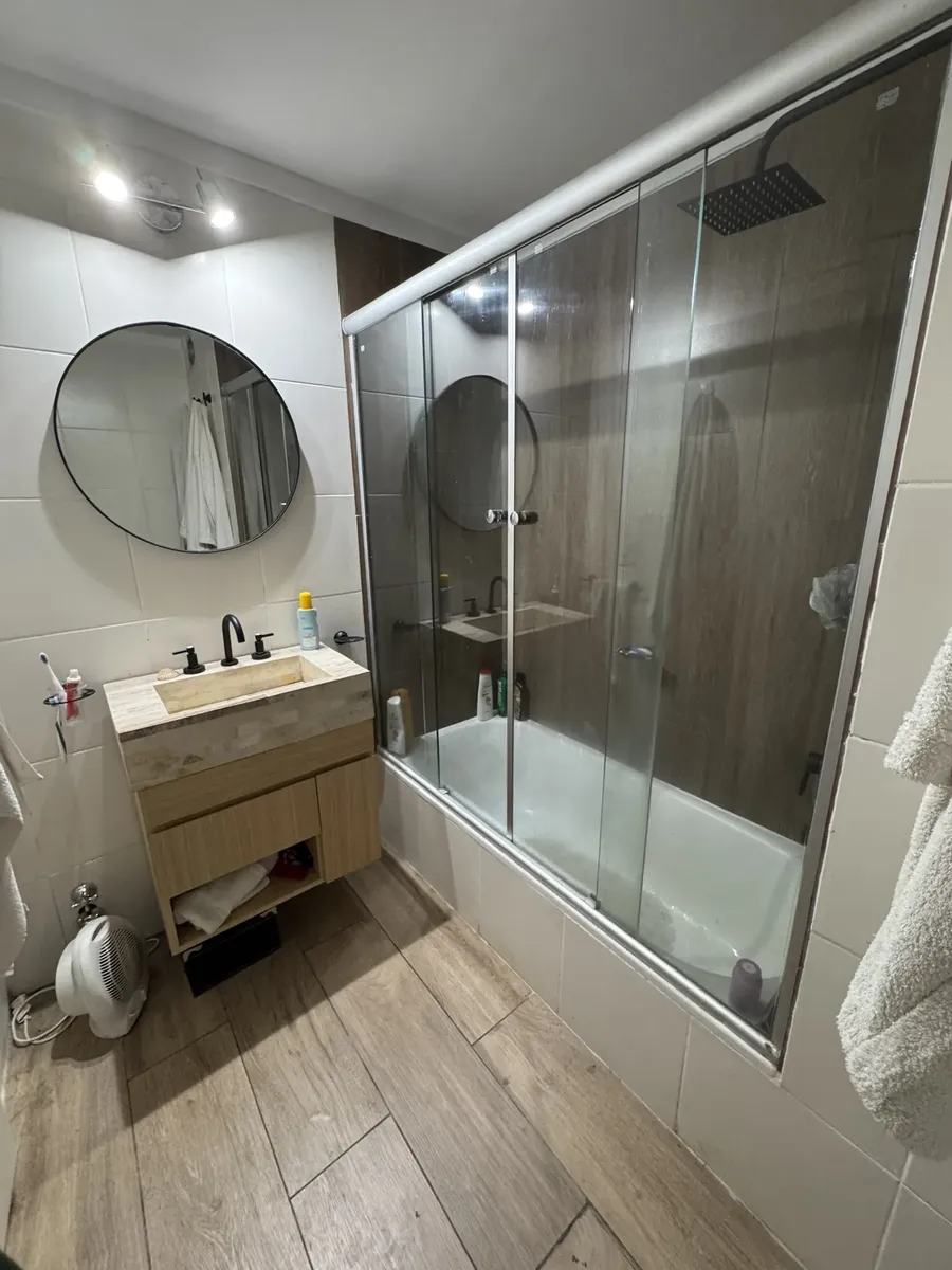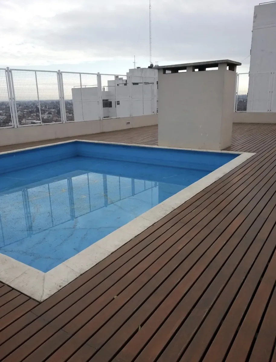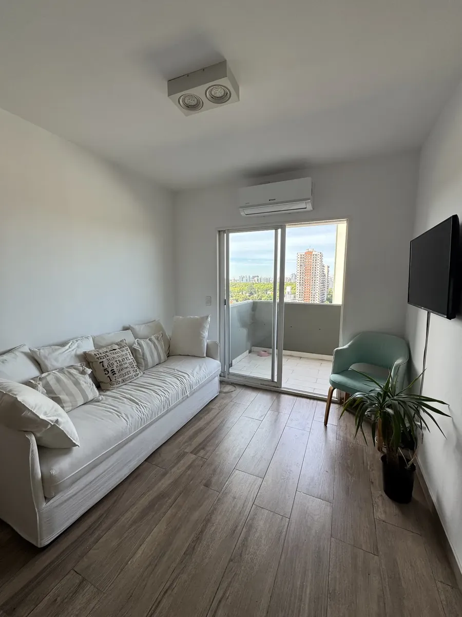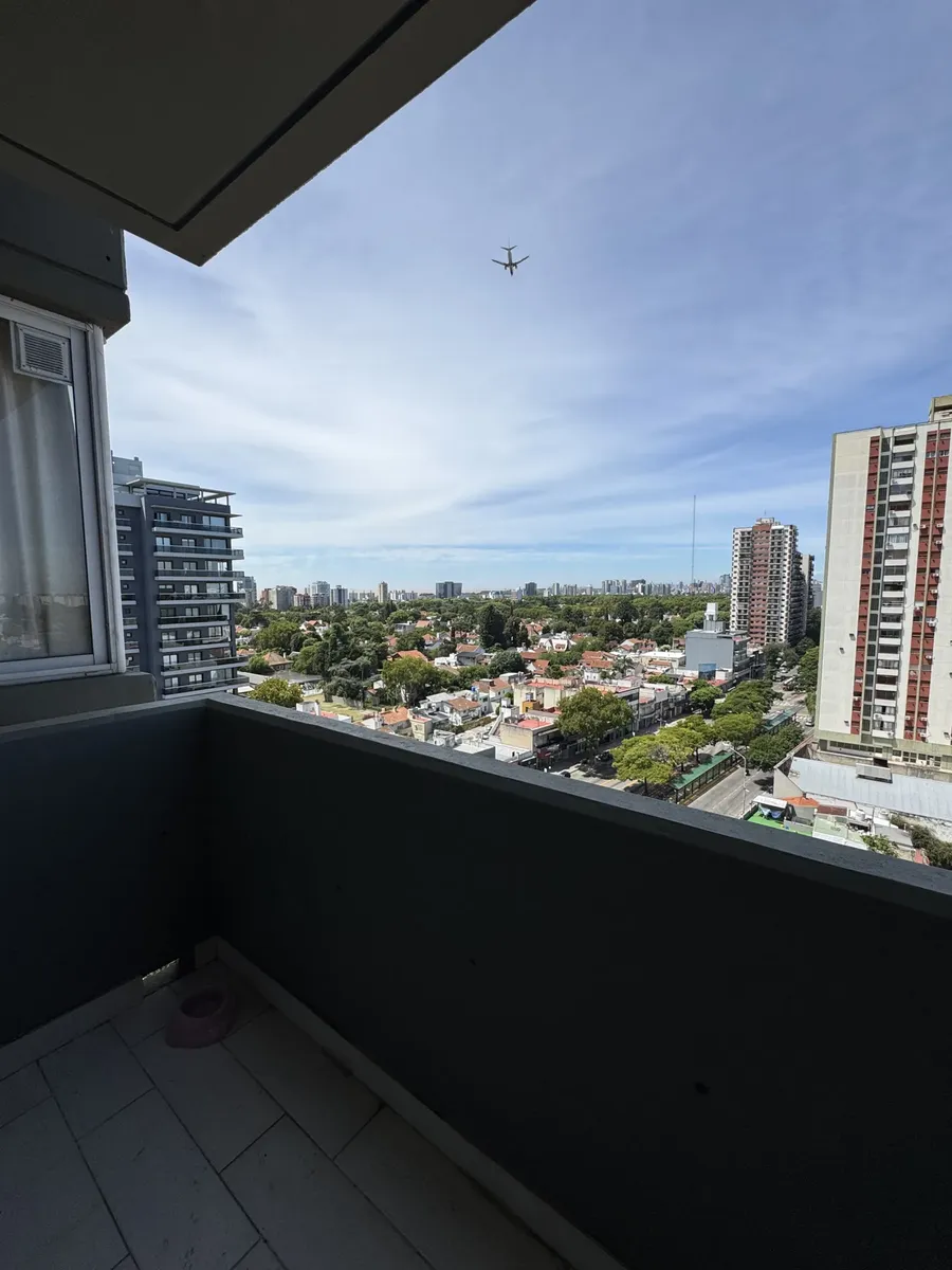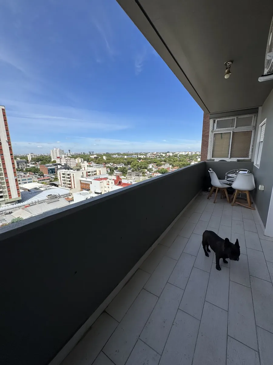 Apartamento de 2 ambientes mobiliado, com 1 quarto, no 14º andar, com vista para o rio. Fica a 2 quadras da clínica Olivos. Disponível a partir de 15 de abril.