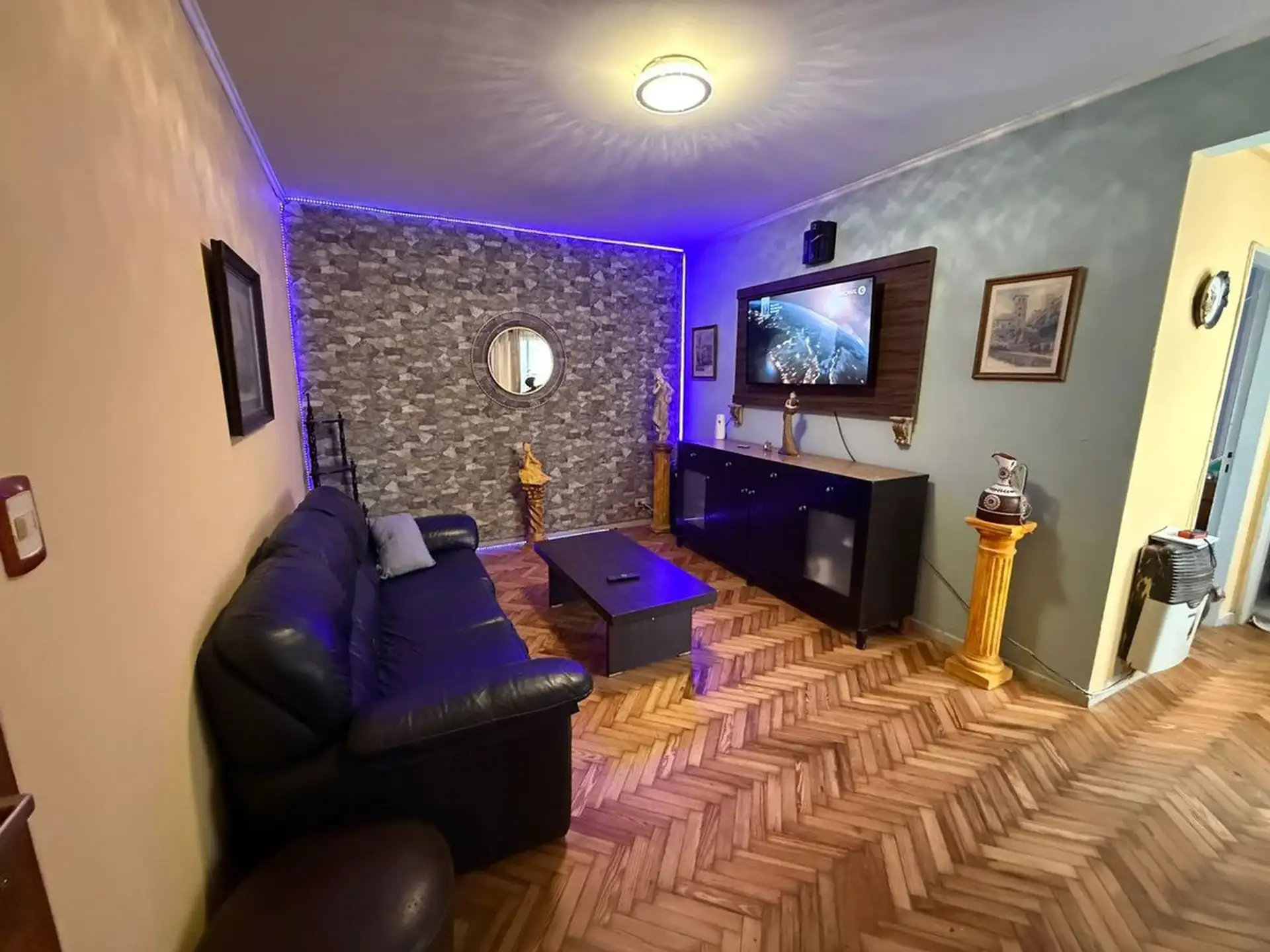 Apartamento de 2 ambientes com 1 quarto em Florida Oeste, Vicente López. Fica no primeiro andar com elevador e entrega mobiliado, com porta blindada. O living tem ar-condicionado frio e a calefação é por tiro balanceado; o quarto é entregue totalmente equipado (sem colchão). Cozinha com geladeira, lavadora (separada) e forno elétrico; banheiro completo com banheira. Condomínio aproximado de $45.000.