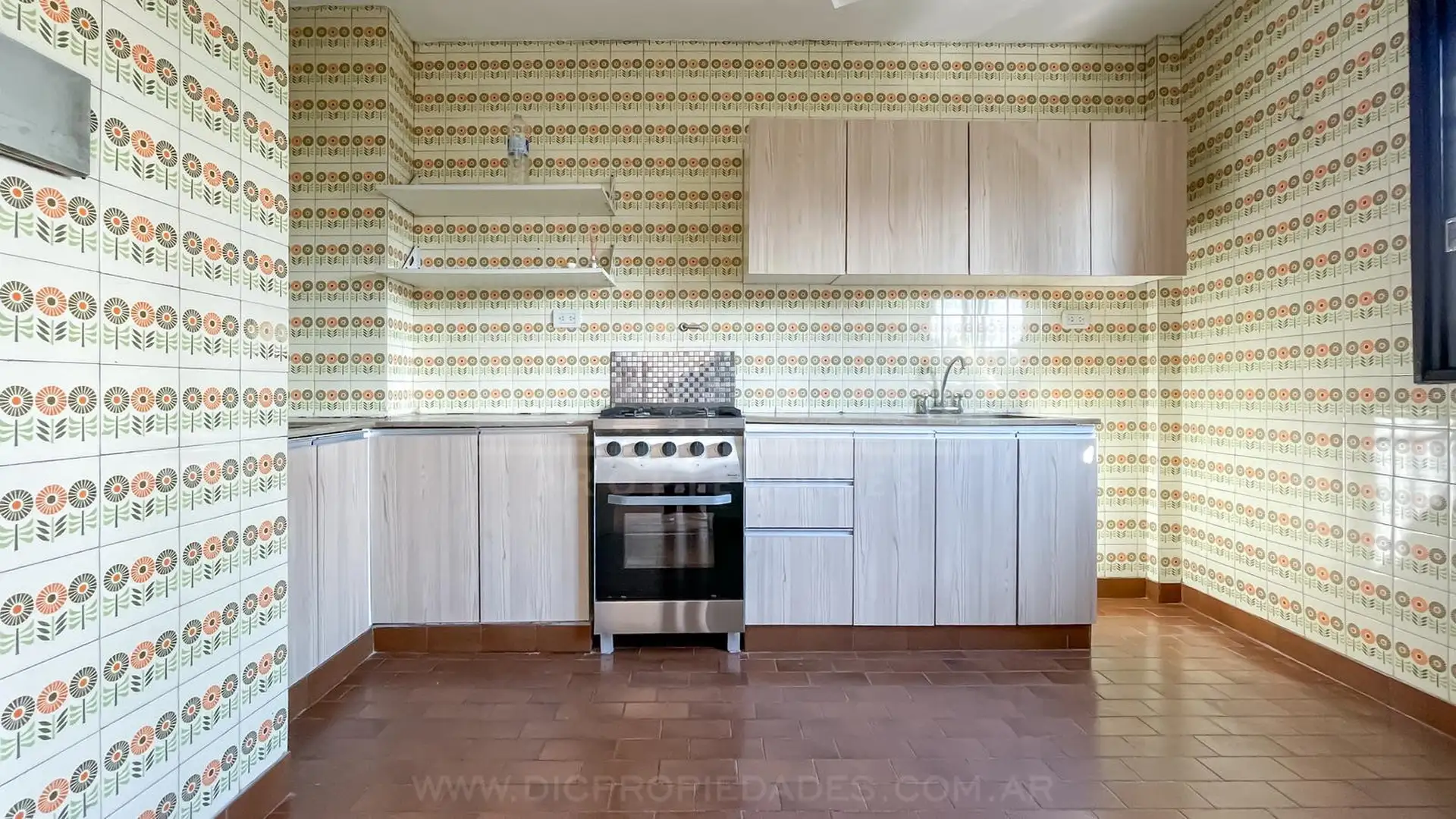 Apartamento de 2 ambientes com 47 m² cobertos e 53 m² totais, situado sobre Av. Maipú, em Vicente López. Possui sala de jantar conjugada com saída para varanda corrida, cozinha independente e 1 quarto, além de 1 banheiro completo. O prédio tem terraço de uso comum.