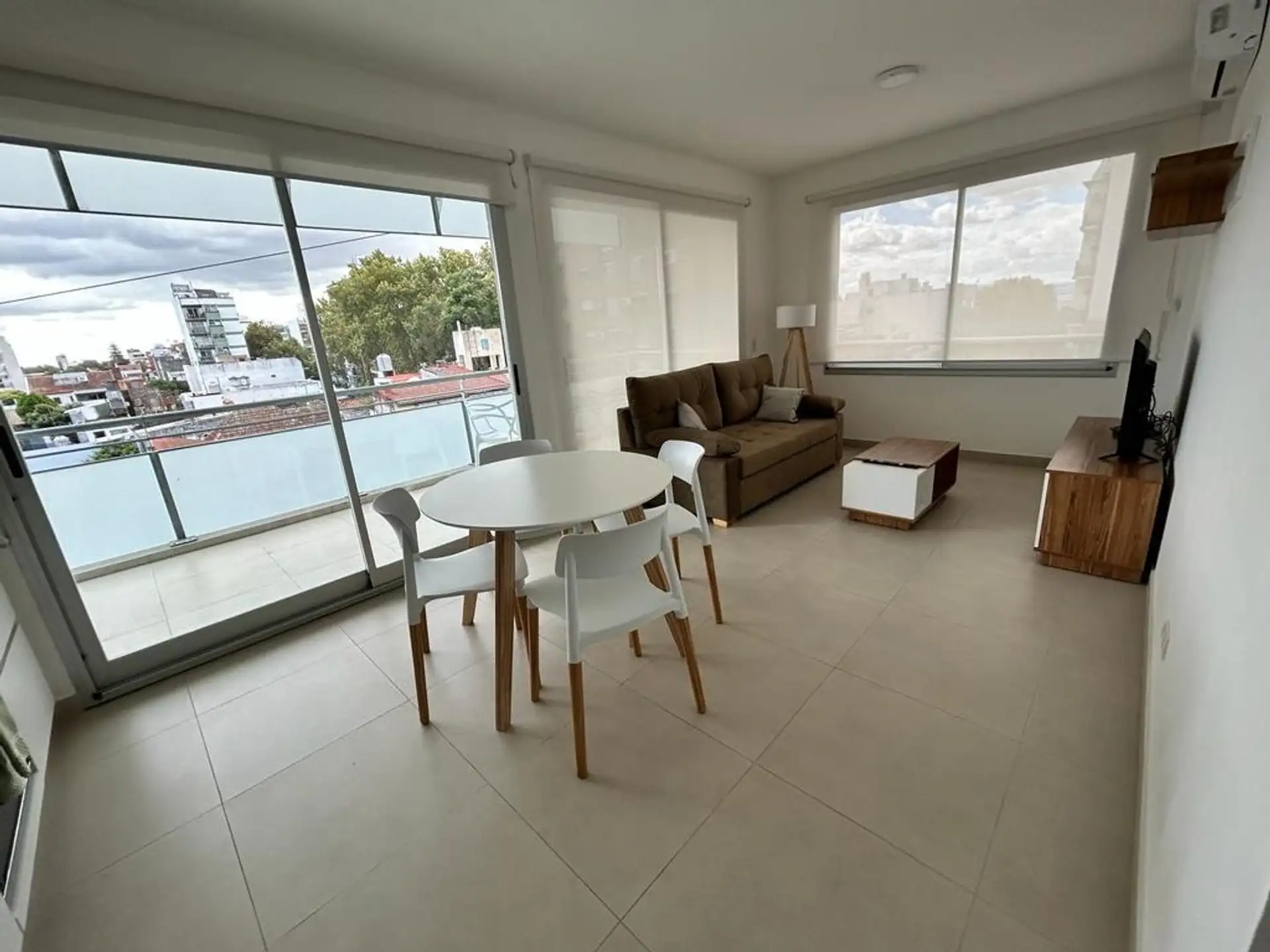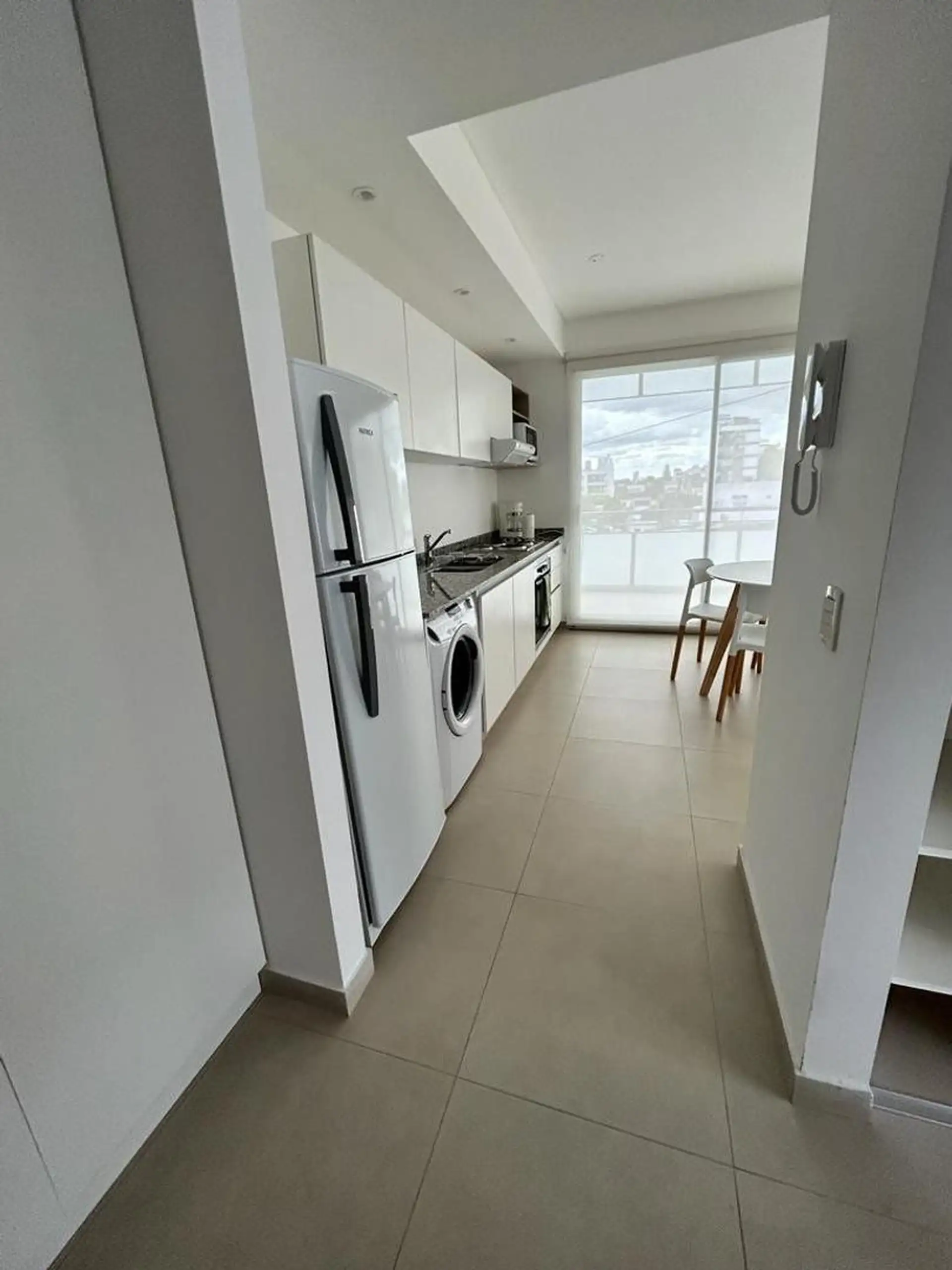 Apartamento de 2 ambientes com 1 suíte em Vicente López, no Complejo Aristóbulo Del Valle Coliving, a 3 quadras da General Paz. O living com varanda-terraço de 10 m² tem janelas com vidro duplo. Cozinha integrada com geladeira e lavadora, além de área de secagem; a unidade inclui ar-condicionado frio/quente, escrivaninha e inclui roupa de cama. O complexo tem 3 elevadores, lavanderia e bicicletário, além de SUM e academia; segurança das 19h às 7h e encarregado. A estação de trem Aristóbulo Del V