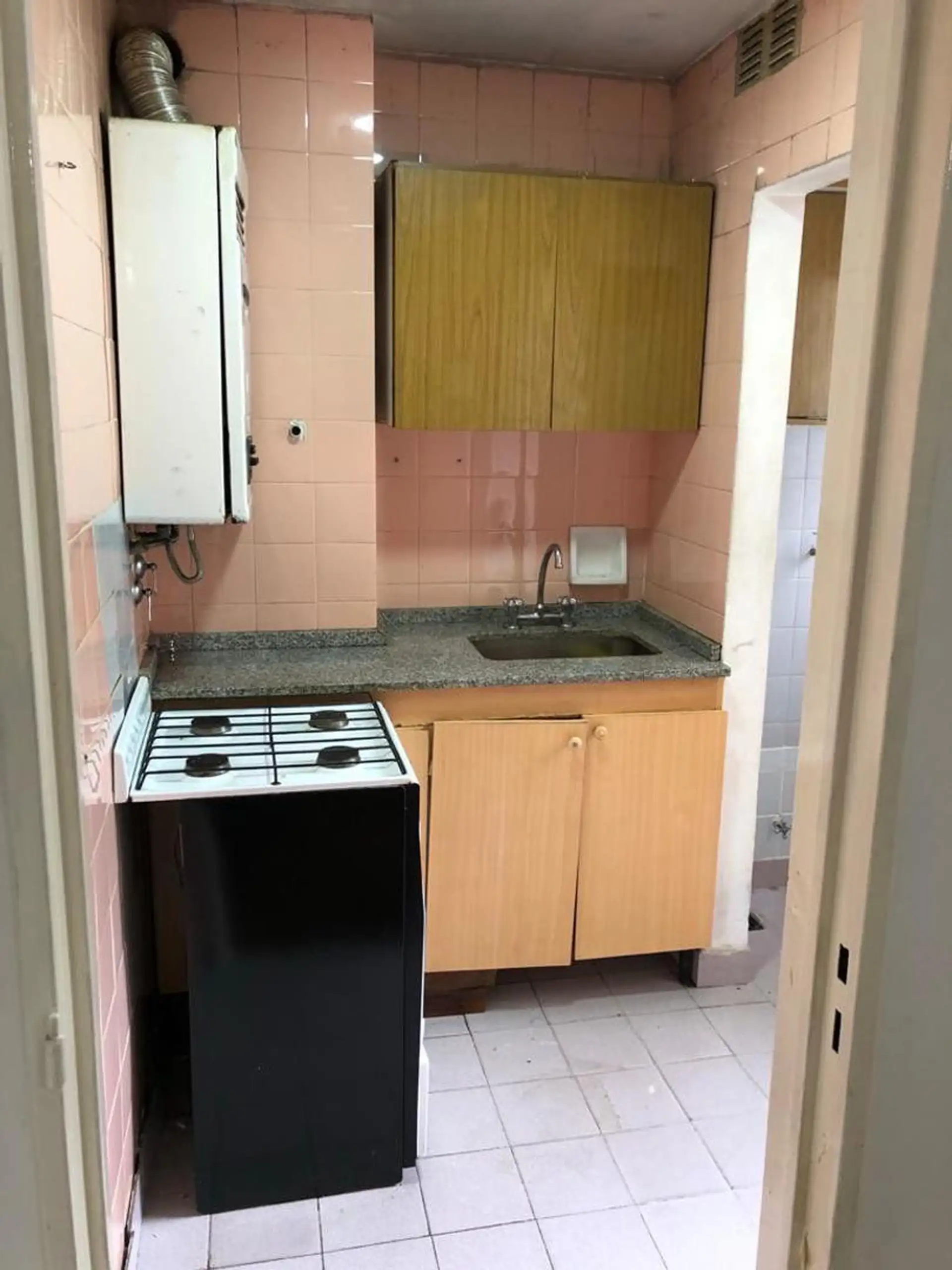 Apartamento apto profissional em Villa Crespo, sobre Av. Corrientes. Com 1 quarto com armário e ar-condicionado, banheiro e cozinha completos. Área de serviço independente. O anúncio informa que as medidas são orientativas e que o valor do condomínio pode variar; exige-se garantia com caução do seguro ou garantia de capital, além de ajuste trimestral pelo IPC e comprovação de renda.