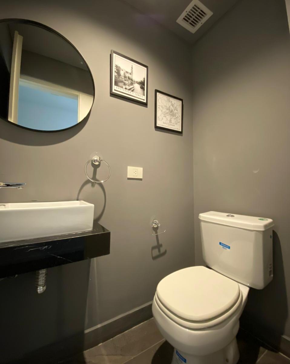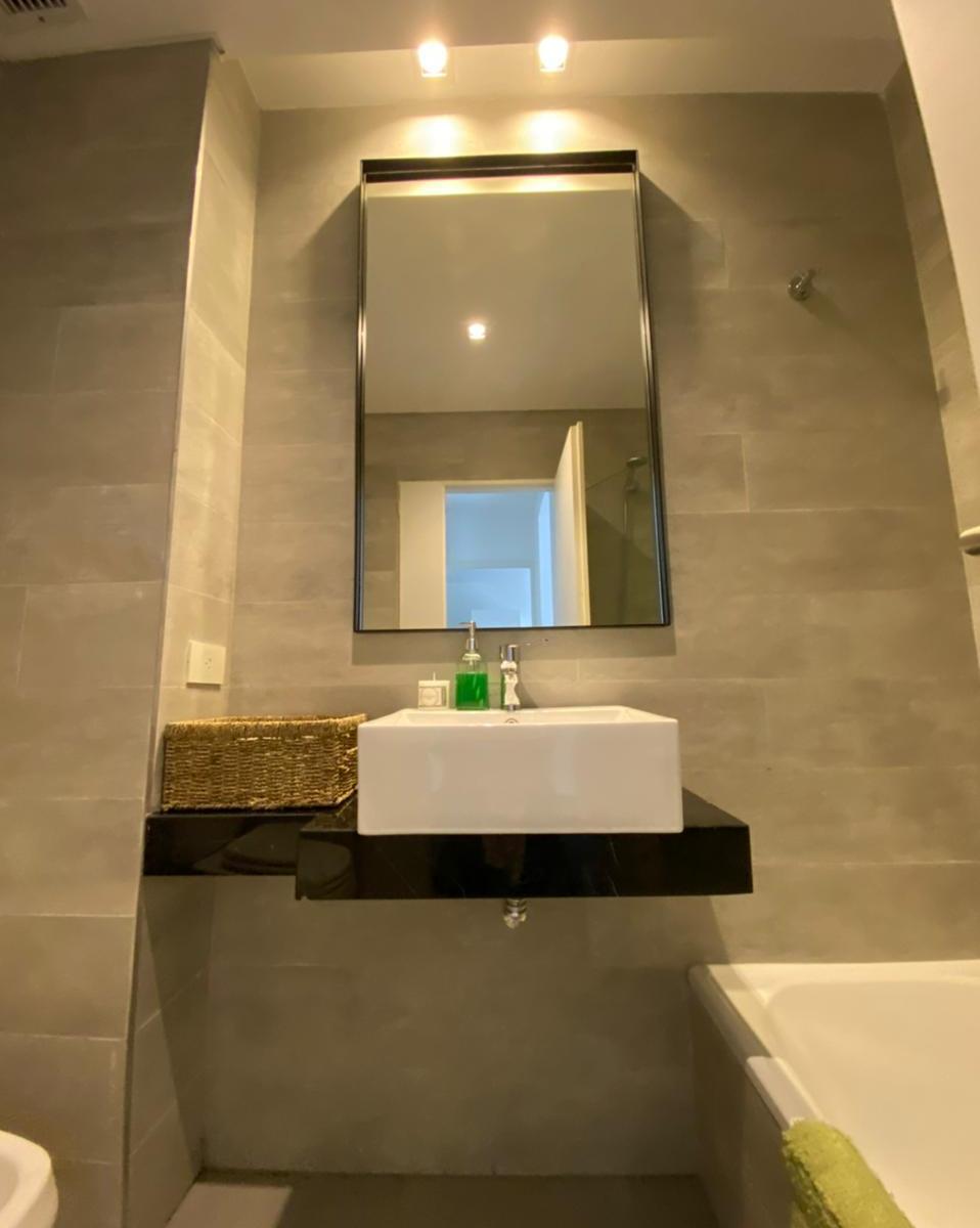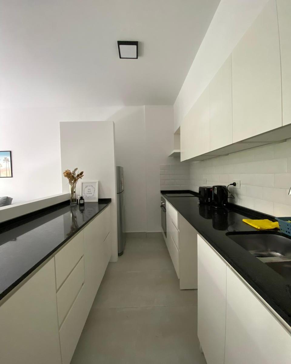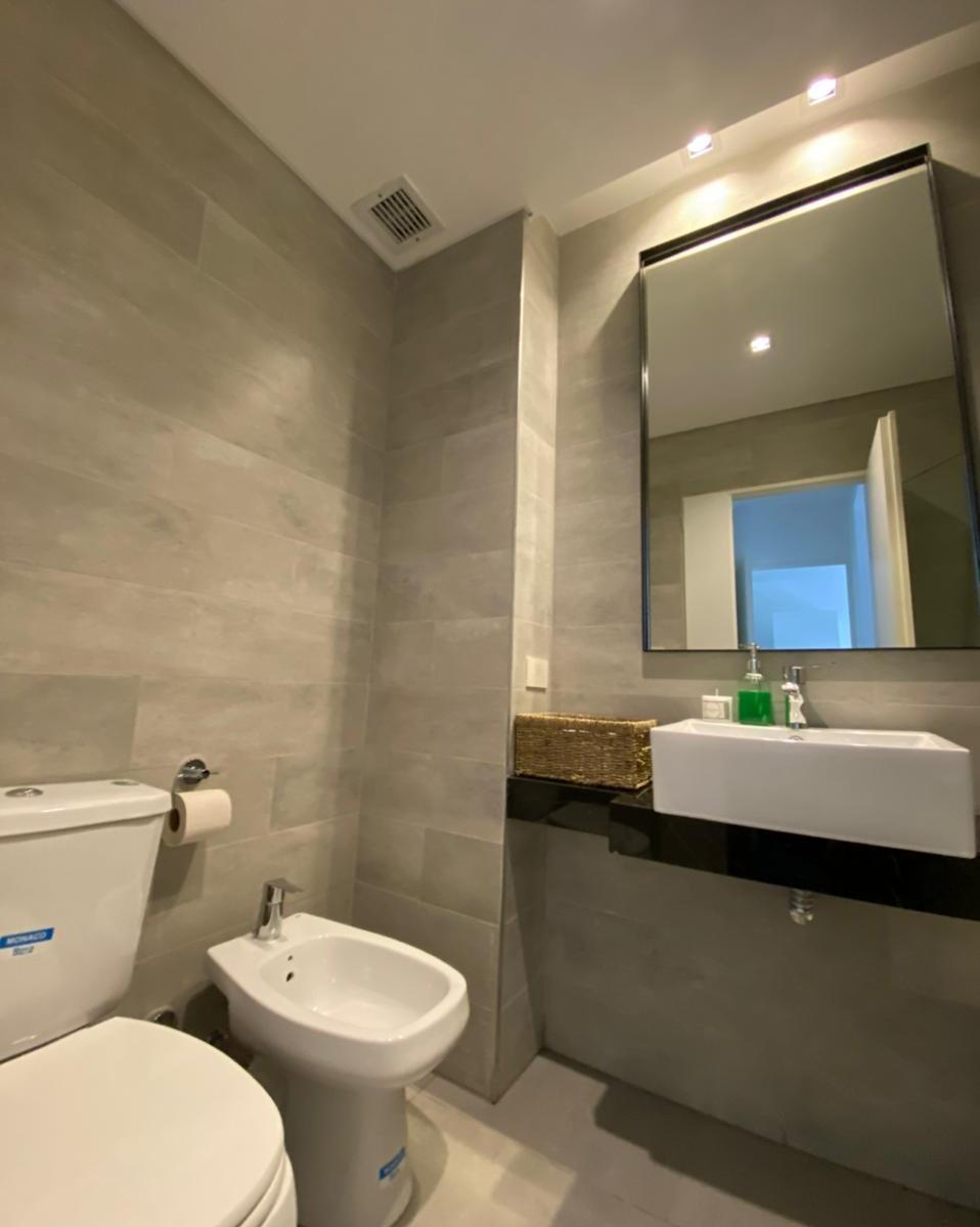 Apartamento de 2 ambientes com 1 quarto em Villa Crespo, totalmente mobiliado e equipado. O living com sala de jantar dá acesso à varanda; cozinha integrada com barra e 3 bancos altos, forno elétrico e geladeira com freezer. O quarto tem sommier duplo em suíte com banheiro completo com banheira e armário tipo closet; há ainda um lavabo no hall e armário no ambiente de entrada. Ar-condicionado em todos os ambientes. O edifício é novo e oferece SUM totalmente mobiliado, área de churrasco, piscina