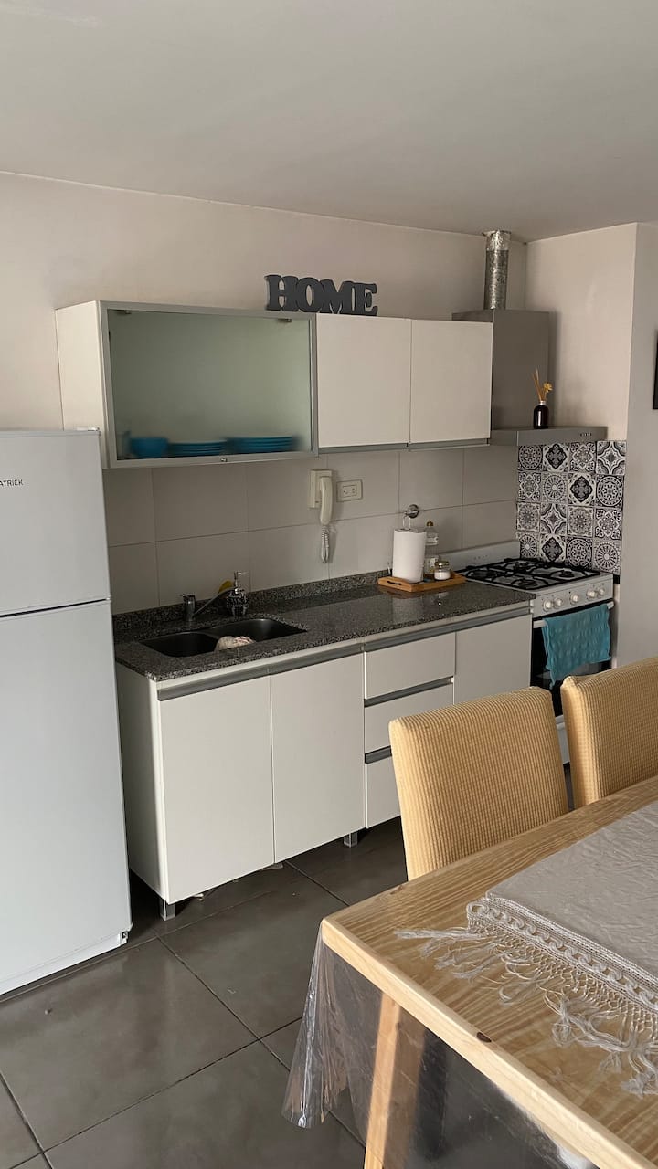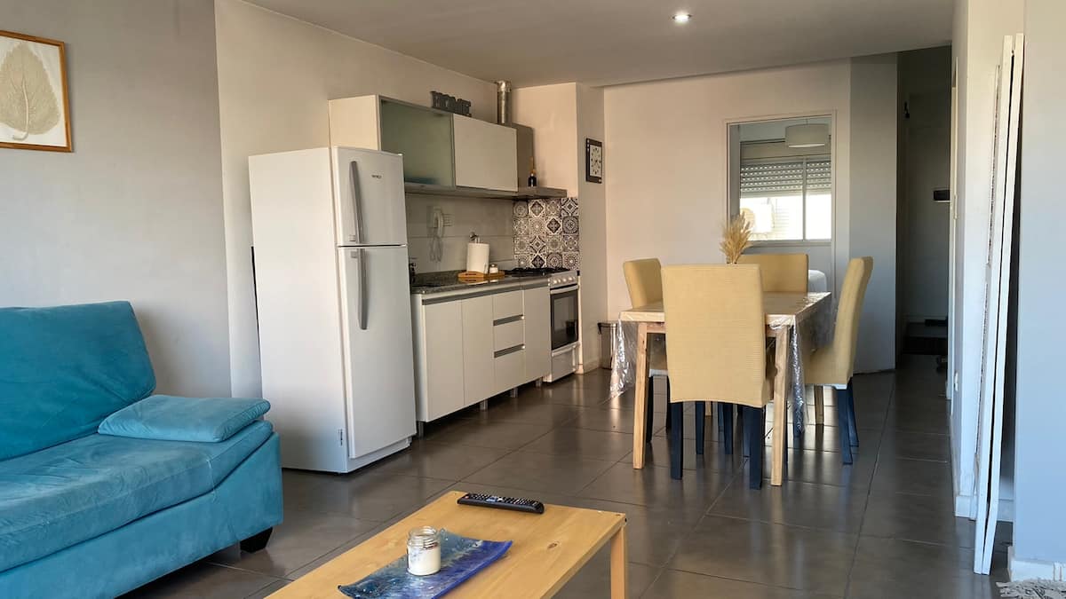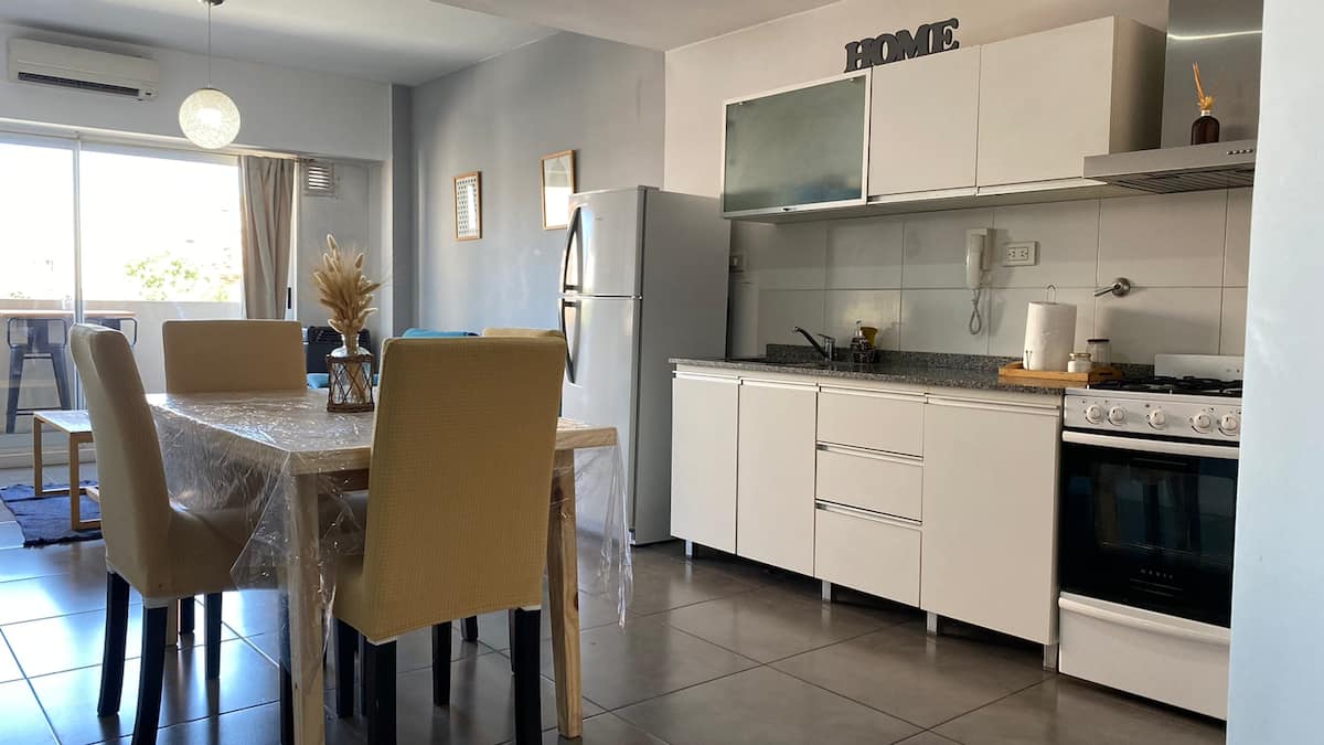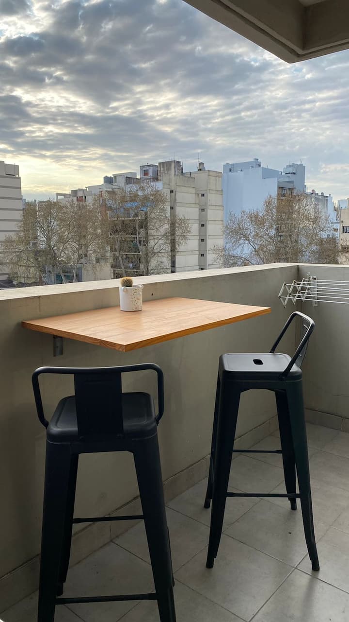 Apartamento em Villa Crespo. Não há dados de metragem, andar, orientação ou estado de mobiliário na descrição. A cozinha é completa. Há 1 quarto com criado-mudo, armário e cama, e 1 banheiro com boa pressão e temperatura da água. O apartamento tem varanda e permite ver o nascer do sol.