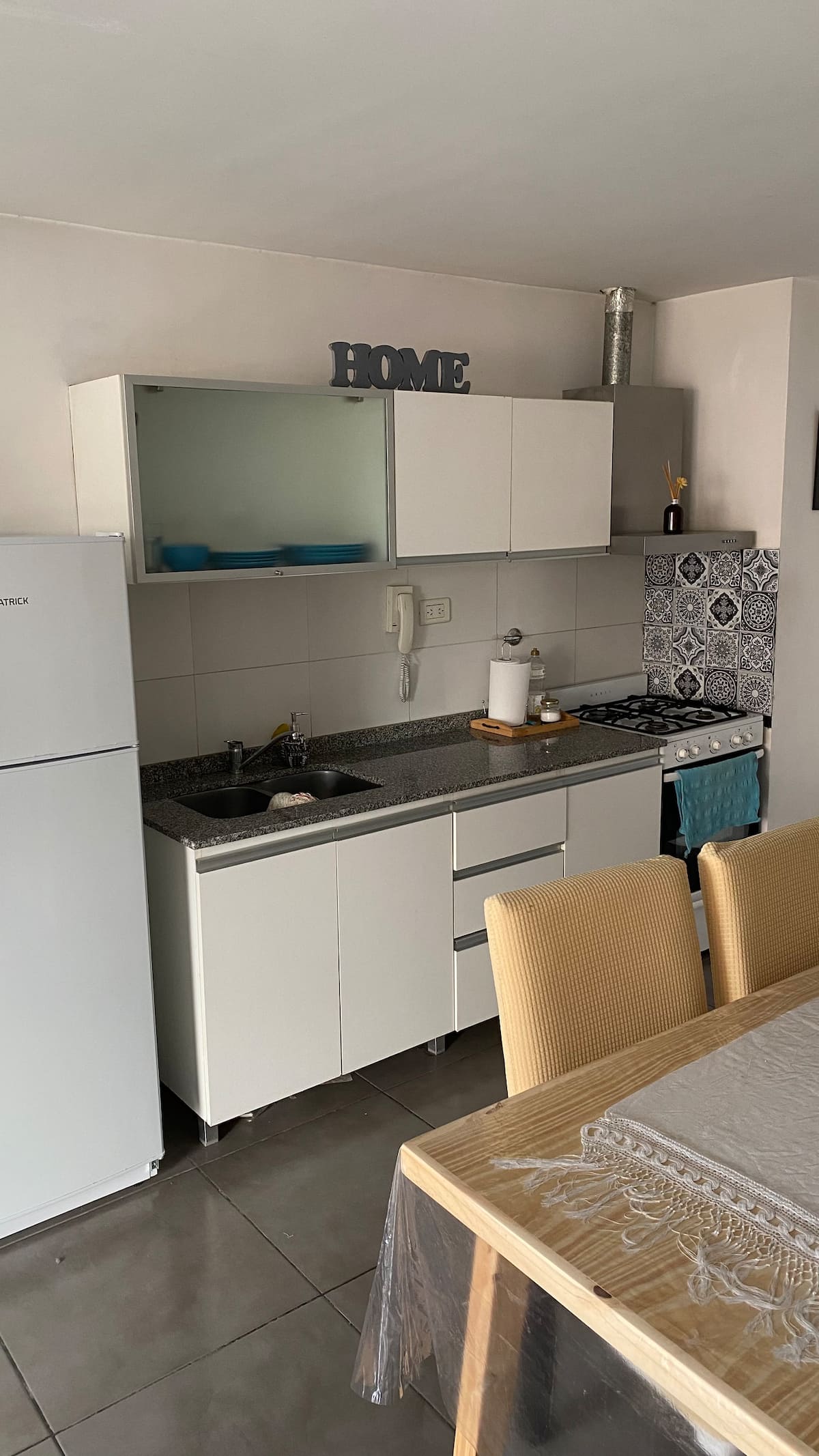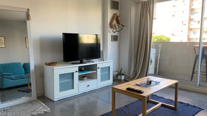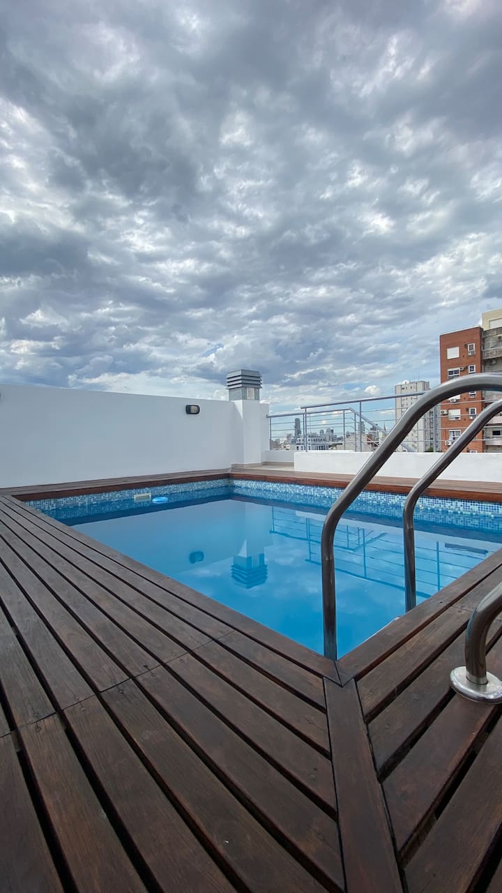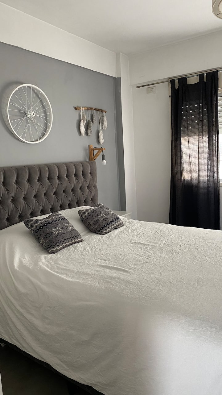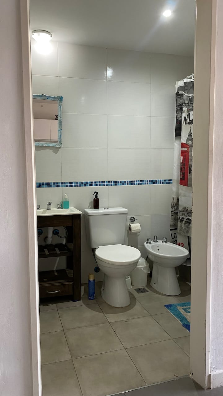 Apartamento em Villa Crespo. Não há dados de metragem, andar, orientação ou estado de mobiliário na descrição. A cozinha é completa. Há 1 quarto com criado-mudo, armário e cama, e 1 banheiro com boa pressão e temperatura da água. O apartamento tem varanda e permite ver o nascer do sol.