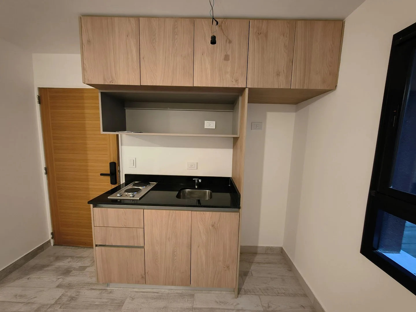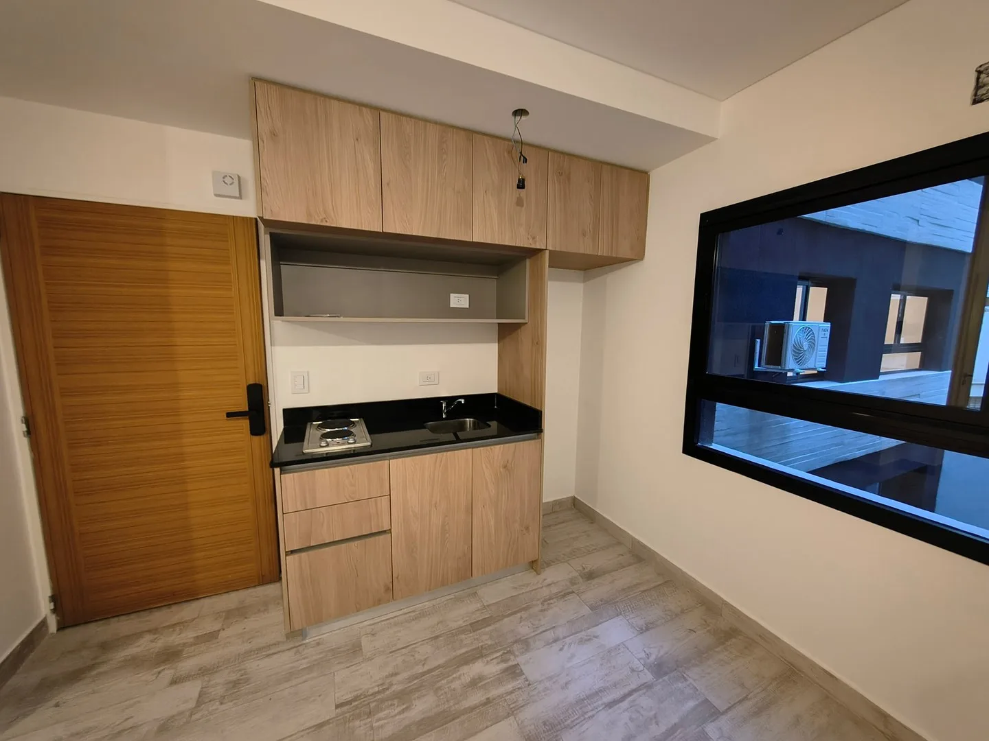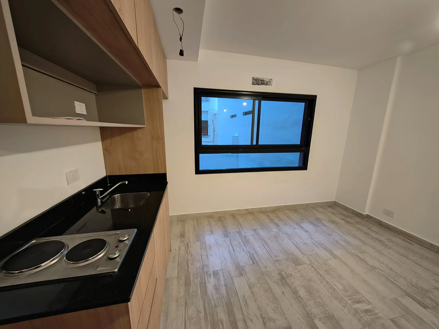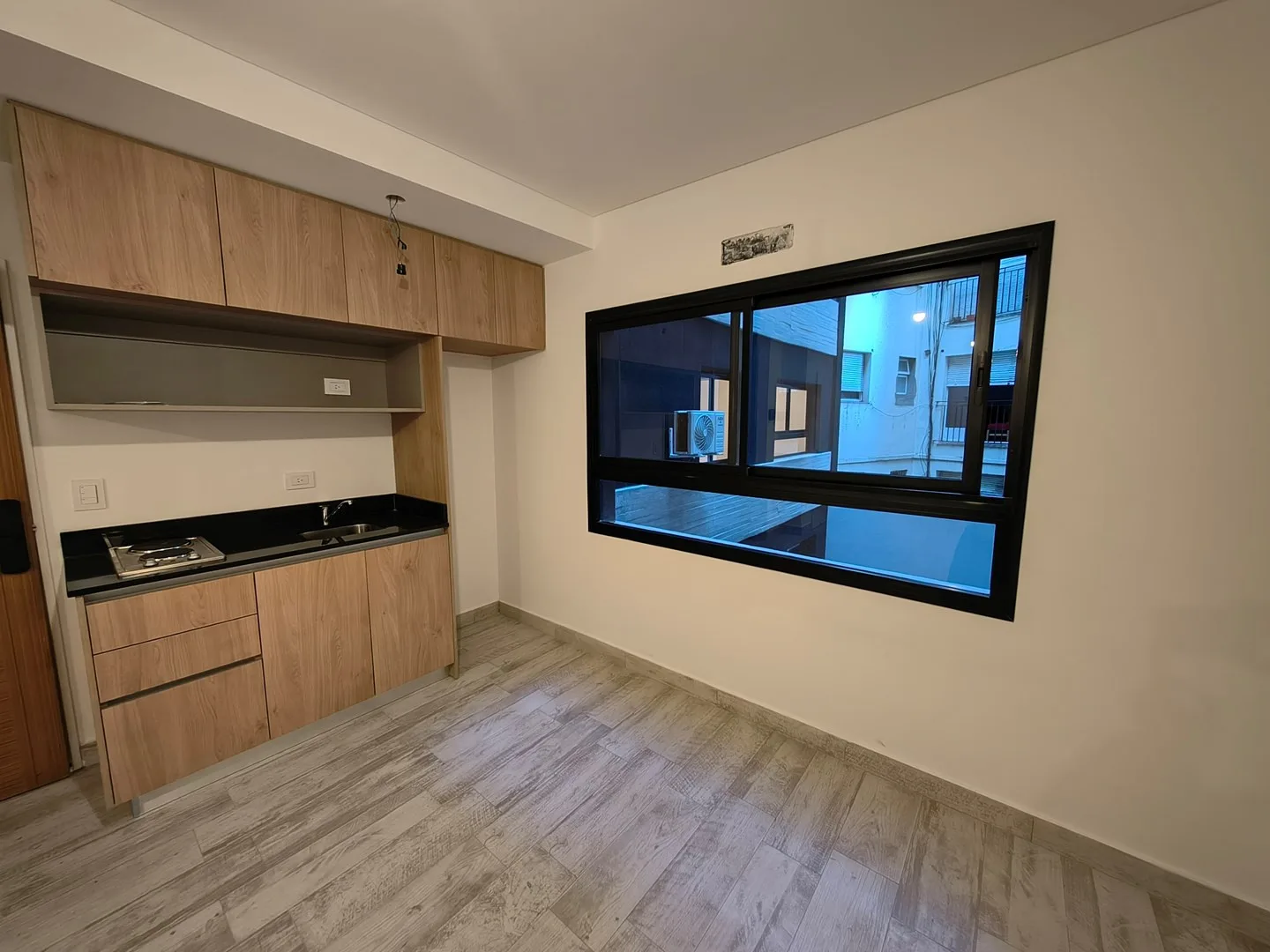 Kitnet de 1 ambiente novo (nunca habitado), cozinha americana com armários superior e inferior e fogão elétrico com 2 bocas, além de banheiro com ducha. Condomínio com baixas expensas e prédio com coworking, lavanderia e área de churrasco. Contrato de 2 anos com ajuste trimestral pelo IPC; fiança do proprietário ou seguro de fiança e comprovação de renda. Não aceita animais de estimação. A poucos metros do Parque Centenario e a cerca de 400 m da estação Gallardo do Subte Linha B.