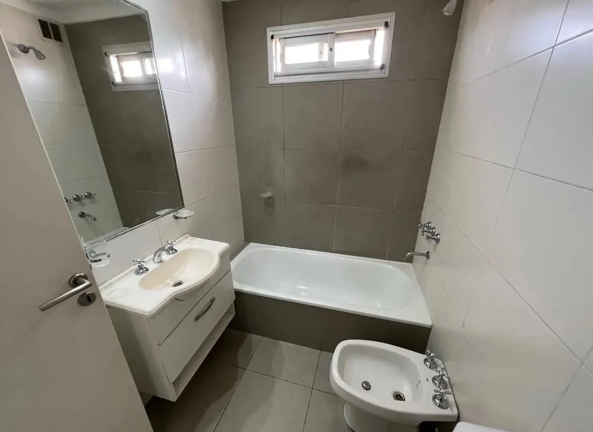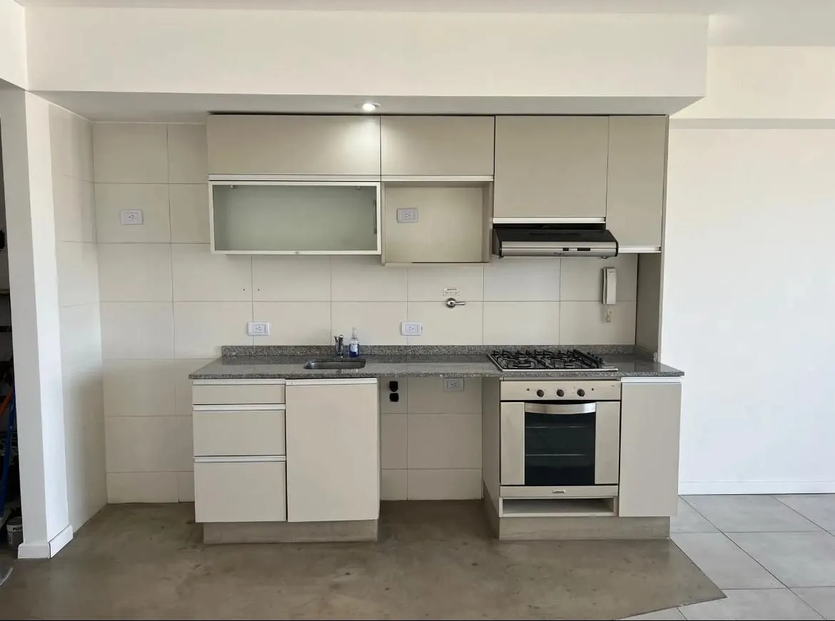 Kitnet de 1 ambiente em Villa del Parque, quase a nunca habitado, no 4º andar voltado para os fundos. Cozinha integrada com alacena e armário sob a pia, cooktop a gás e forno elétrico, com conexão para lavadora. Sala com ar-condicionado e lâmpada pendente; entrada com cortina blackout sob medida. Possui varanda e banheiro completo com banheira. Condomínio de $160.000, com AYSA incluso.