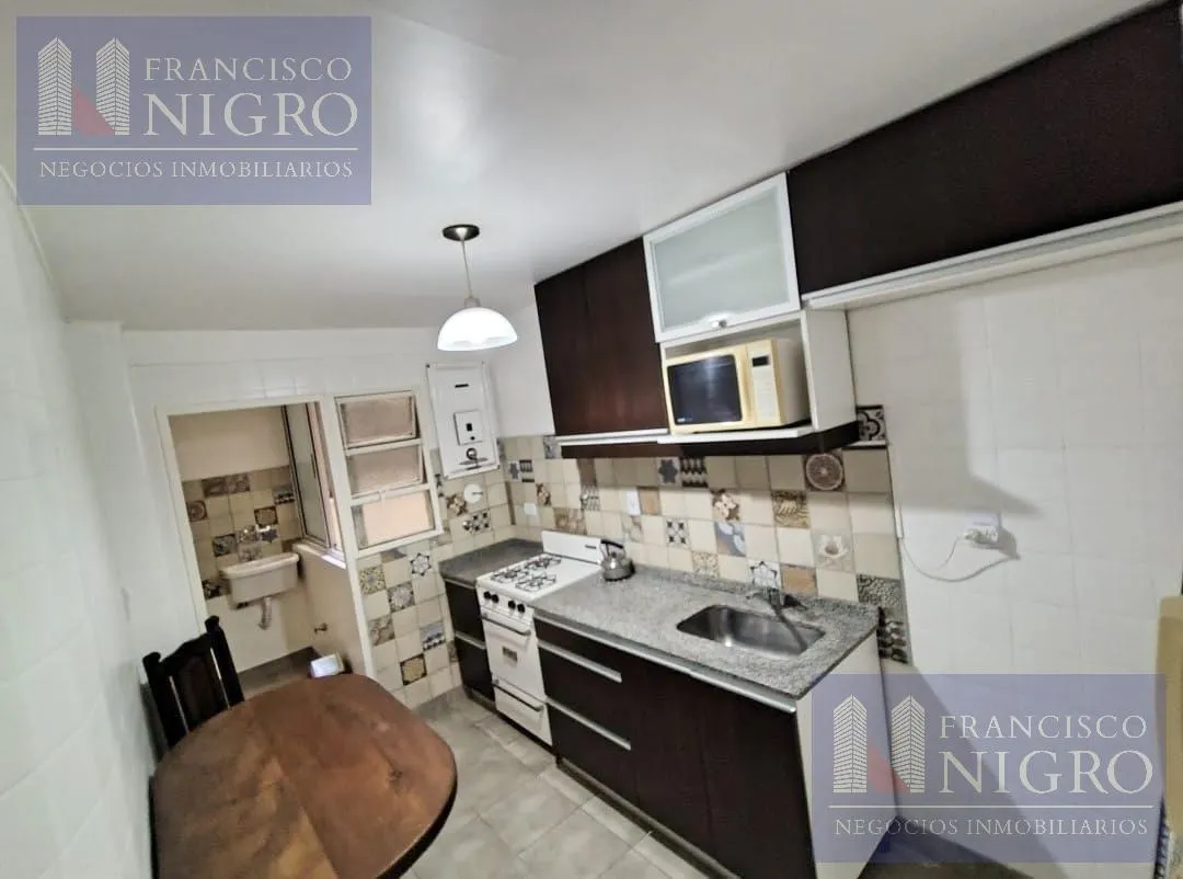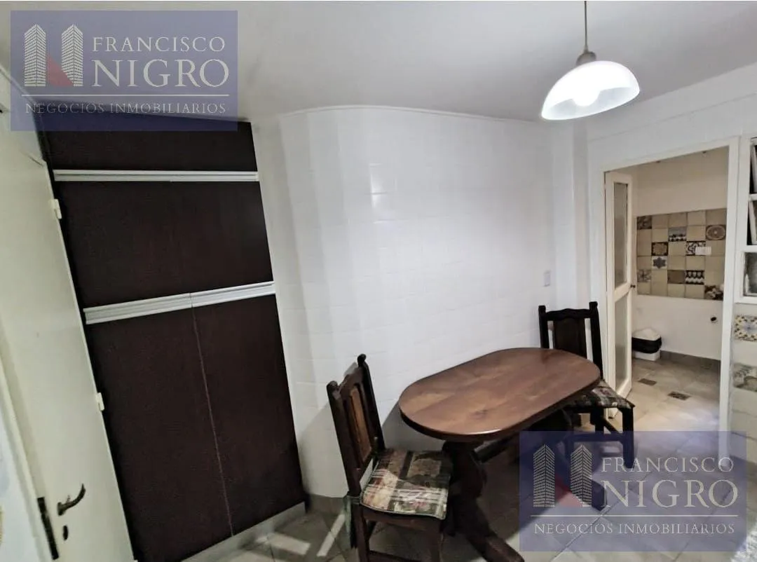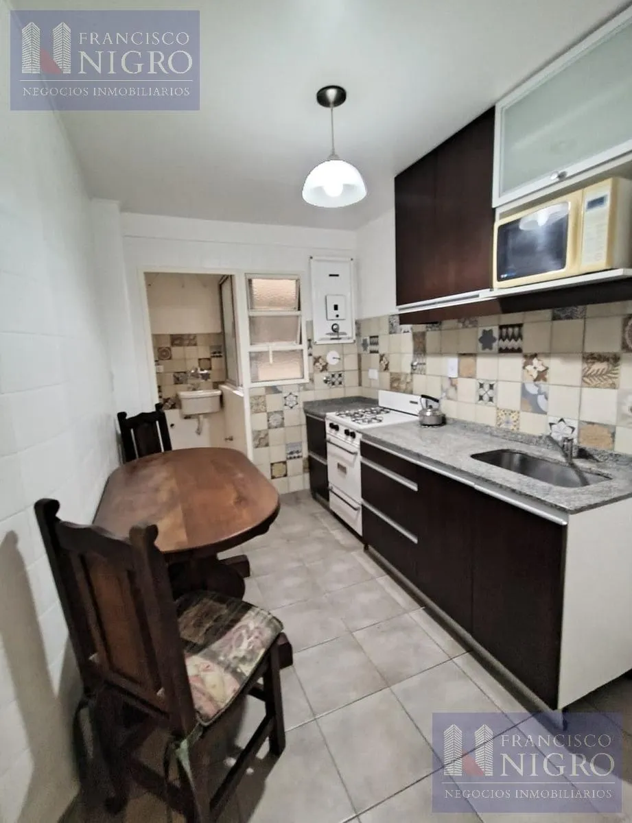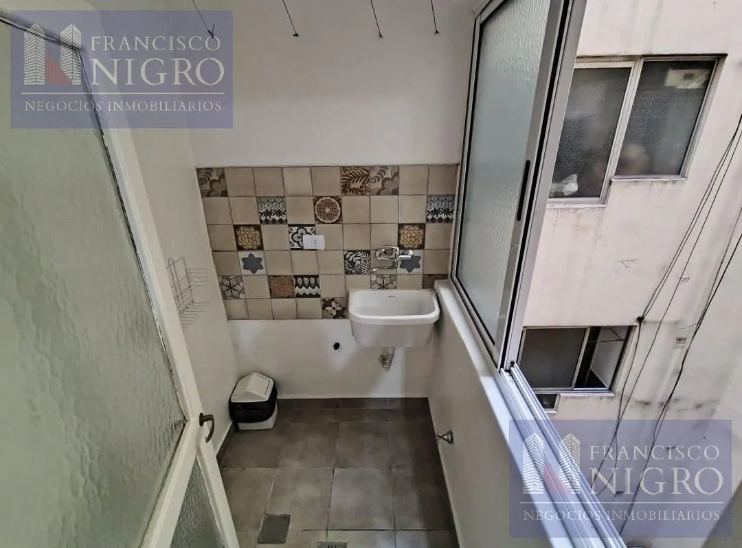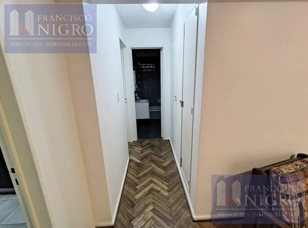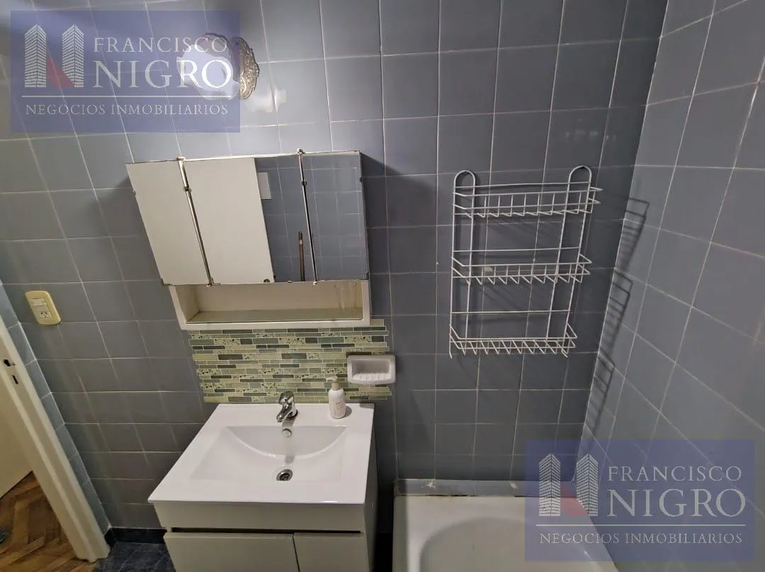 Apartamento interno em Villa Devoto, com 1 quarto. O hall de entrada mede 2,00 m x 1,00 m, com armário. Sala de 4,60 m x 3,15 m, cozinha independente de 3,25 m x 2,00 m e área de lavanderia independente de 1,30 m x 1,35 m; aquecimento de água por aquecedor a gás (calefon). Quarto de 3,45 m x 3,00 m com armário e piso de parquet, banheiro completo de 2,00 m x 1,50 m. O prédio não tem encarregado, tem 1 elevador, 8 andares e 3 unidades por andar.